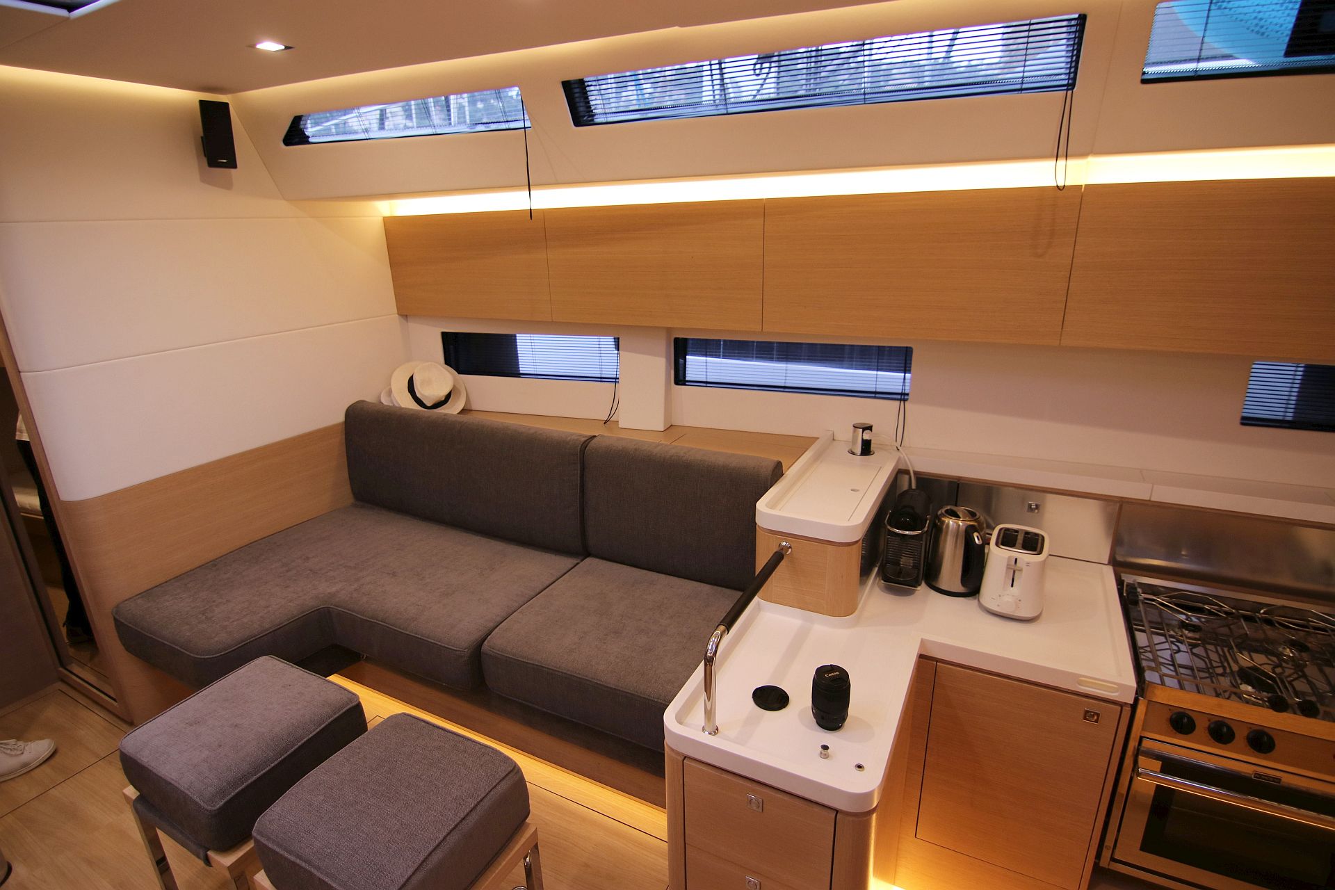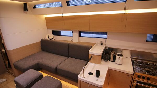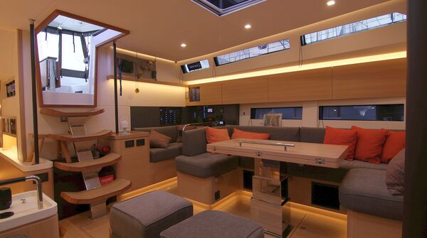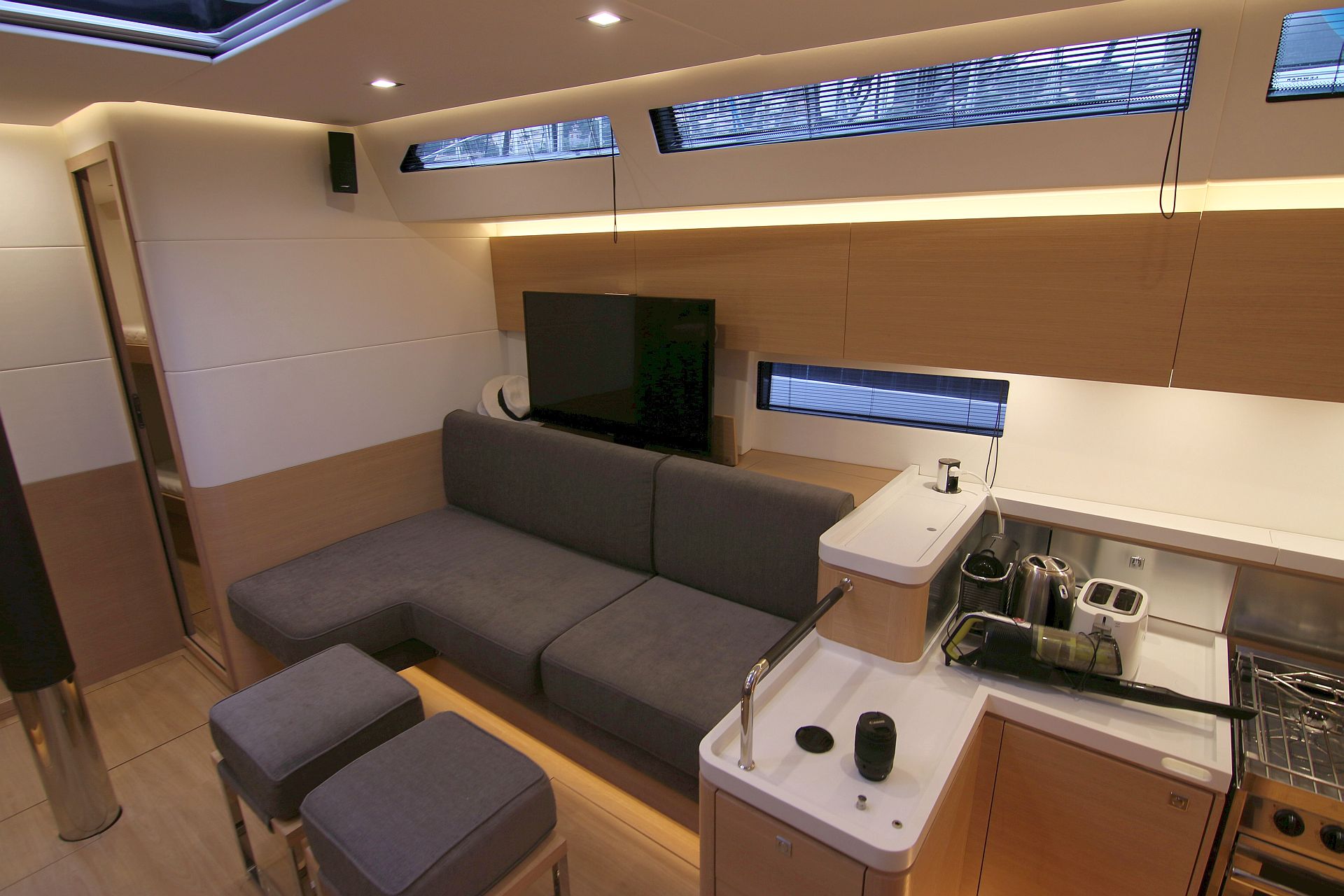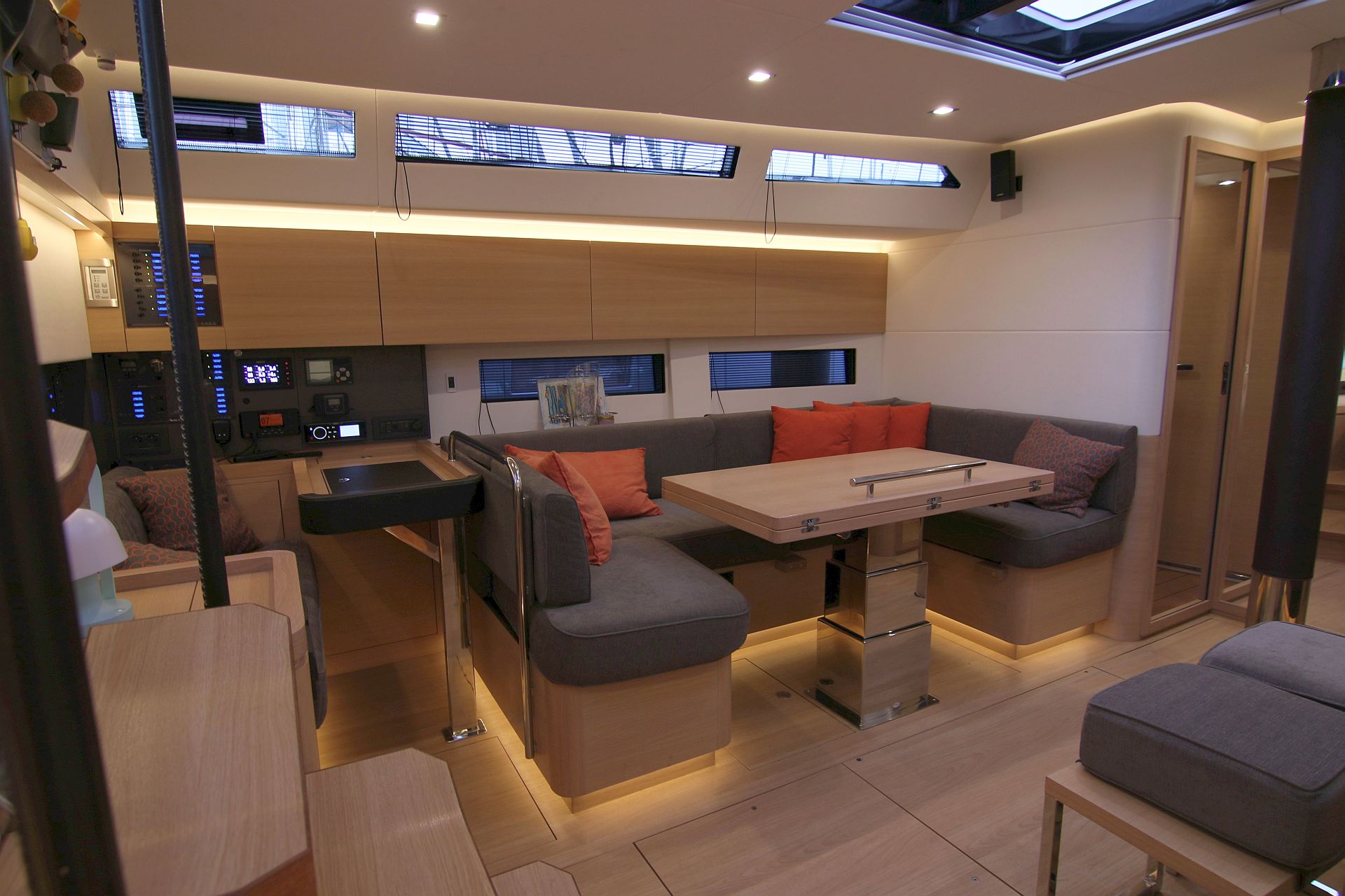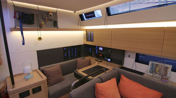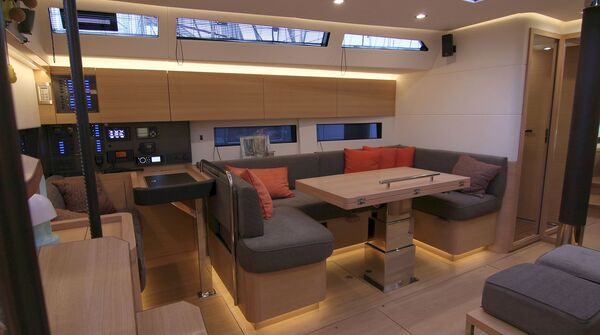 - Großzügiger, geräumiger Salon mit U-förmiger Sitzgruppe an Backbord