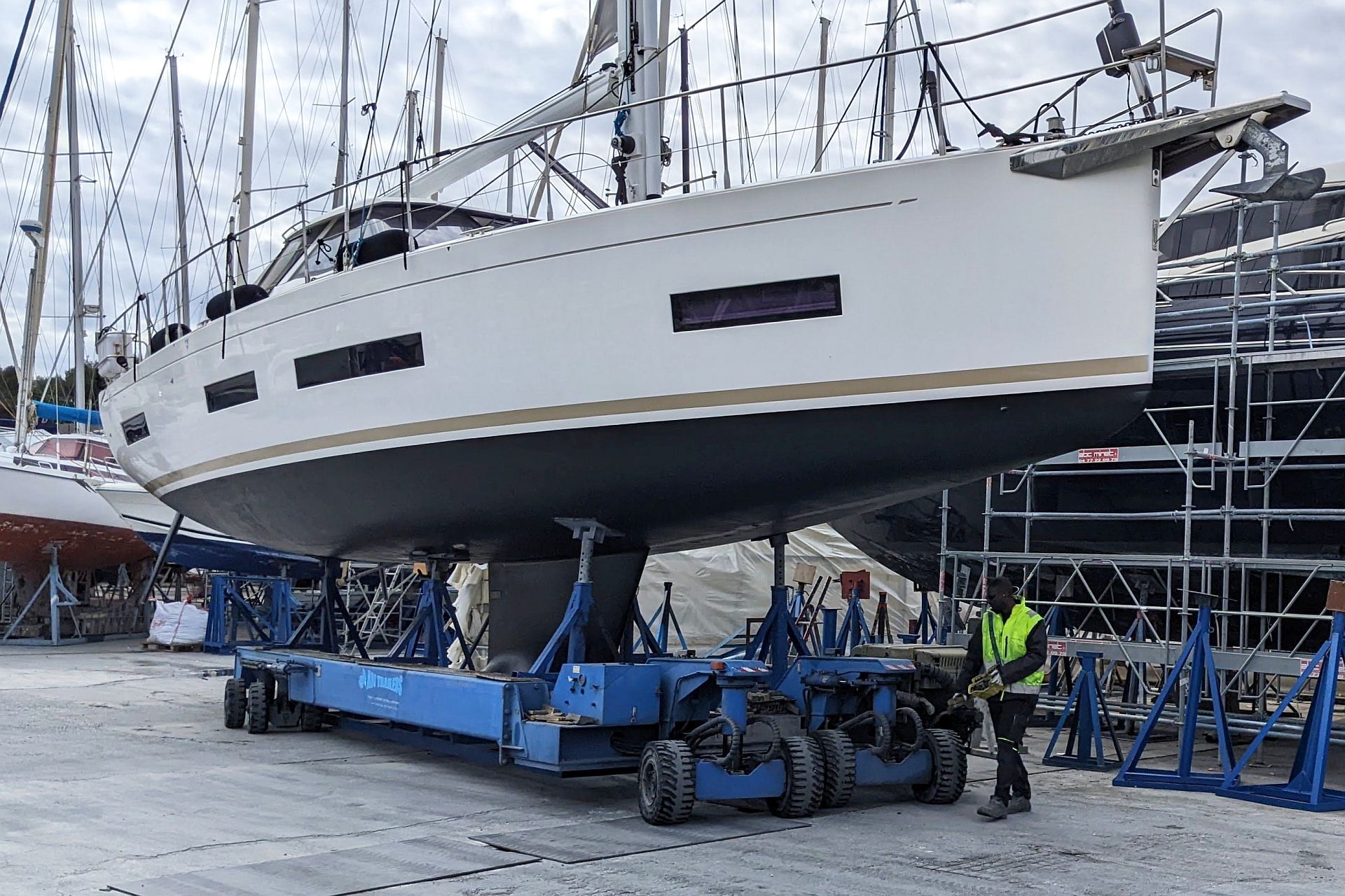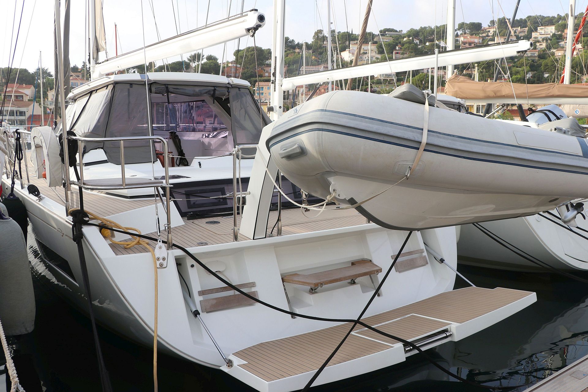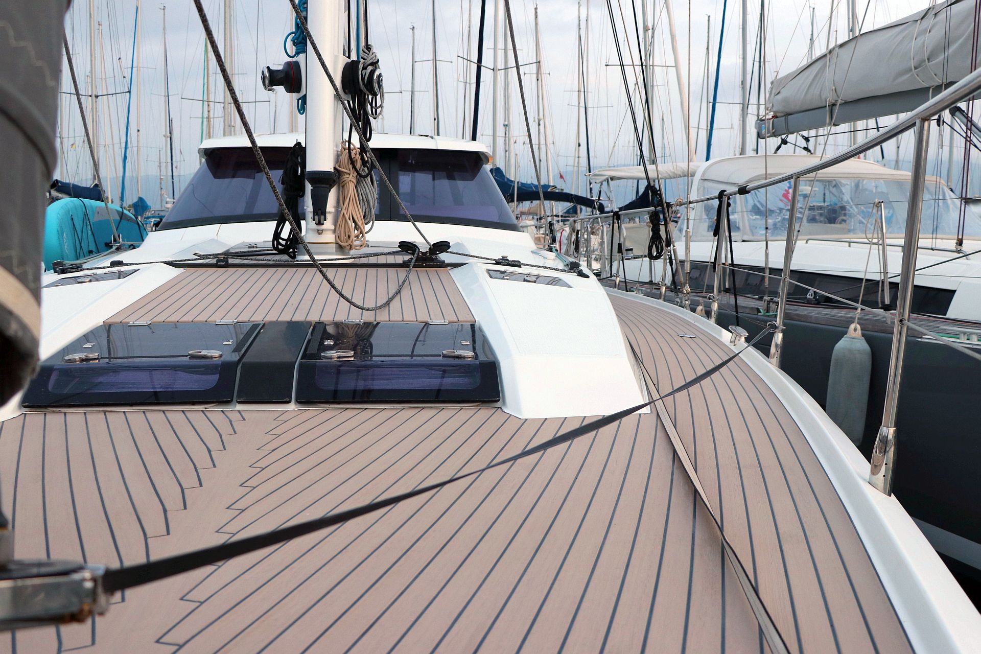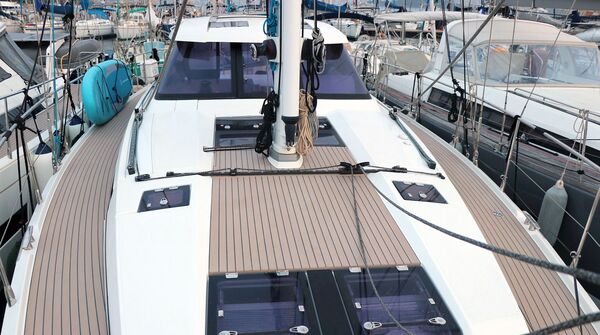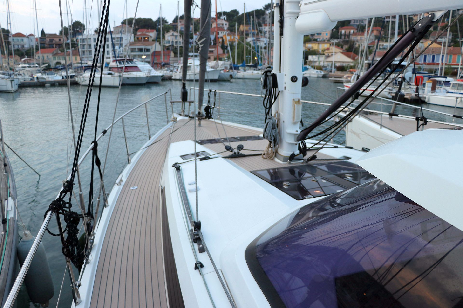 Umfangreich und für Langfahrt ausgerüstete AMEL 50 Baujahr 2018 mit ausfahrbarem Bugstrahlruder, elektrischen Rollanlagen für Großsegel und Genua, elektrischen Winschen, Selbstwendefock am Kutterstag, Klimaanlage, Dieselgenerator 8 KW, Watermaker, elektrische Davits mit Dinghy usw. Heller Ausbau in seidenmatt lackierter Eiche und weiß bespannten Panelen. Das Titelbild ist ein Prospektfoto.