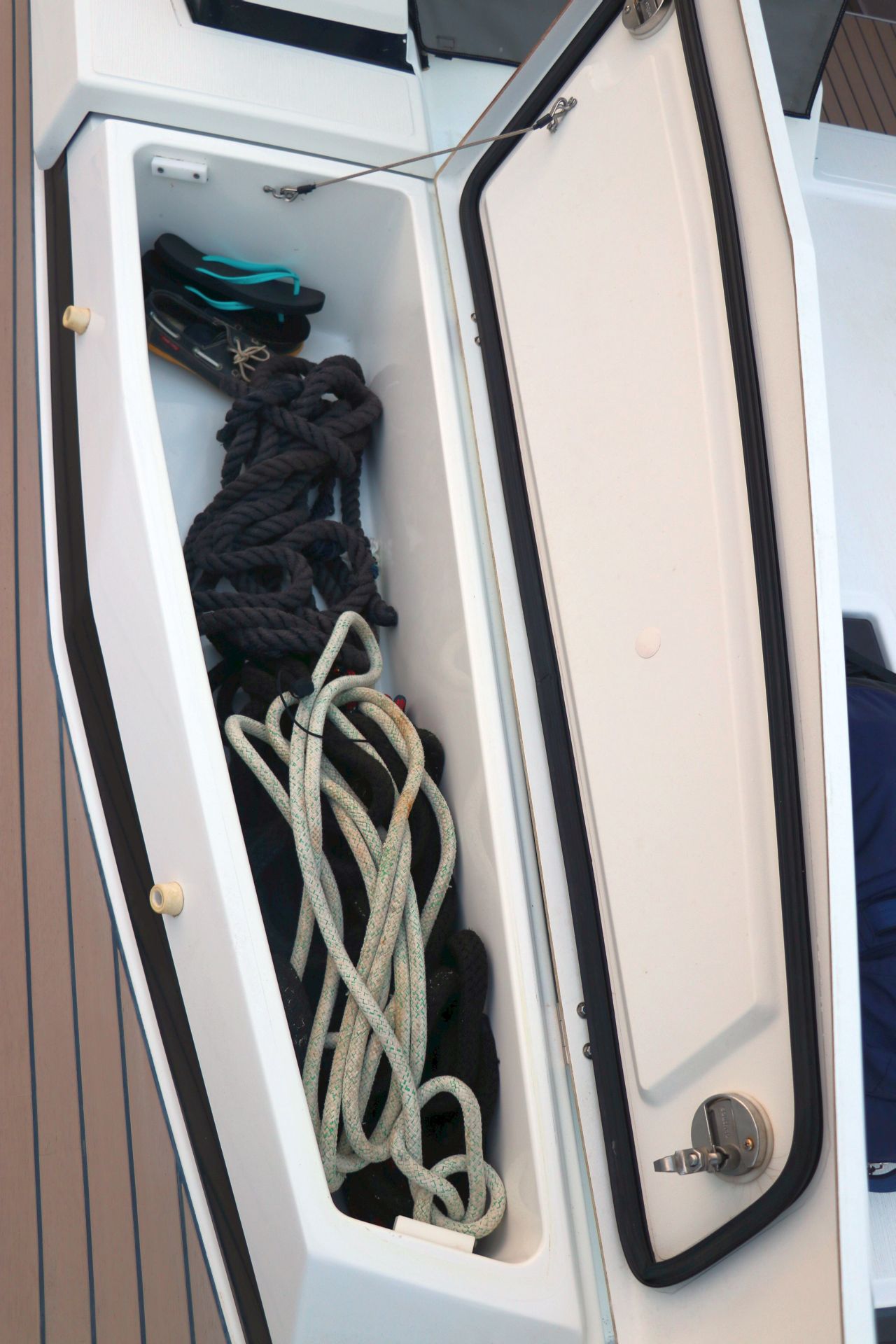 - Große Segellast im Vorschiff mit Stauraum für Fender, Festmacher und Segel