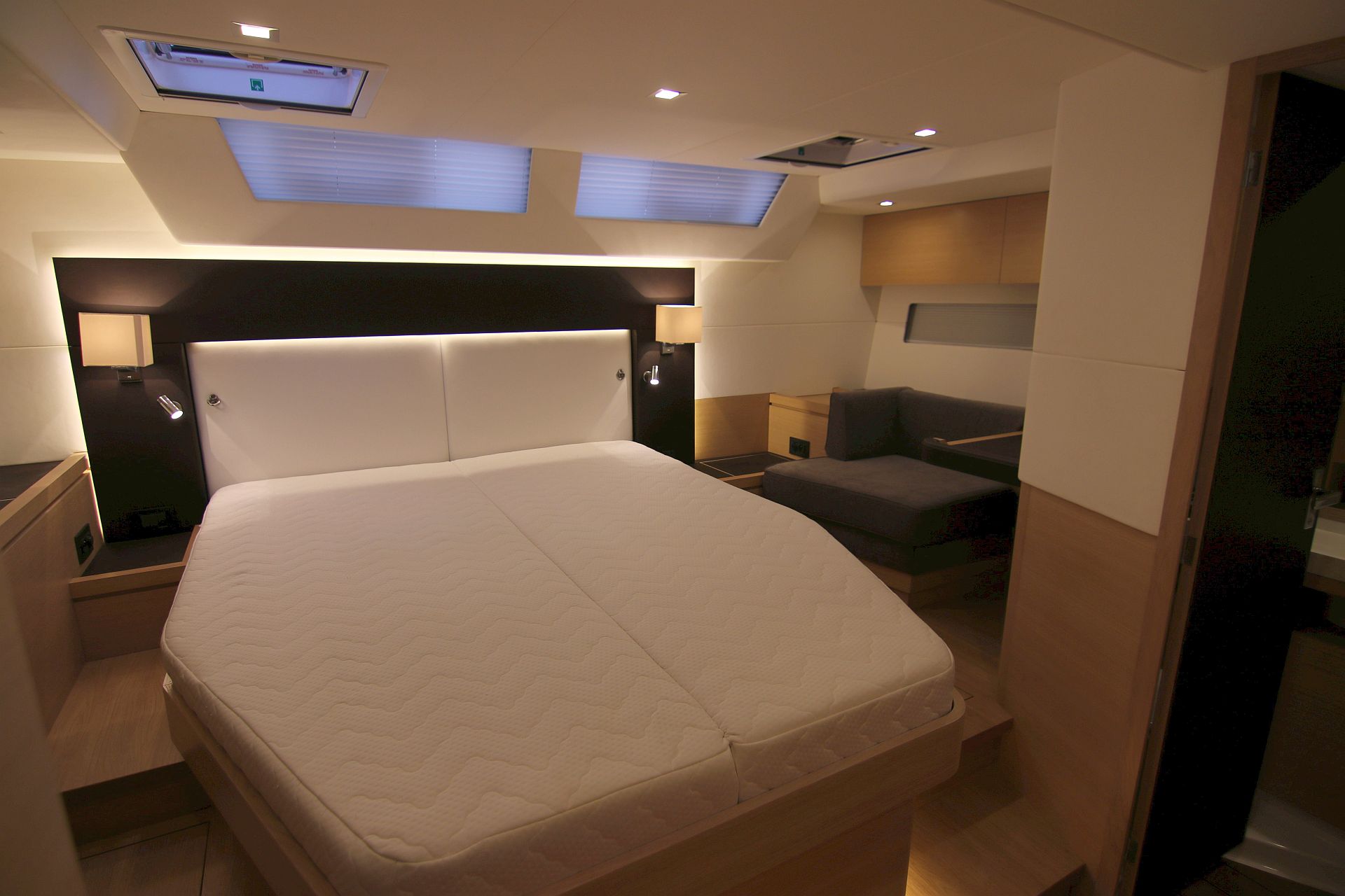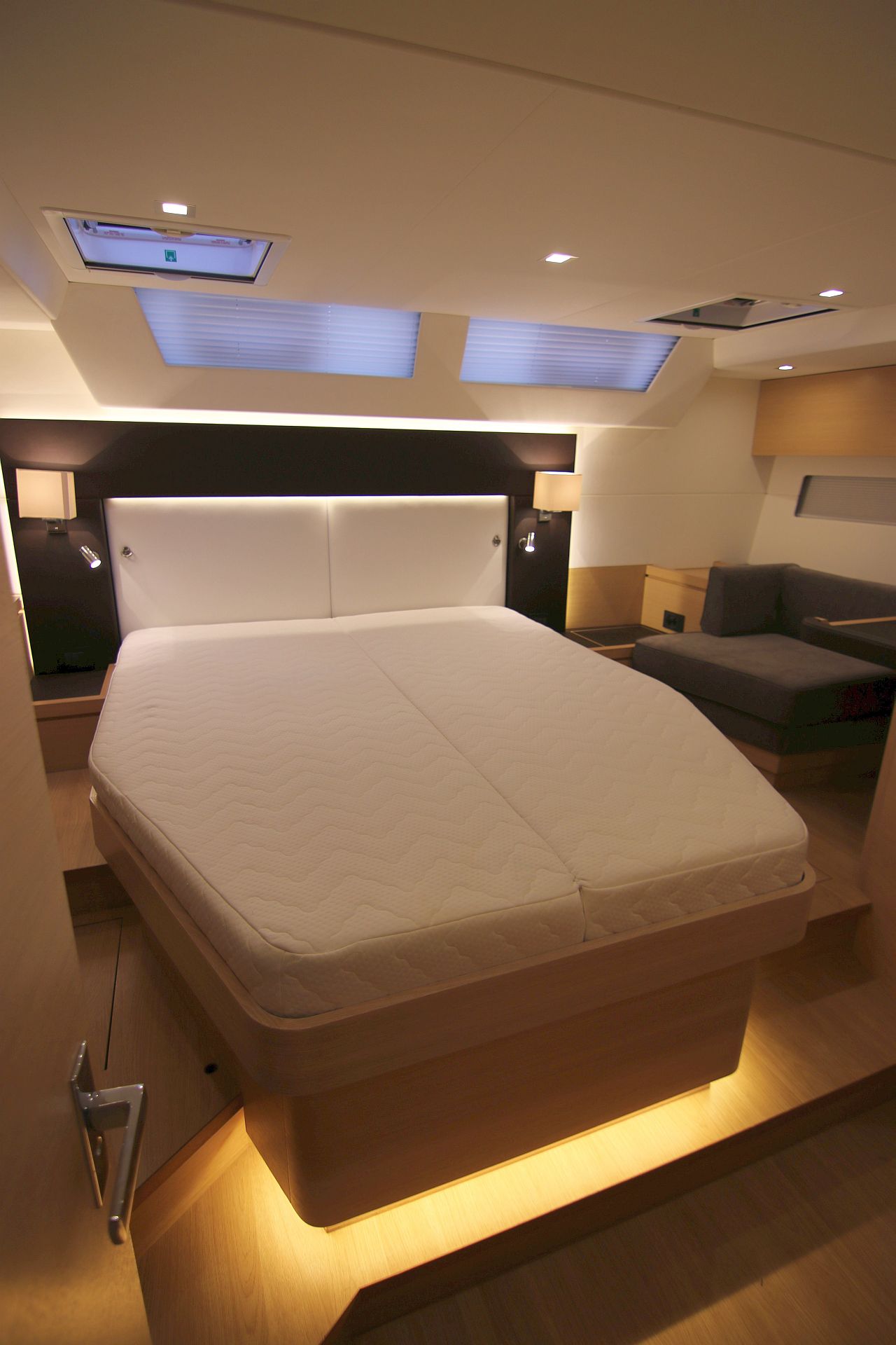 - Gasherd (3 Flammen und Backofen) - Luxuriöse, geräumige Eignerkabine im Heck mit freistehender Doppelkoje, Sessel und Schminktisch, Safe, reichlich Stauraum in Schränken, Fächern, Regalen und unter der Koje, die mit Gasdruckfedern hochgeklappt werden kann.