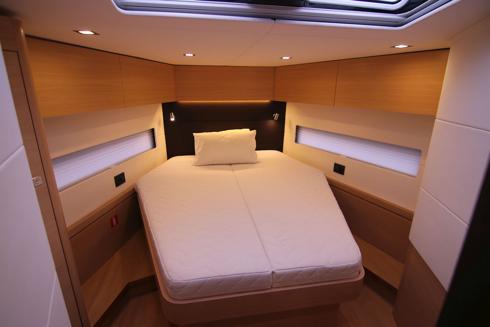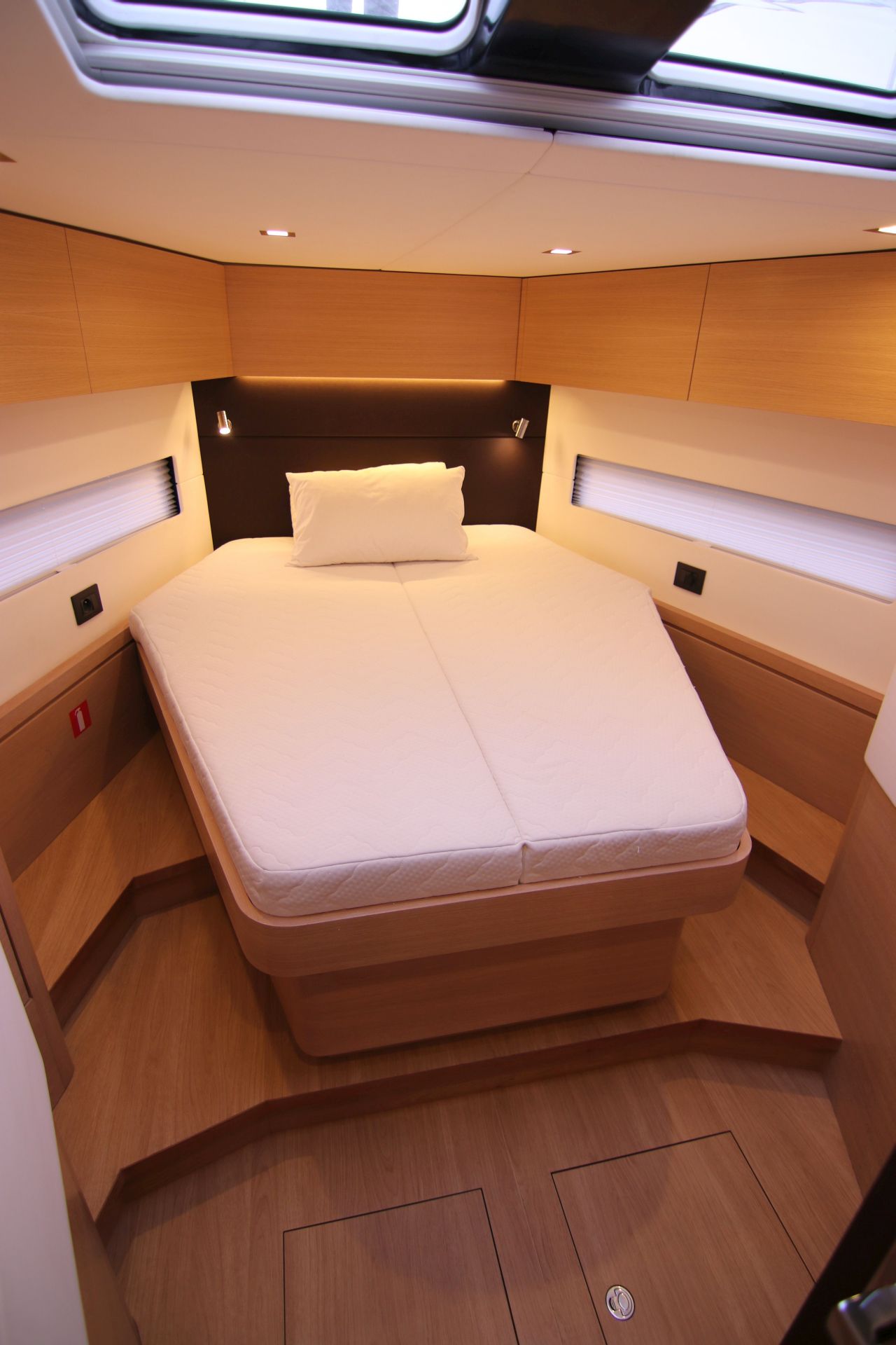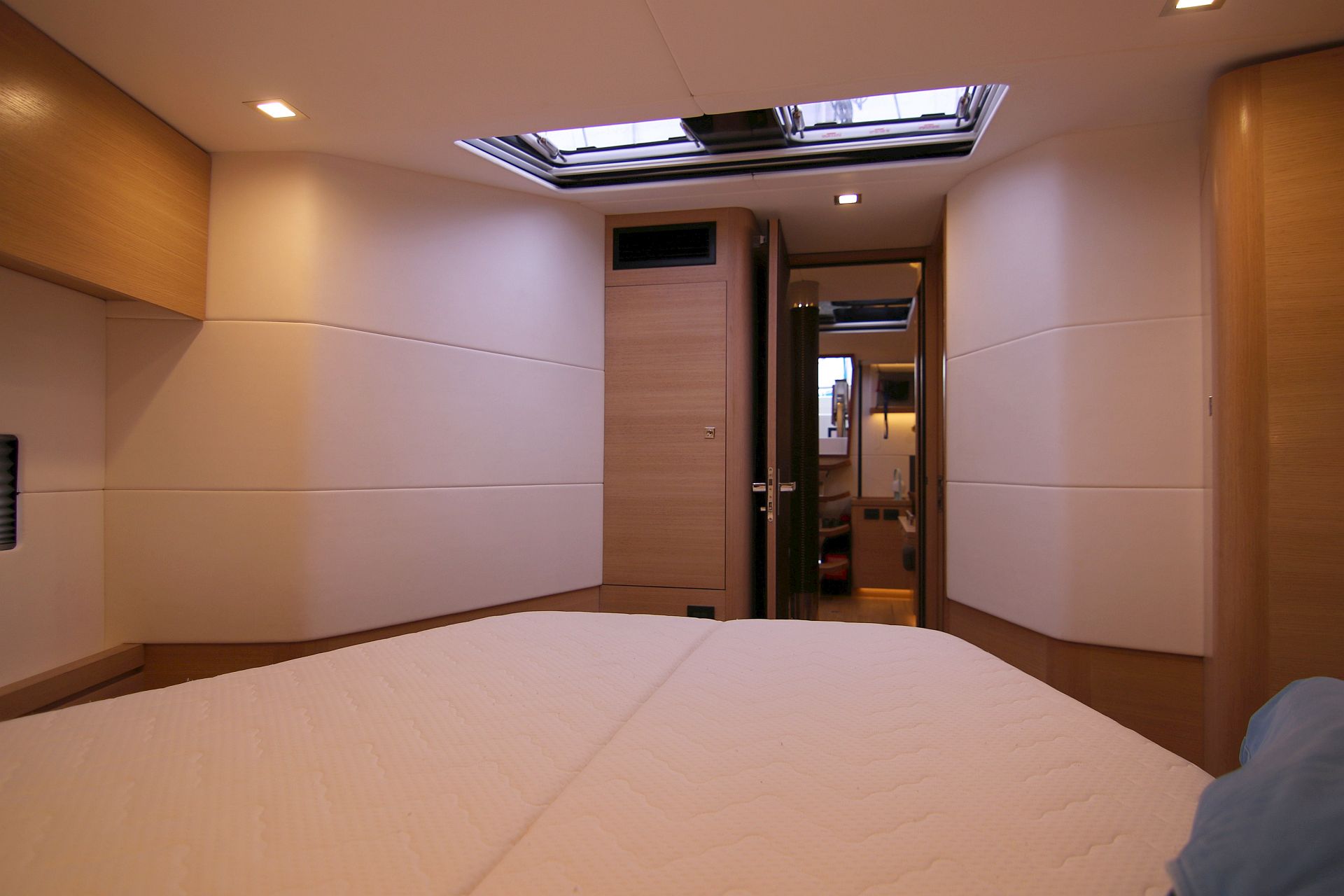 - Gästekabine im Vorschiff mit freistehender Doppelkoje