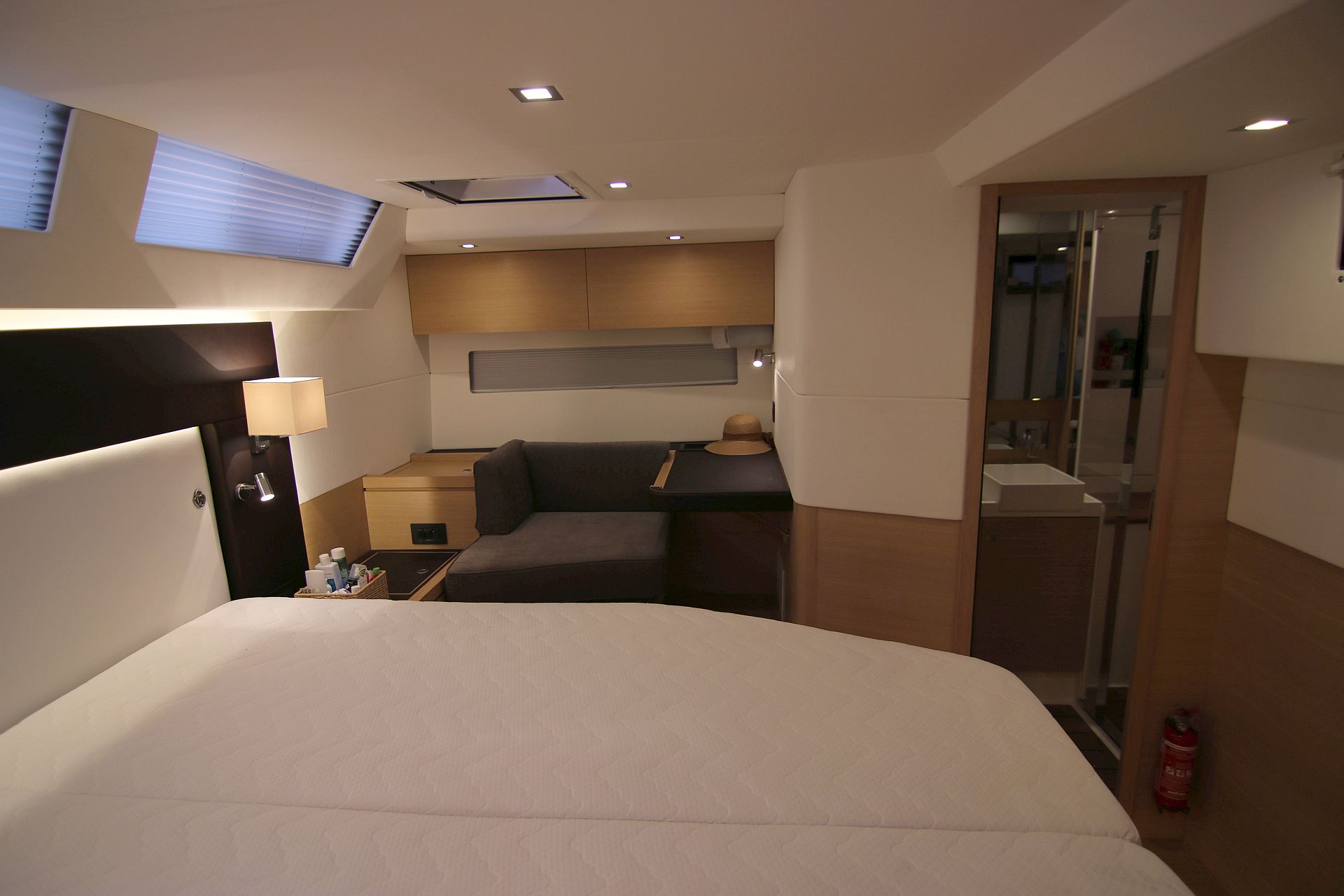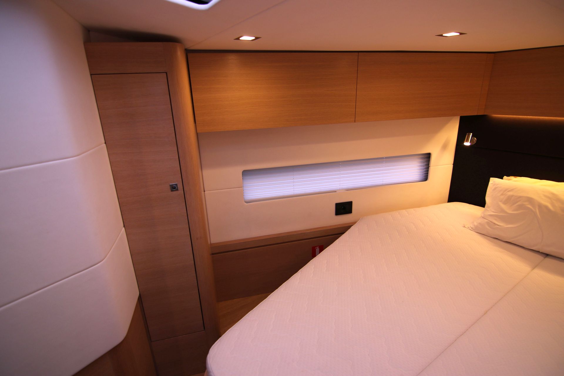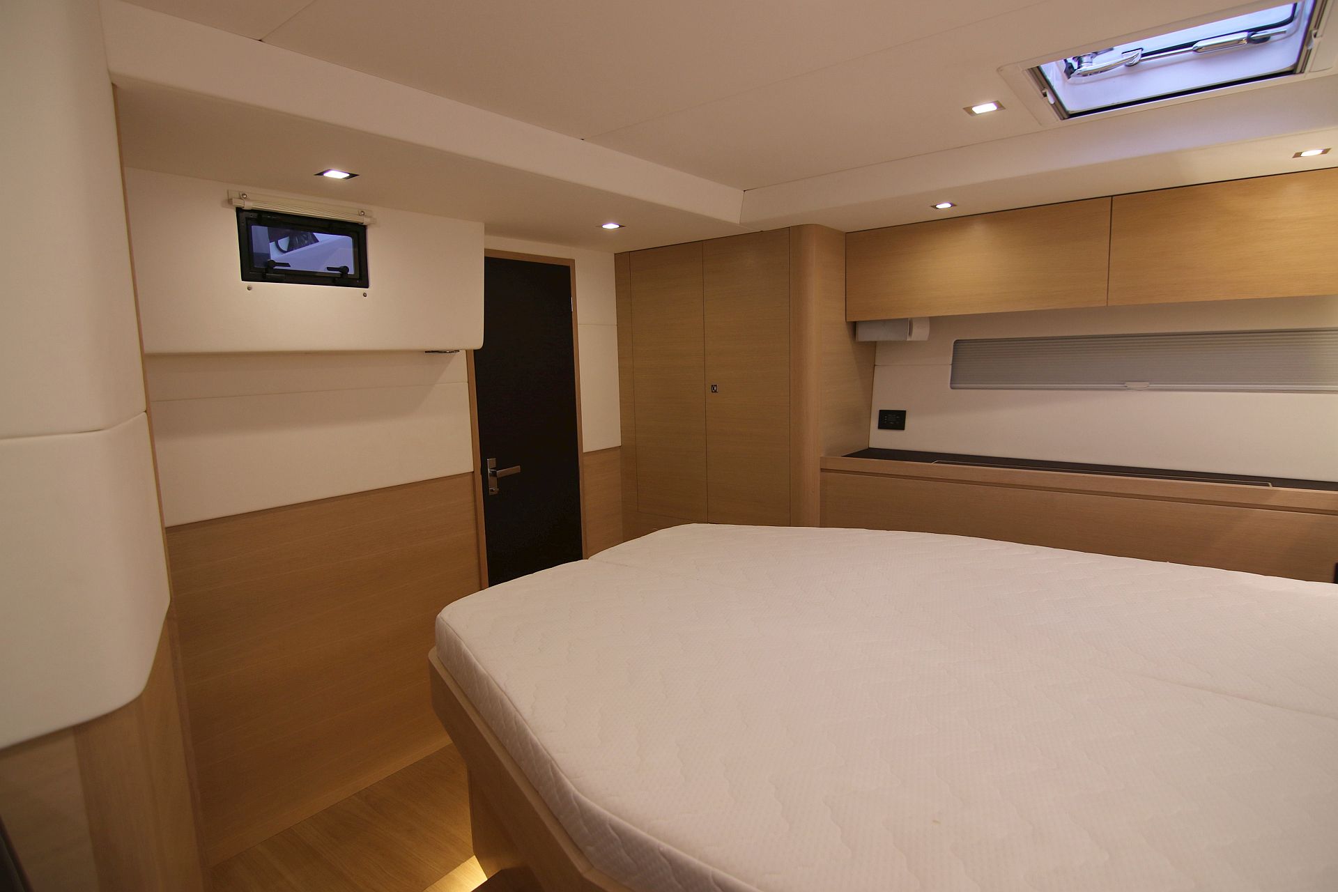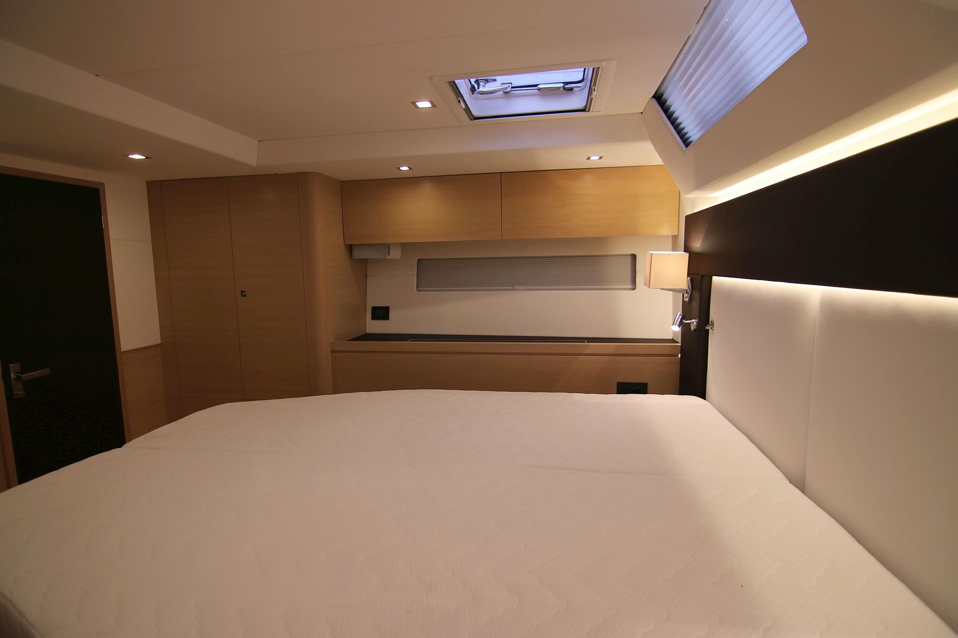 - Gästekabine im Vorschiff mit freistehender Doppelkoje