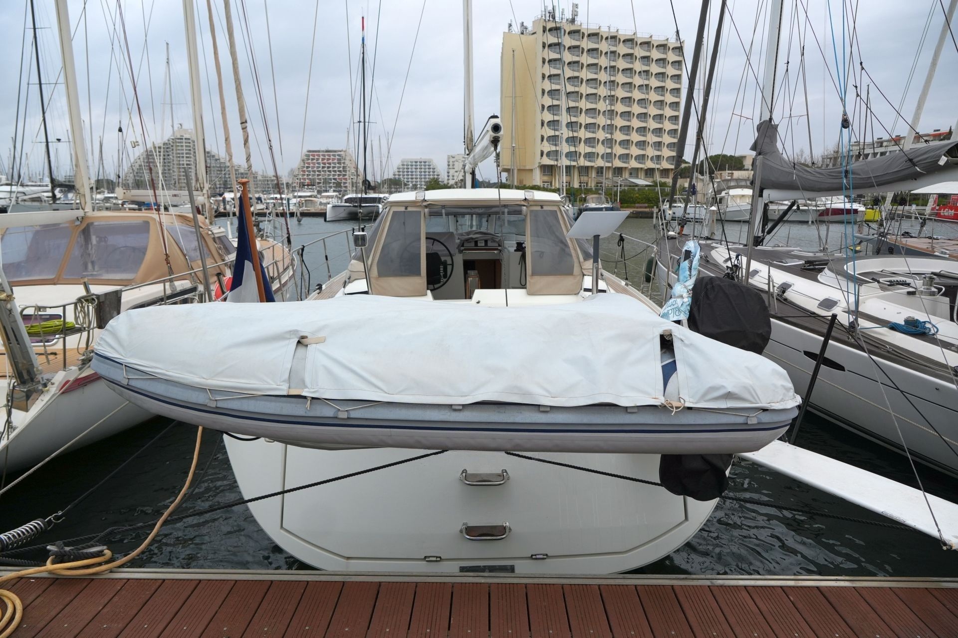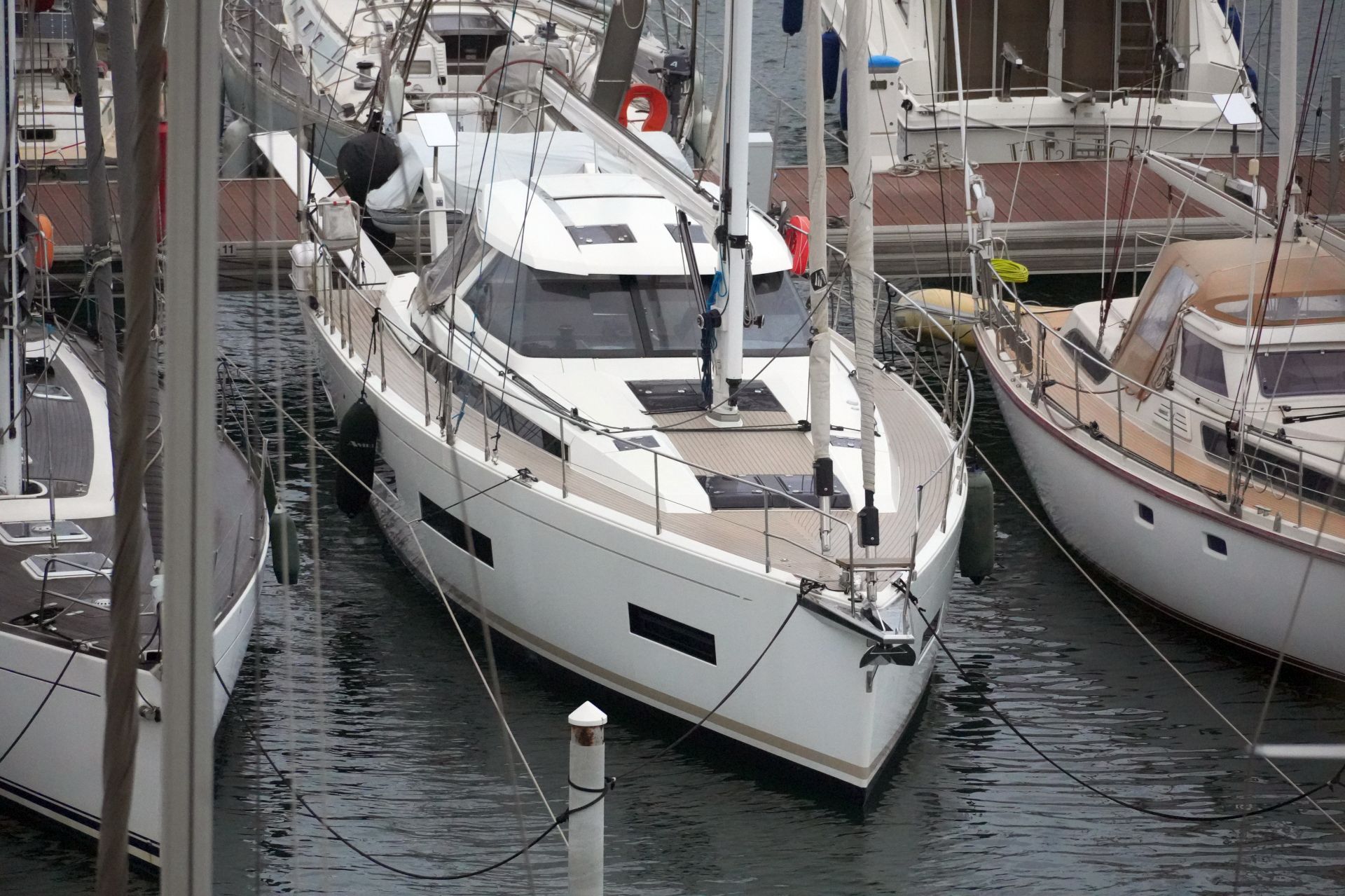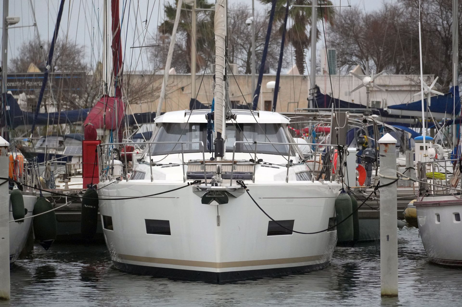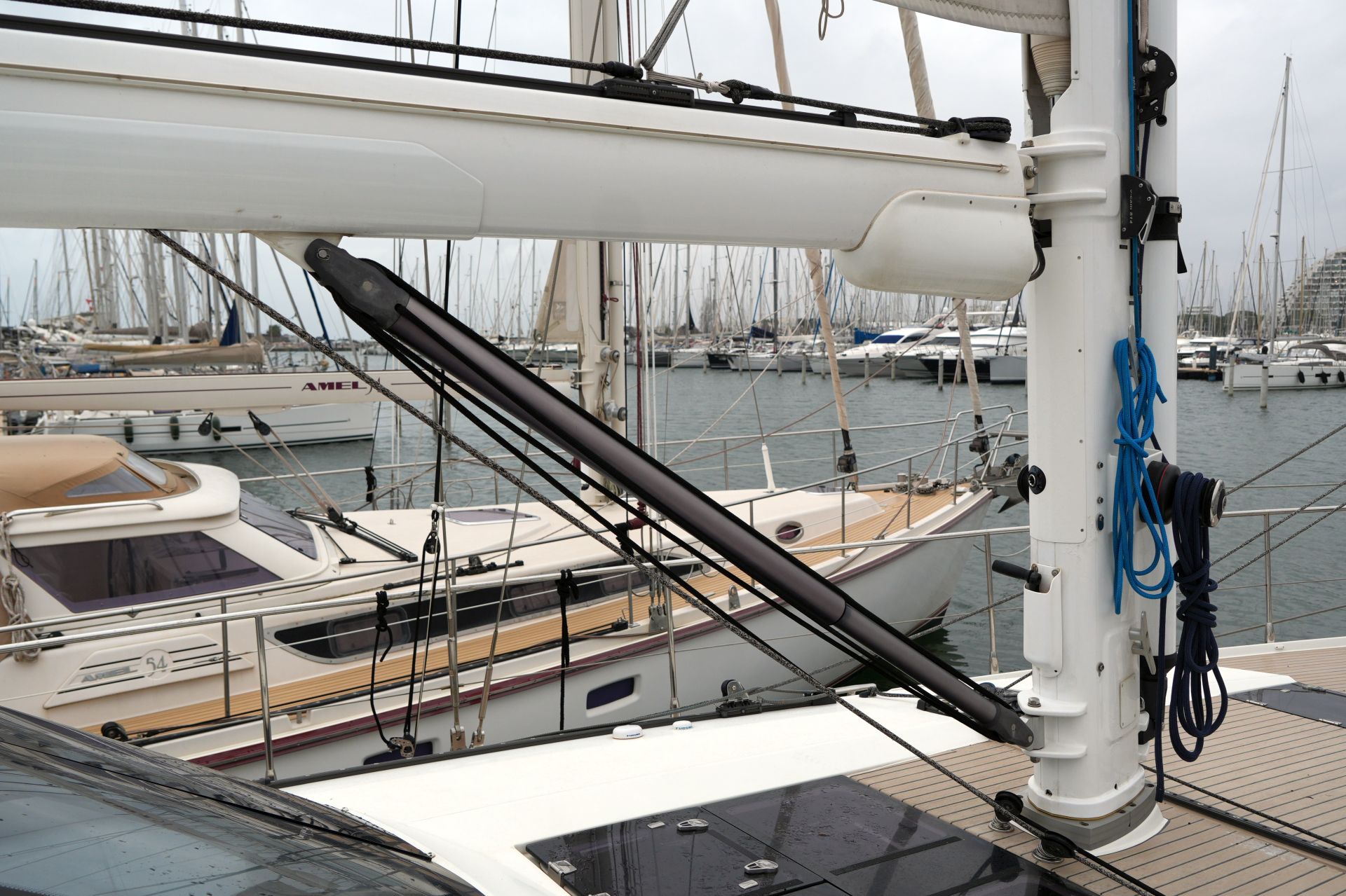 Hervorragend zur weltweiten Fahrt ausgestattete Eigneryacht. Umfangreiche Spezifikation inkl. Dieselgenerator 8 KW, Watermaker, Klimaanlage, Waschmaschine, elektrische Winschen, elektrische Davits inkl. 3,10 m Dinghy, STARLINK Internet-Satellitenantenne usw. Größere Maschine VOLVO PENTA D3-150 mit stärkerer Welle 45 mm und VARIFOLD Faltpropeller. Dank elektrischer Genuarollanlage, Selbstwendefock mit elektrischer Rollanlage und elektrischem Rollgroß inkl. elektrischem Unterliekstrecker ist diese AMEL 50 einhandtauglich. Moderner, exklusiver Ausbau in seidenmatt lackierter Amerikanischer Walnuß mit weiß bespannten Paneelen, hellen laminierten Bodenbrettern und zahlreichen Lederapplikationen. Die AMEL 50 liegt segelfertig in der Camargue, ist kurzfristig lieferbar und kann jederzeit nach Absprache besichtigt werden.