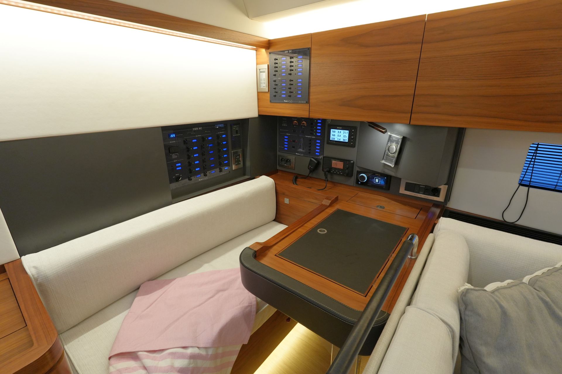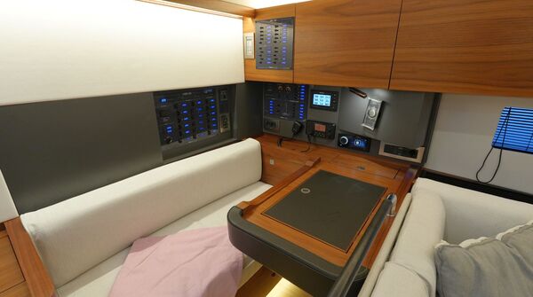 - Kartentisch in Fahrtrichtung eingebaut an Backbord achtern