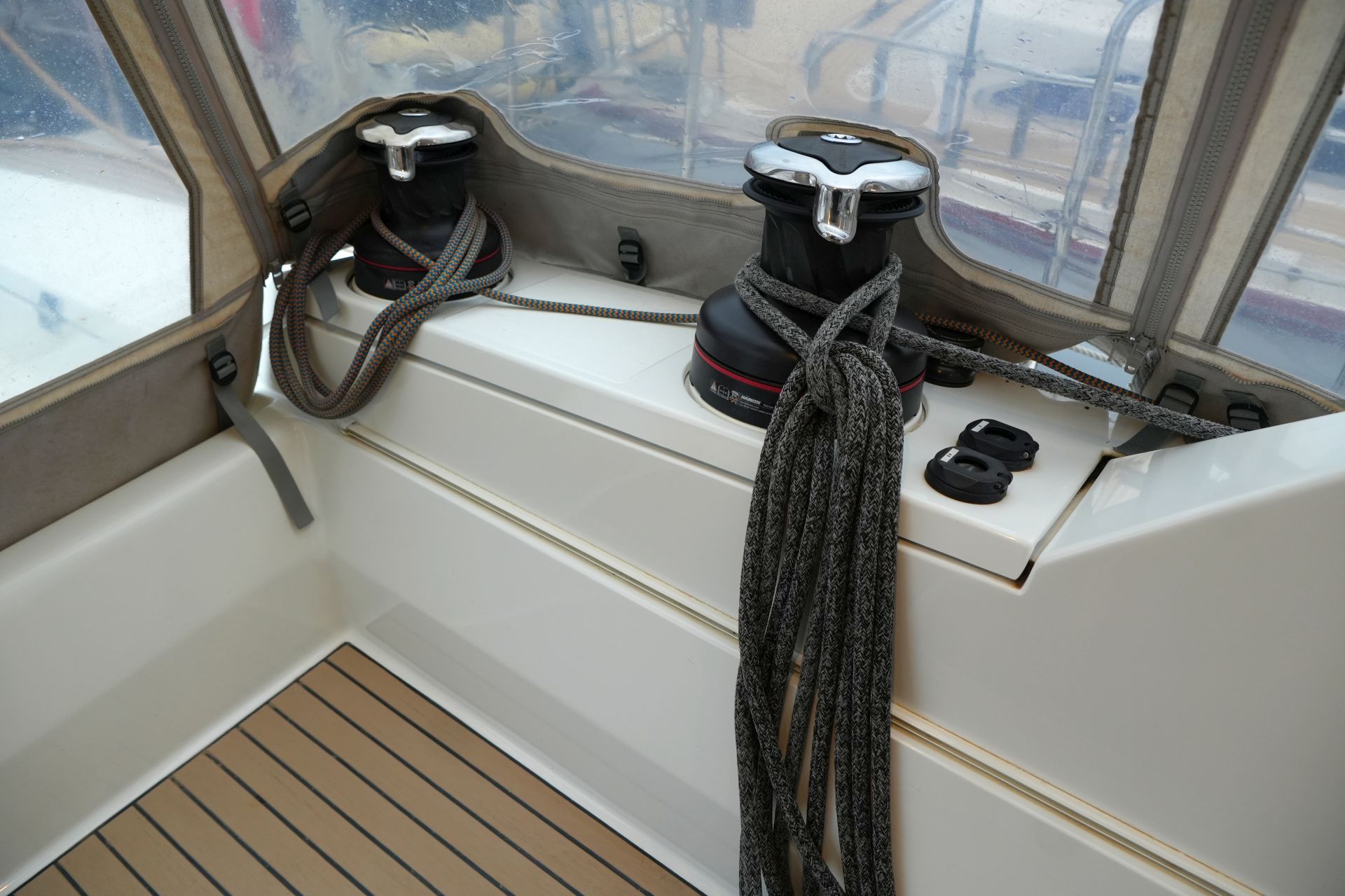 - Persenninge für Konsole, Steuerrad, Steuersitz, Niedergang, Cockpittisch und Instrumente