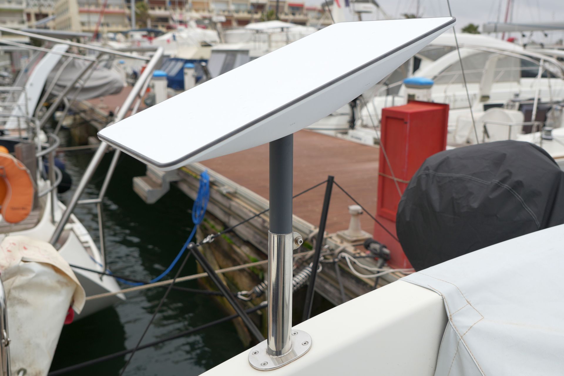 - Klappbarer Cockpittisch in Teak und Edelstahl