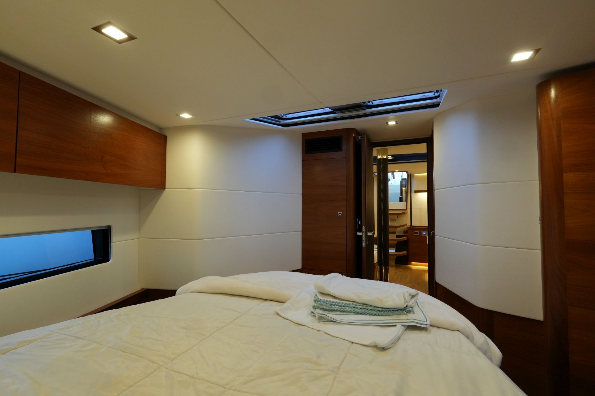 - Gästekabine im Vorschiff mit freistehender Doppelkoje