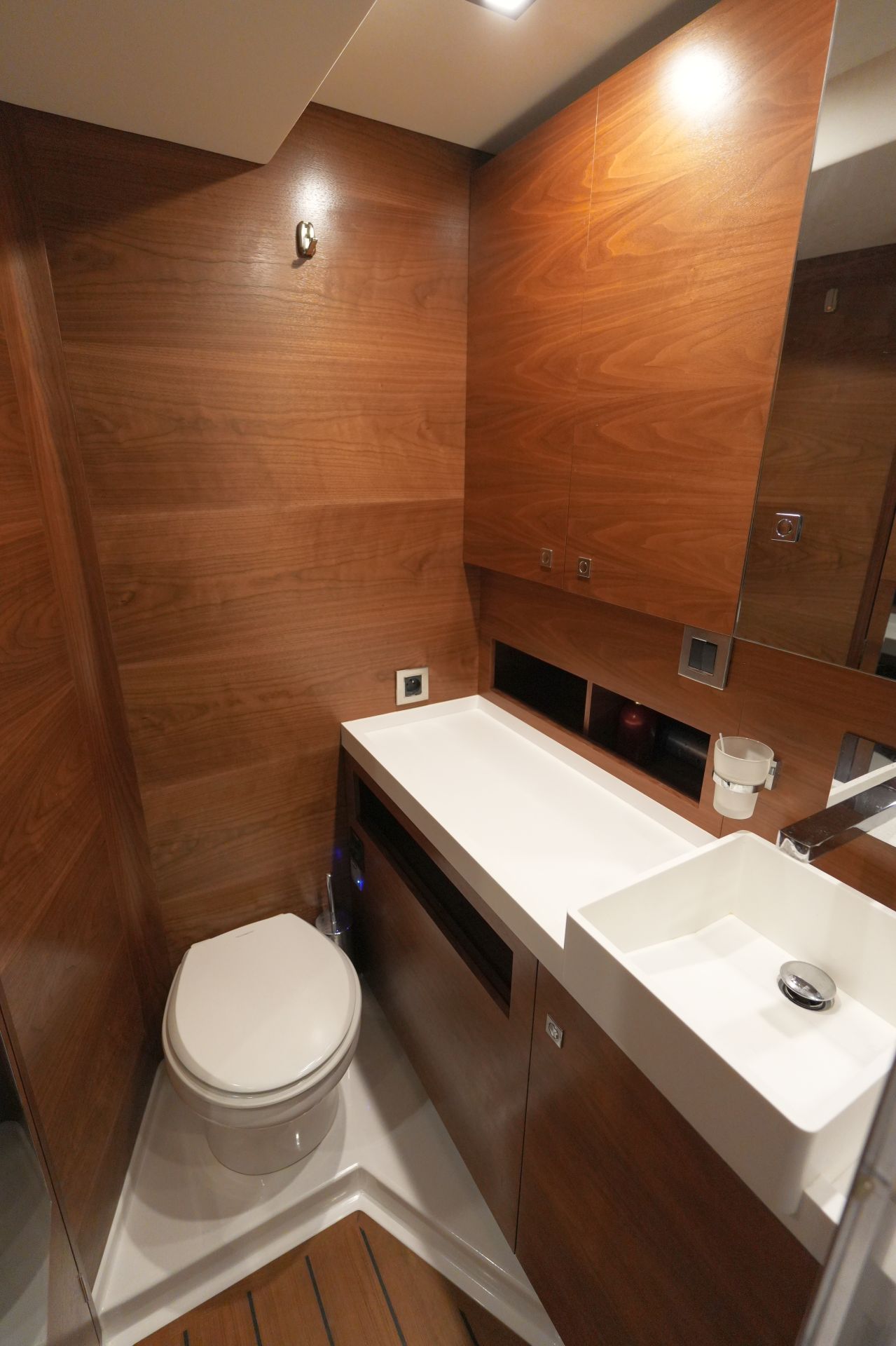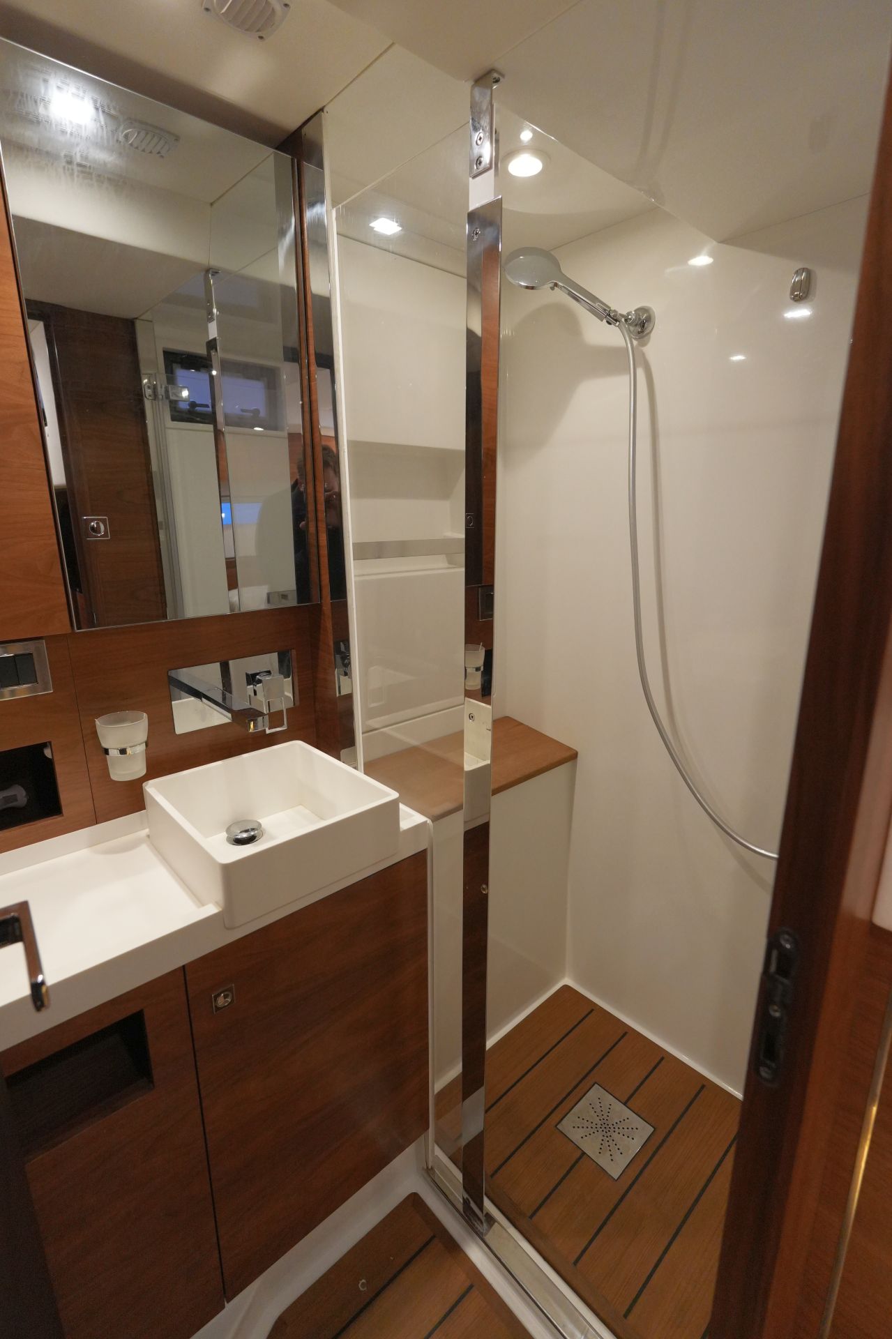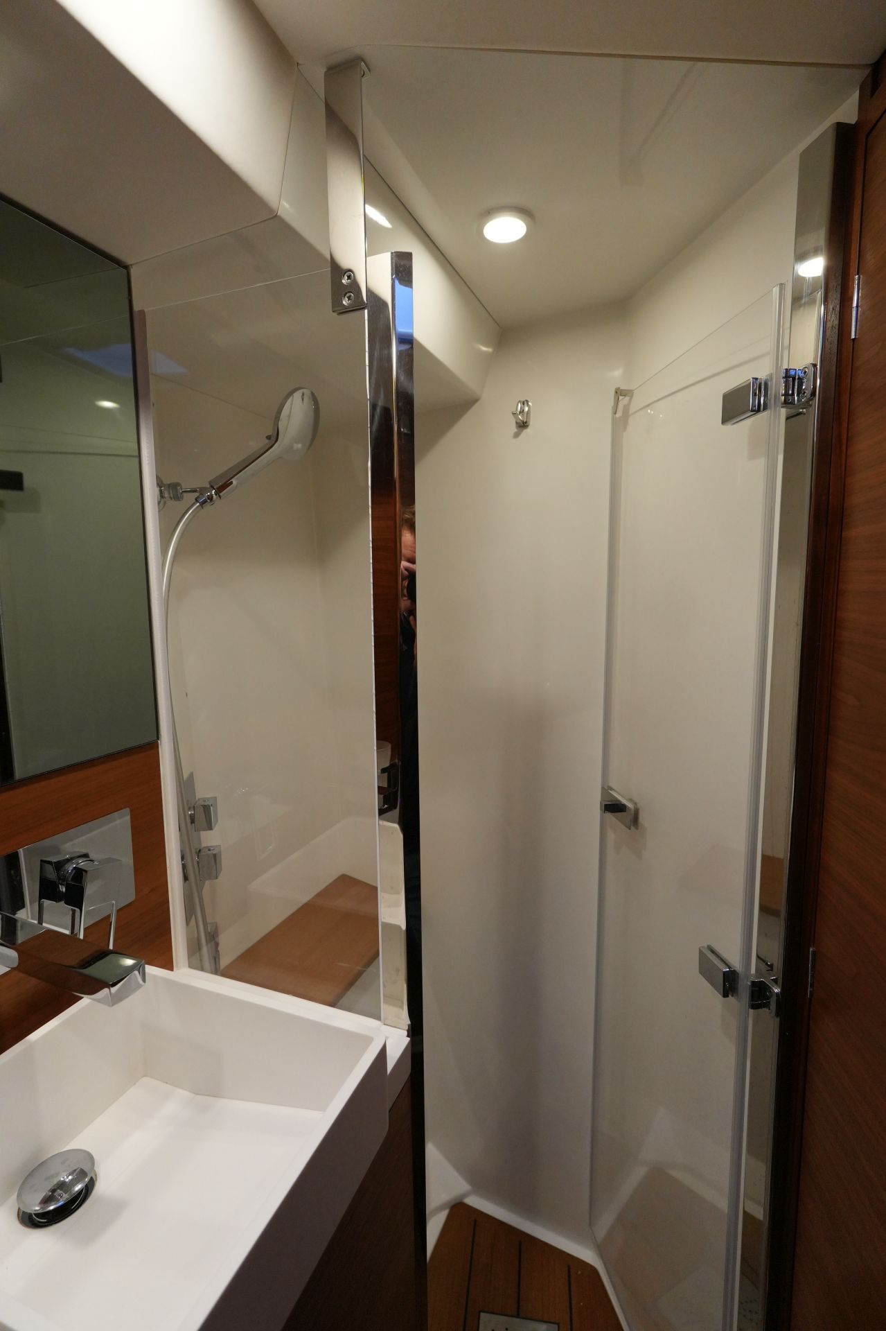- Eignerbad mit separater Duschkabine und elektrischer Toilette an Backbord