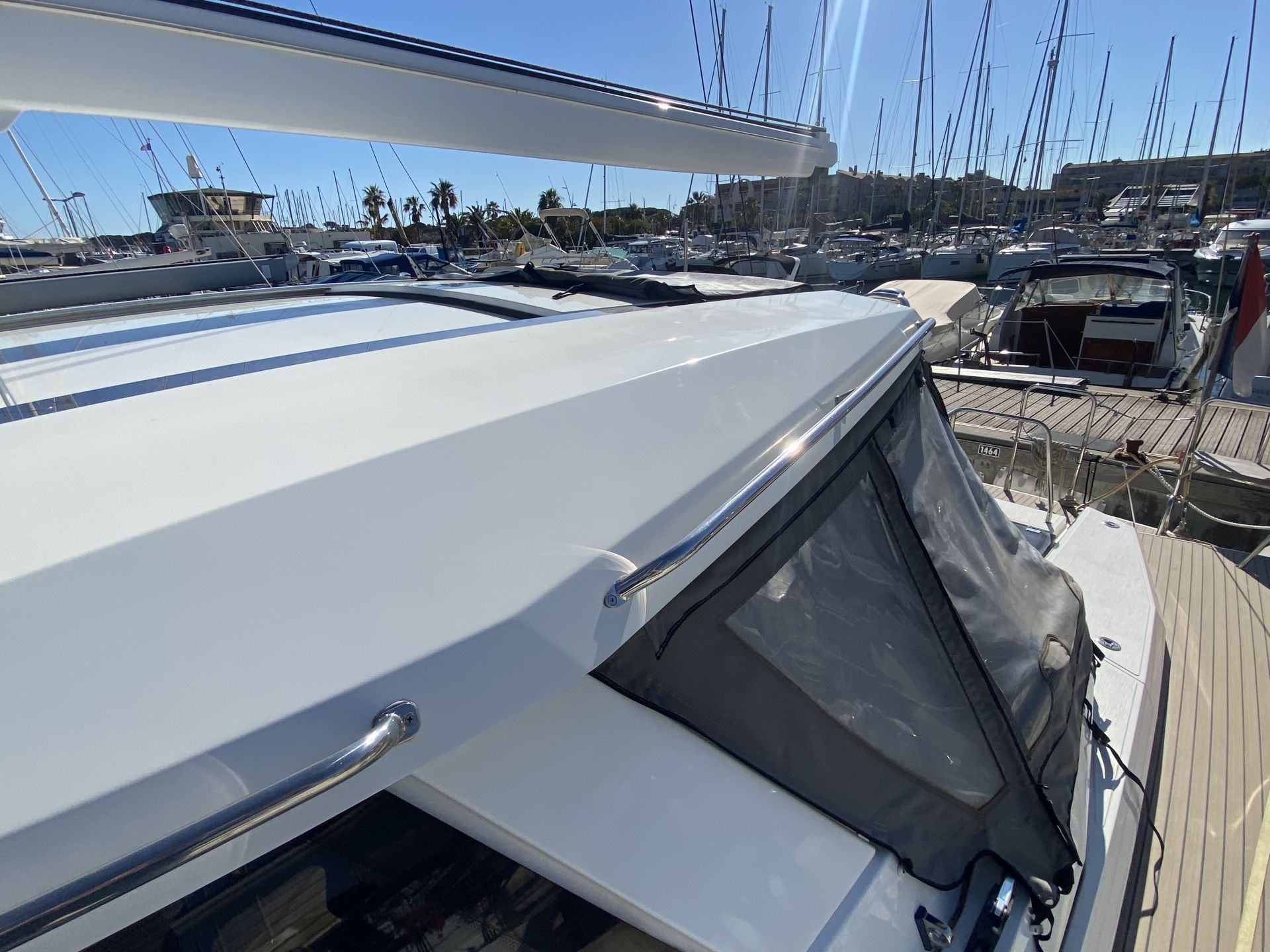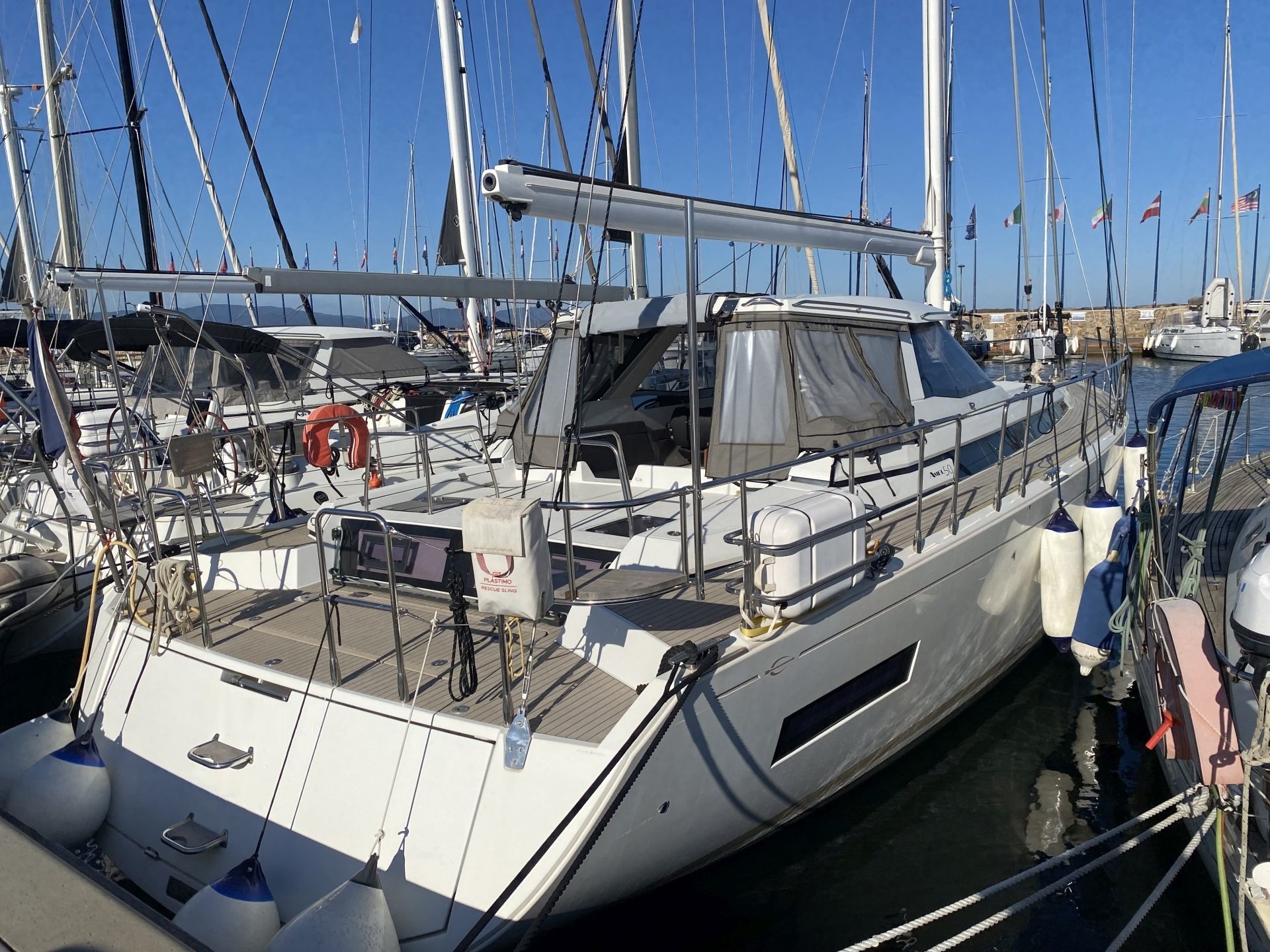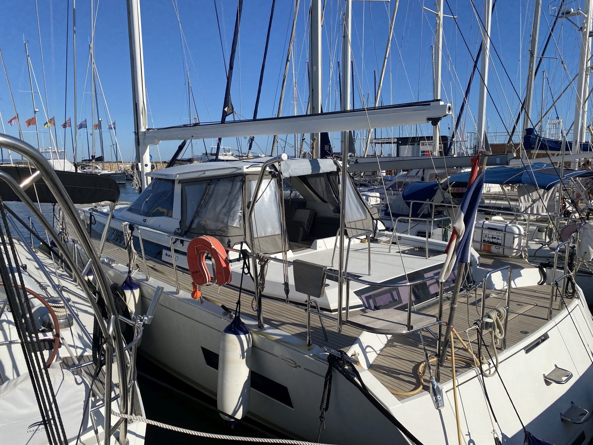 Hervorragend zur weltweiten Fahrt ausgestattete Eigneryacht. Umfangreiche Spezifikation inkl. Dieselgenerator 8 KW, Watermaker, Klimaanlage und Dieselheizung, Waschmaschine, elektrische Winschen, elektrische Davits inkl. 3,10m Dinghy und VARIFOLD Faltpropeller usw. Dank elektrischer Genuarollanlage, Selbstwendefock und elektrischem Rollgroß inkl. elektrischem Unterliekstrecker ist diese AMEL 50 einhandtauglich. Moderner, exklusiver Ausbau in heller, seidenmatt lackierter Eiche mit weiß bespannten Paneelen, hellen laminierten Bodenbrettern und zahlreichen Lederapplikationen. Die AMEL 50 liegt segelfertig in Südfrankreich und kann jederzeit nach Absprache besichtigt werden. Das Titelbild ist ein Prospektfoto von einem Schwesterschiff, alle anderen Bilder zeigen die angebotene Yacht.