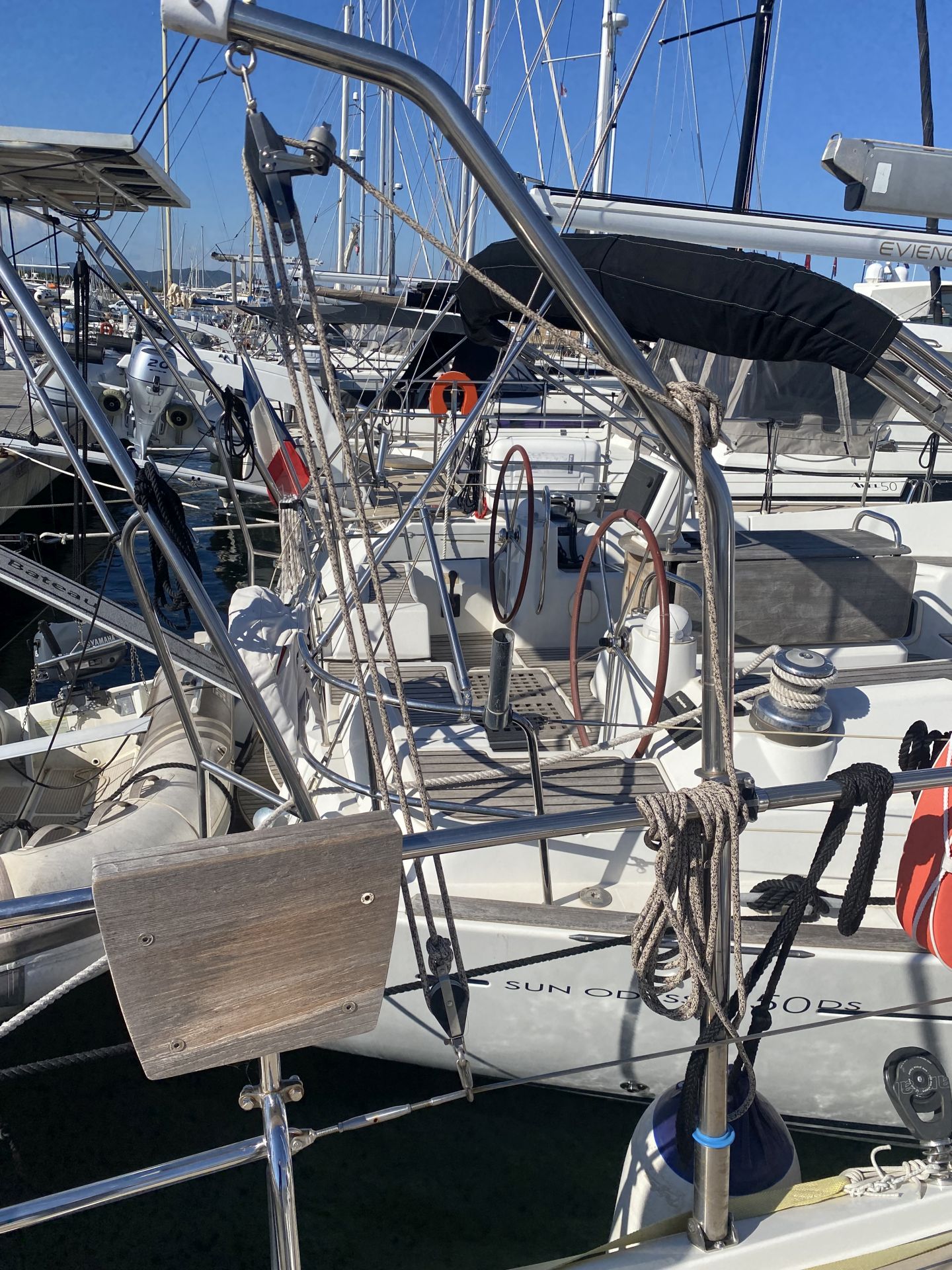 - Durchgehende feste Seereling aus Edelstahl Rohr mit Relingstoren an Steuerbord und Backbord