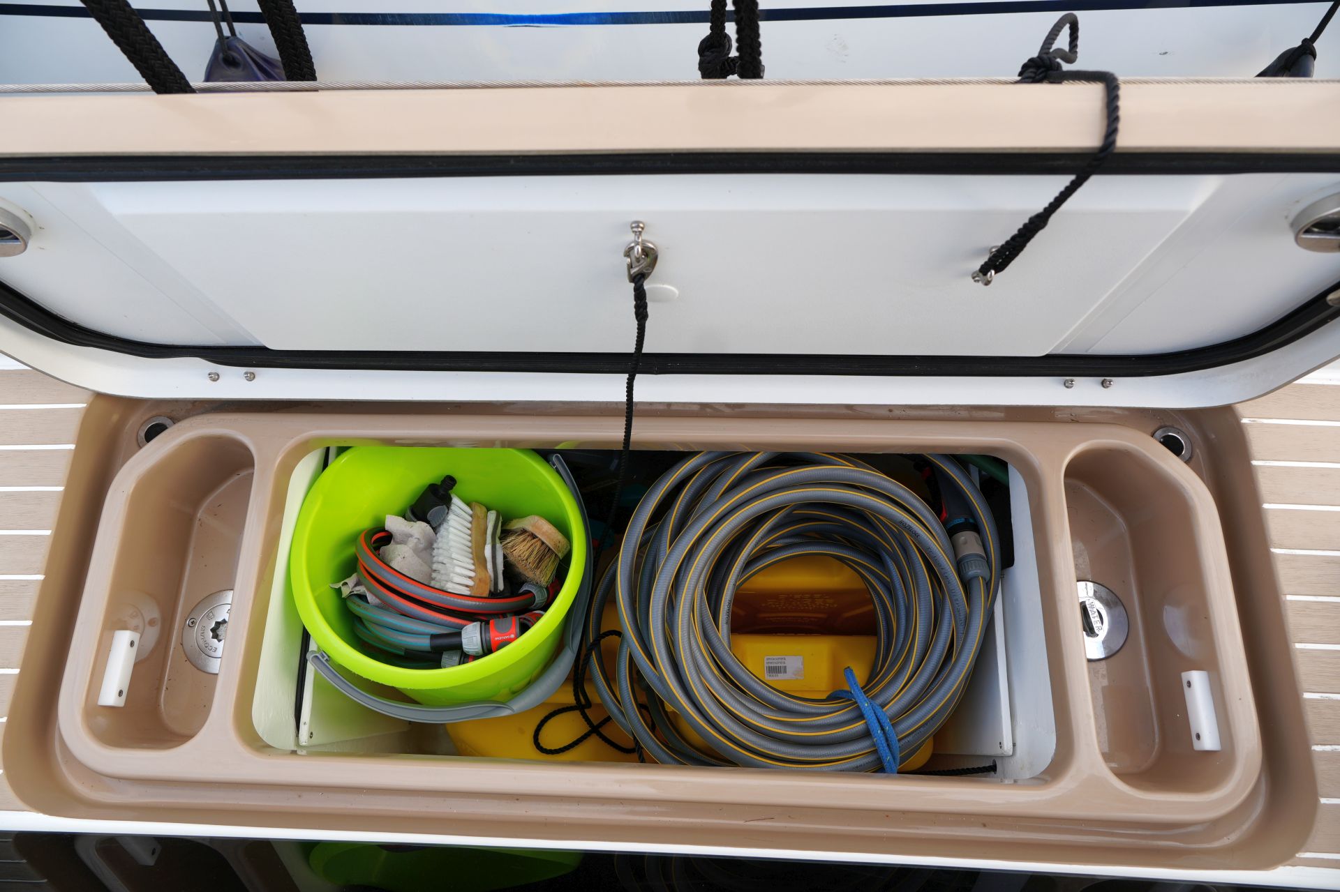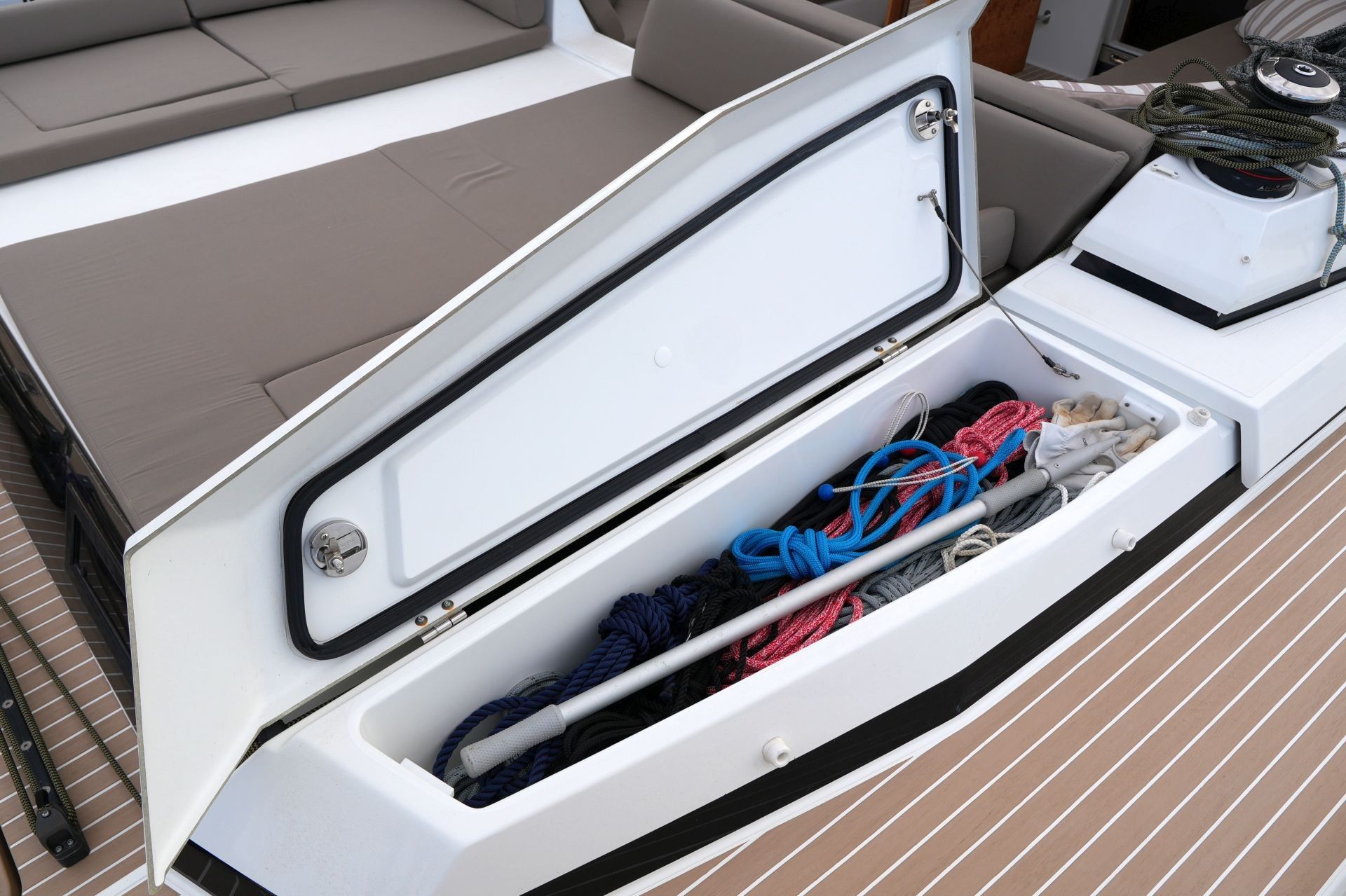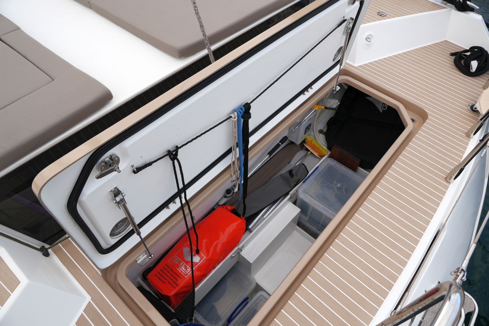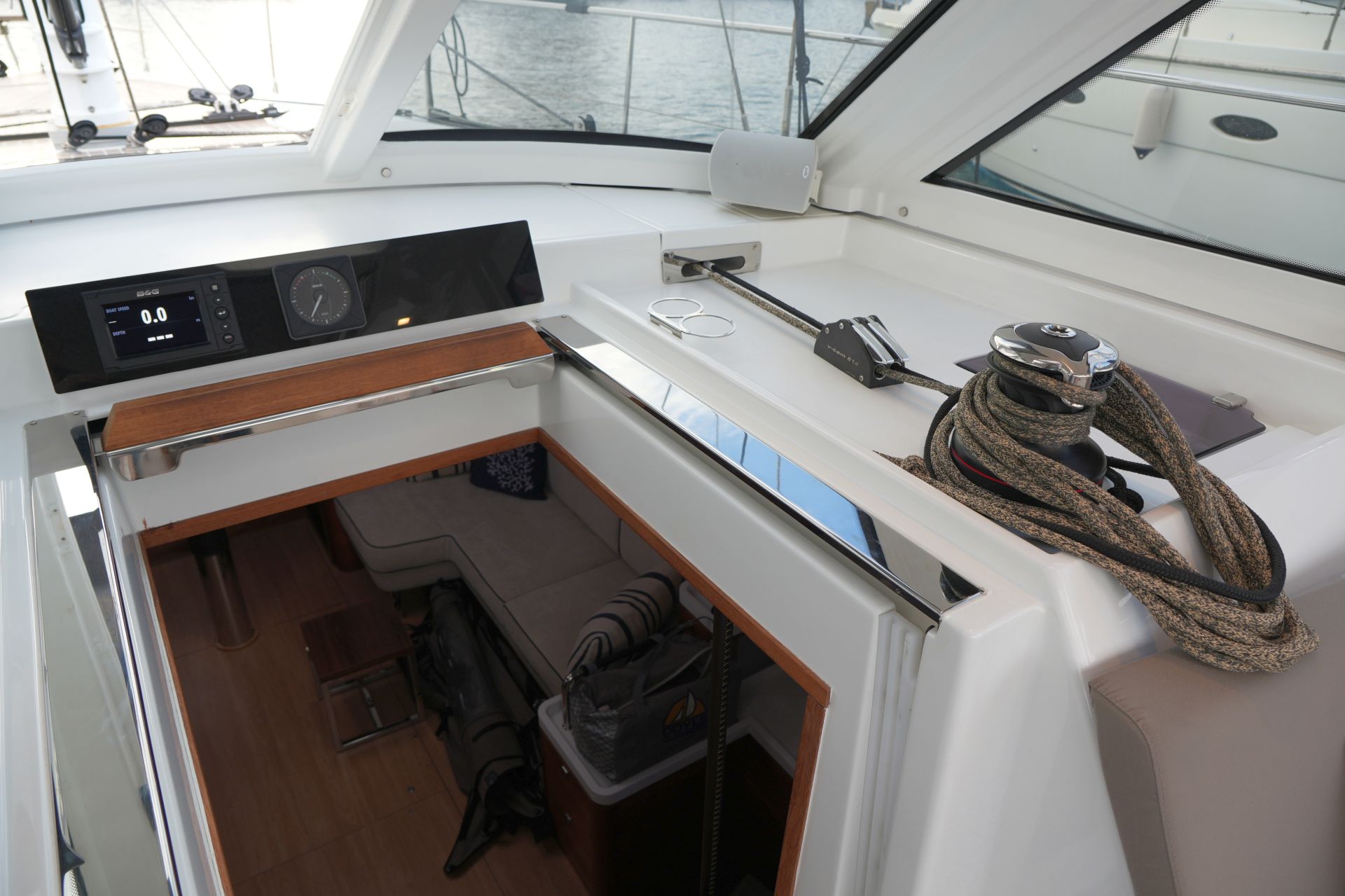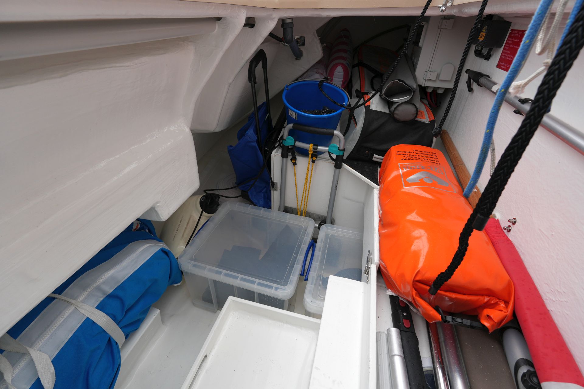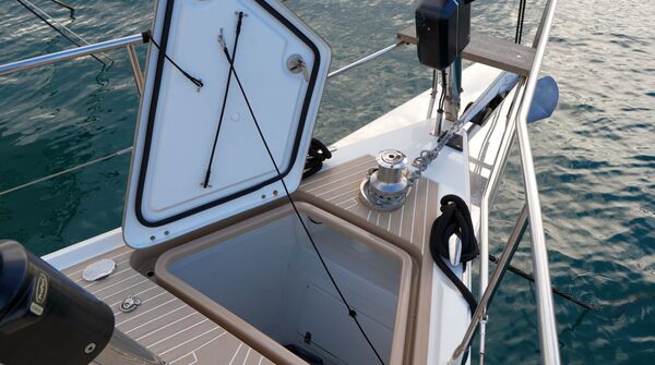 - Große Segellast im Vorschiff mit Stauraum für Fender, Festmacher und Segel