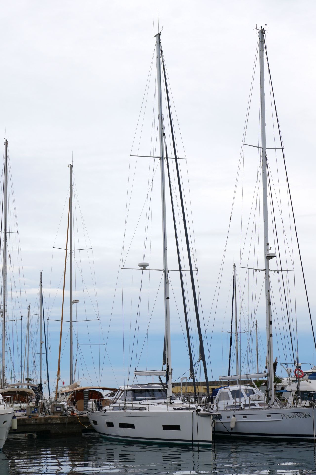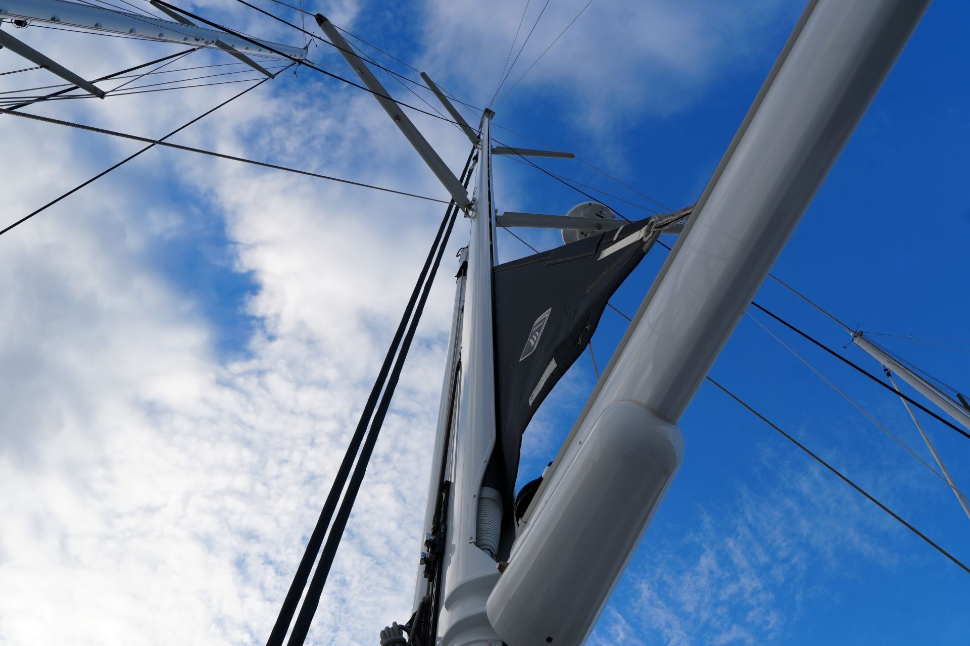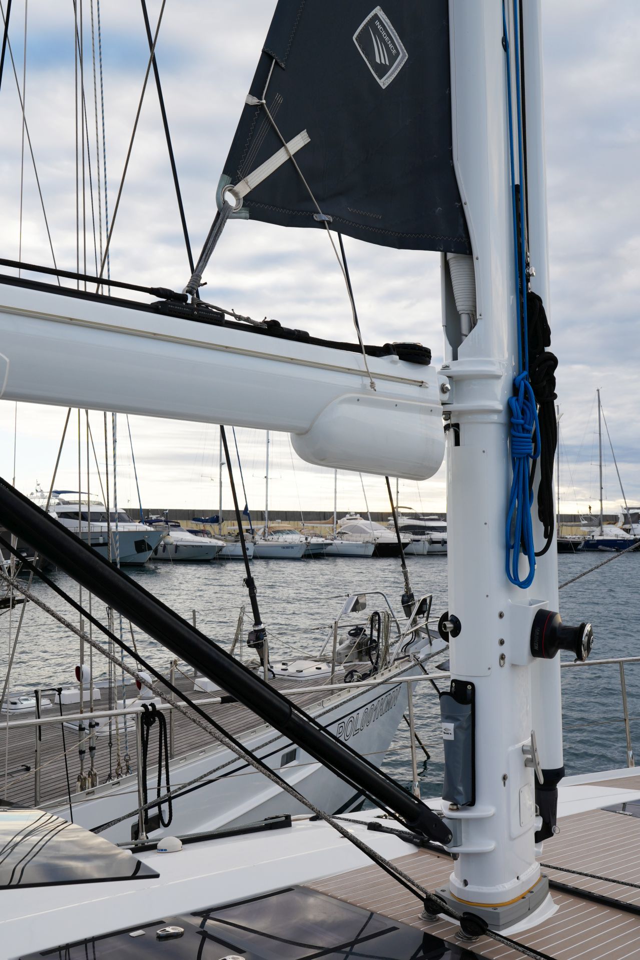 - Weiß lackierter Spinnakerbaum (am Mast gestaut)