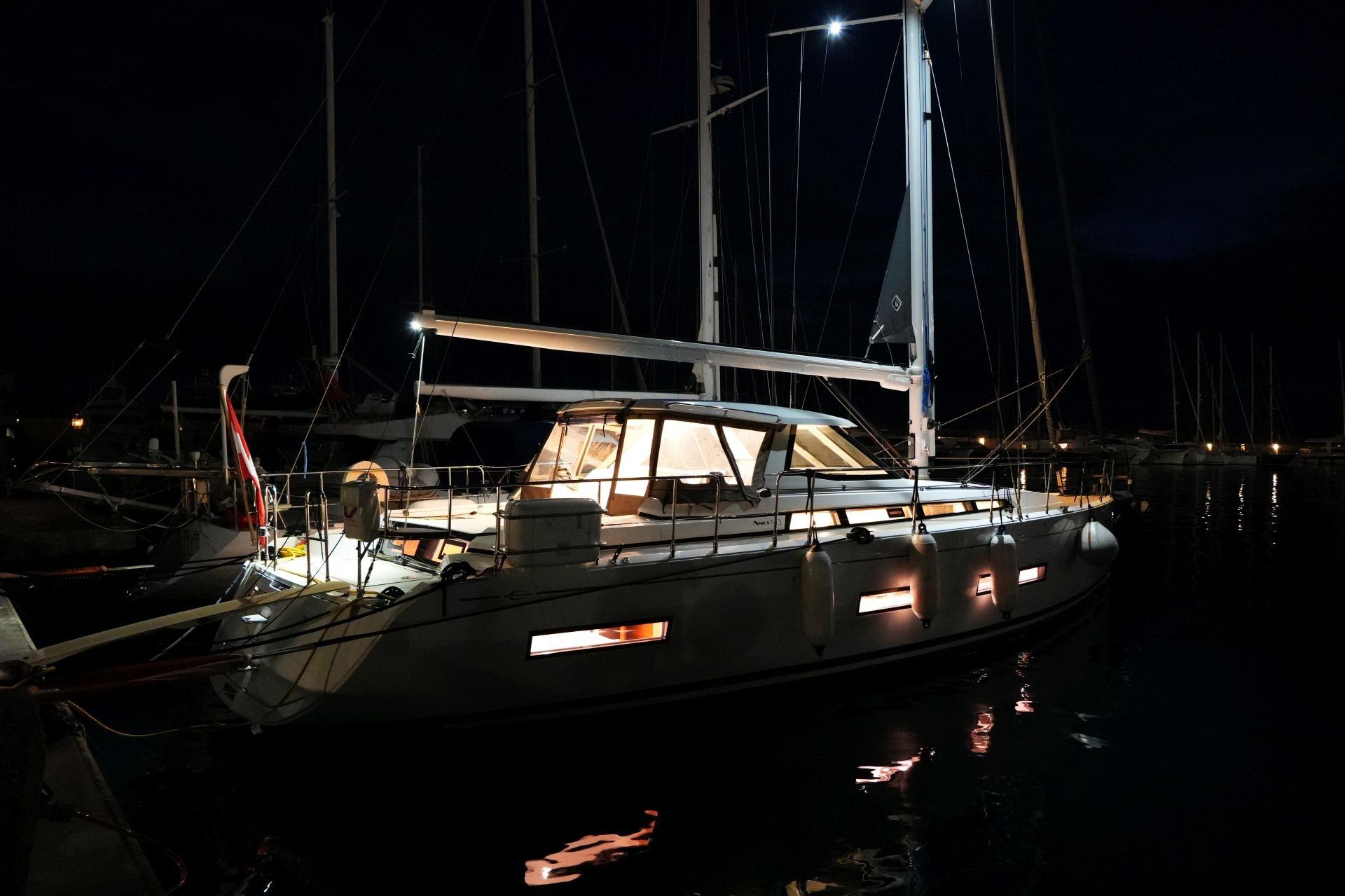 Junge, gepflegte und wenig genutzte Eigneryacht aus erster Hand. Umfangreiche Spezifikation inkl. ausfahrbarem Bug- und Heckstrahlruder, Dieselgenerator 8 KW, Watermaker, Klimaanlage und Dieselheizung, Waschtrockner, elektrischen Winschen usw. Dank elektrischer Genuarollanlage, Selbstwendefock mit elektrischer Rollanlage und elektrischem Rollgroß inkl. elektrischem Unterliekstrecker ist diese AMEL 50 absolut einhandtauglich. Komplette Navigationselektronik mit Kartenplotter, Radar, Autopilot, AIS-Transponder und UKW-Sprechfunk. Moderner, exklusiver Ausbau in seidenmatt lackierter Amerikanischer Walnuß mit weiß bespannten Paneelen, hellen laminierten Bodenbrettern und zahlreichen Lederapplikationen. Die AMEL 50 wurde erst im Frühjahr 2024 in Betrieb genommen, nur wenig gesegelt und befindet sich in einem praktisch neuwertigen Zustand. Sie liegt segelfertig in Italien an der Ligurischen Küste und kann dort nach Absprache besichtigt werden.