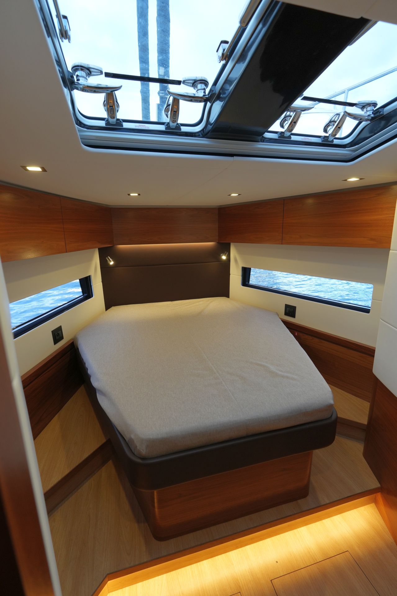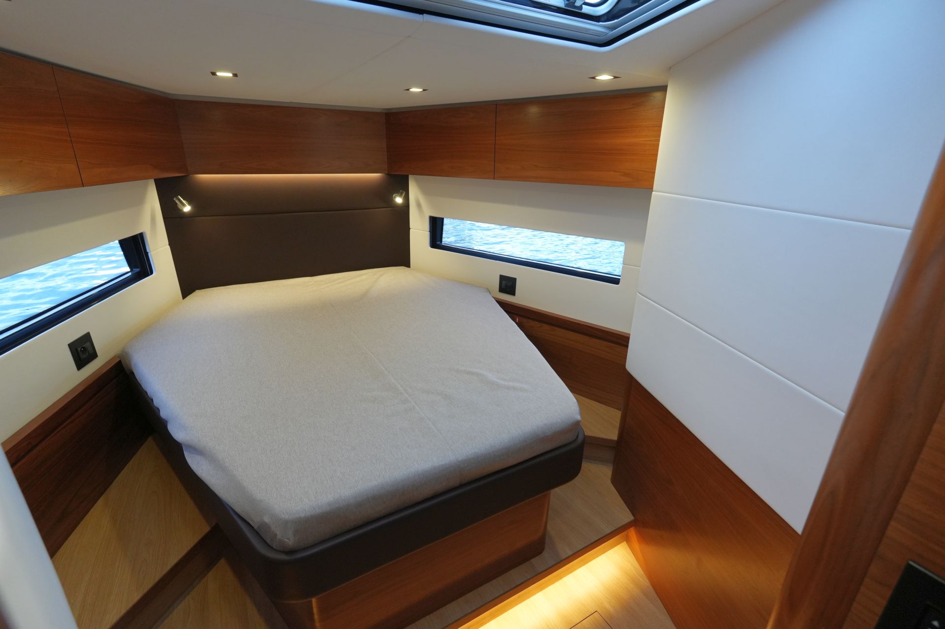 - Gästekabine im Vorschiff mit freistehender Doppelkoje
