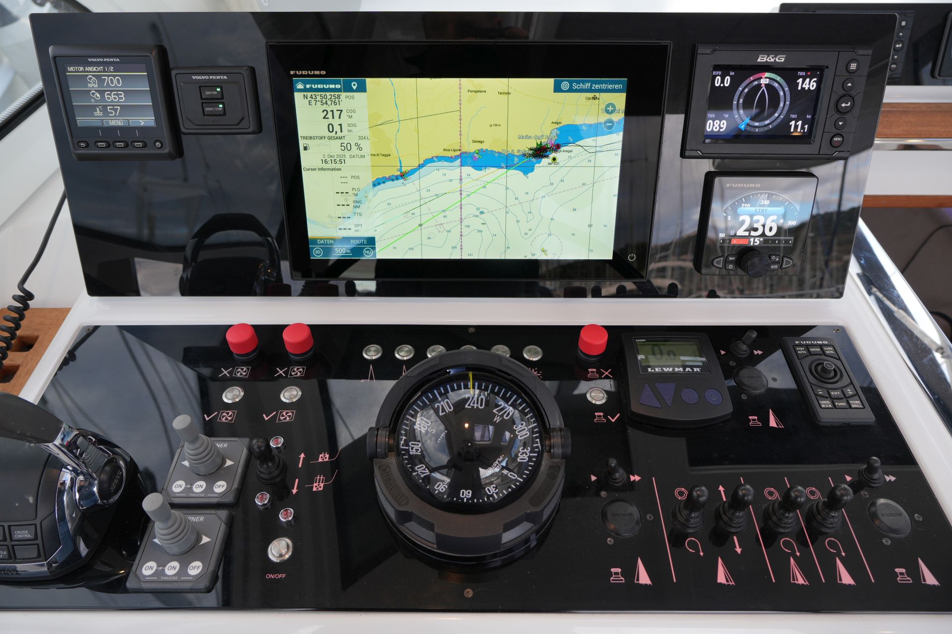 - 2 x B&G H5000 GFD-Display im Cockpit, 1 x H5000 GFD-Display am Kartentisch und 1 x H5000 GFD-Display in der Eignerkabine