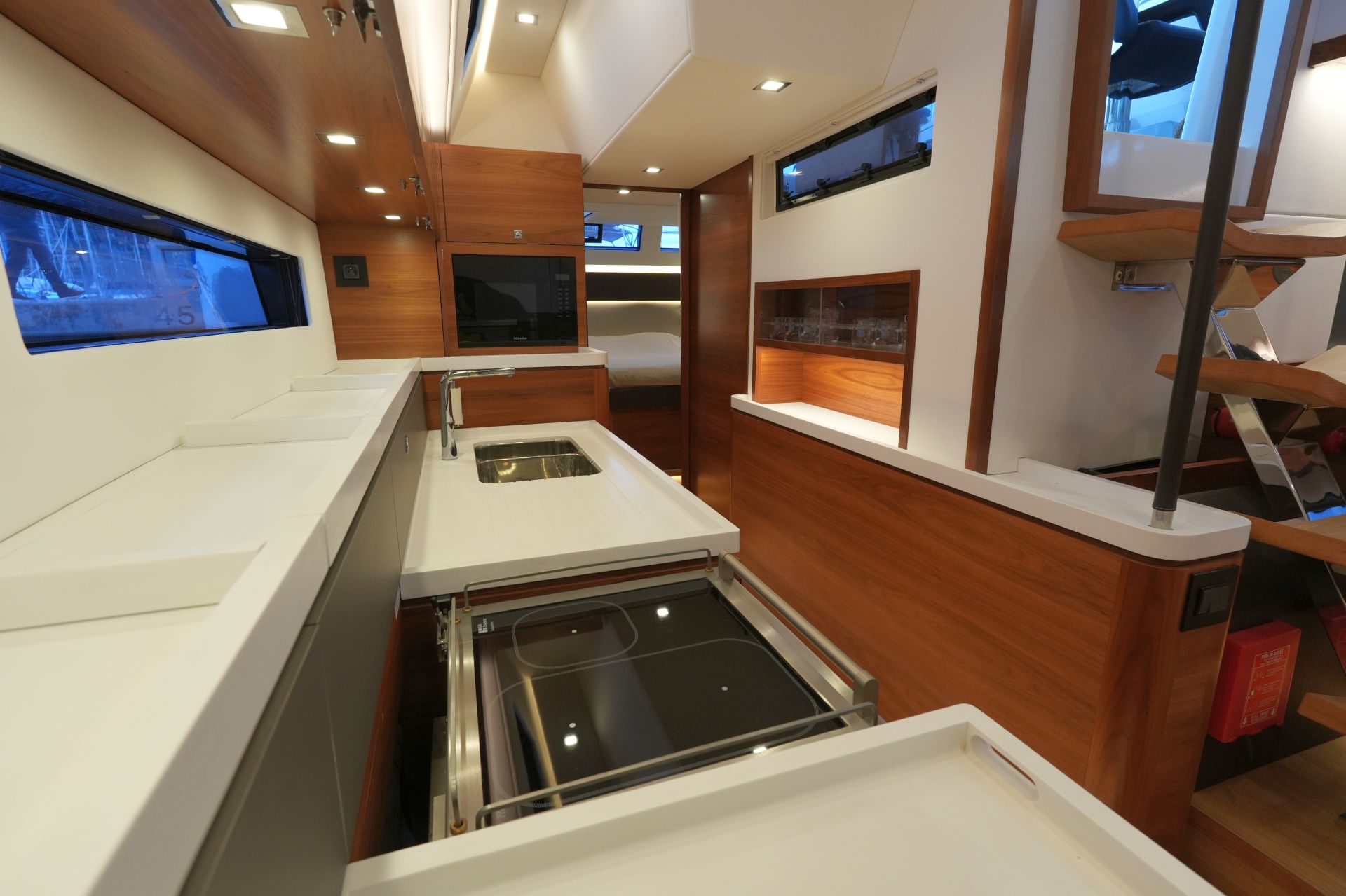 - Zusätzliche, ausziehbare Sicherheitsleiter im Heckspiegel und zwei Stufen außen auf der Badeplattform