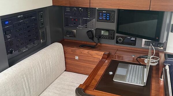 Hervorragend zur weltweiten Fahrt ausgestattete Eigneryacht (erst im Juli 2020 geliefert) aus erster Hand. Die Spezifikation dieser AMEL 50 läßt keine Wünsche offen: Dieselgenerator, Bugstrahlruder, elektrische Winschen, Solarpanele, elektrische Davits mit Dinghy, Klimaanlage und Dieselheizung, Watermaker usw. Ausbau in seidenmatt lackierter Amerikanischer Walnuß mit weiß bespannten Paneelen, hellen laminierten Bodenbrettern und zahlreichen Lederapplikationen. Der Fragepreis ist inklusive Mehrwertsteuer angegeben, die Steuer kann aber bei Export in ein Drittland oder bei gewerblichem Erwerb ausgewiesen werden.