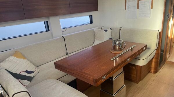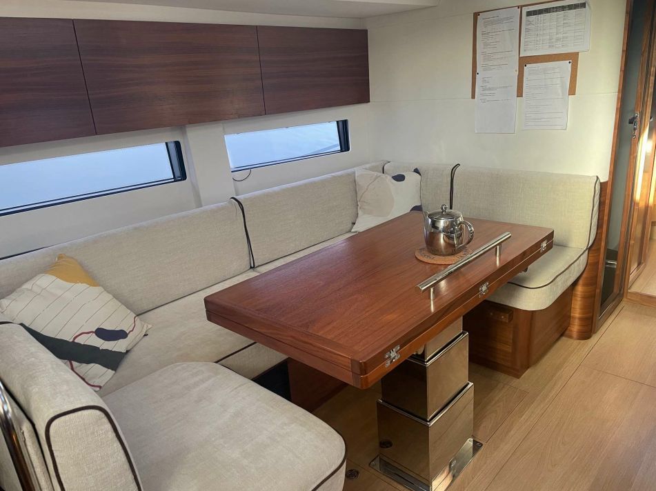 • Großzügiger, geräumiger Salon mit U-förmiger Sitzgruppe an Backbord