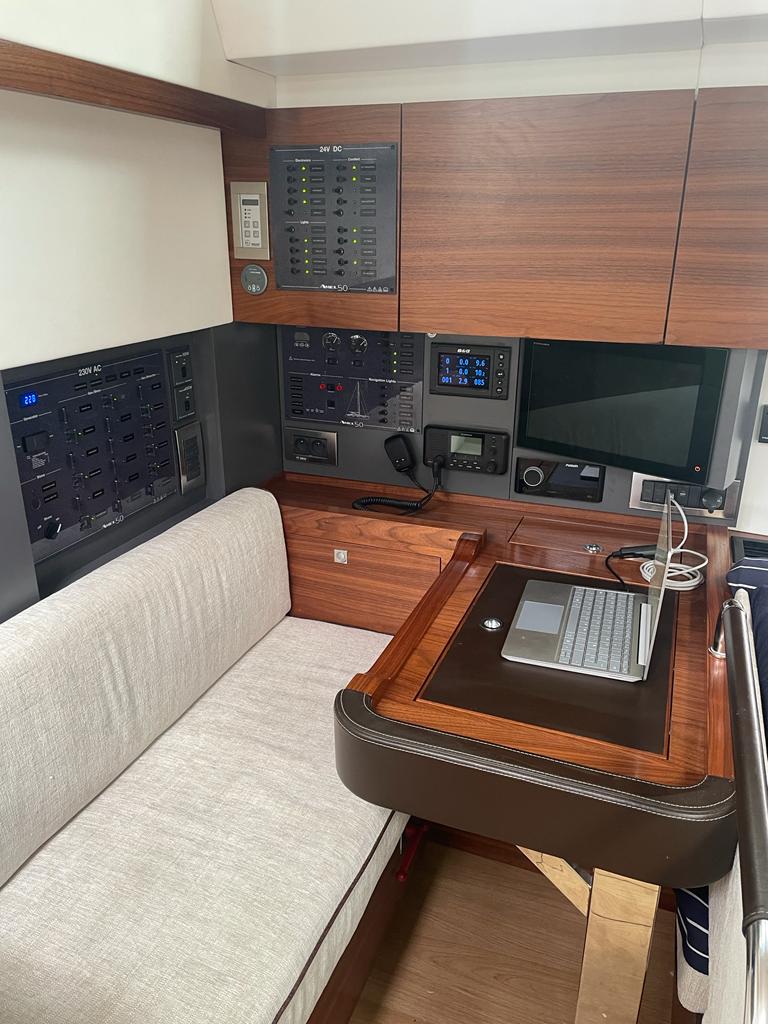 • Kartentisch in Fahrtrichtung eingebaut an Backbord achtern