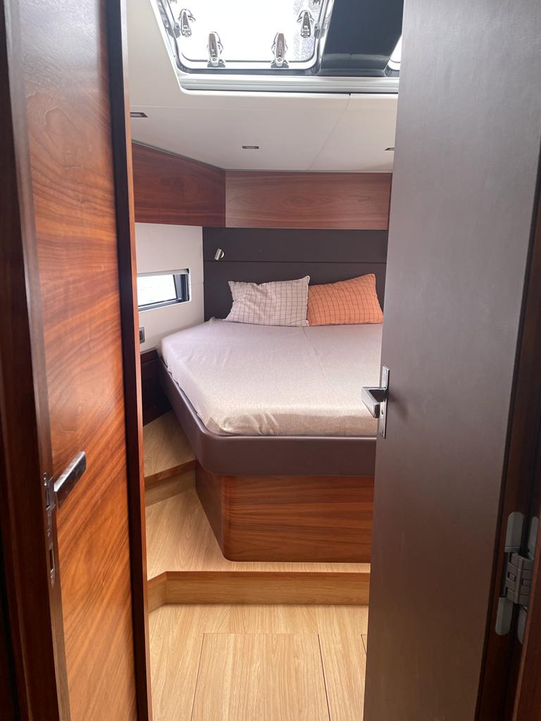 • Gästekabine im Vorschiff mit frei stehender Doppelkoje