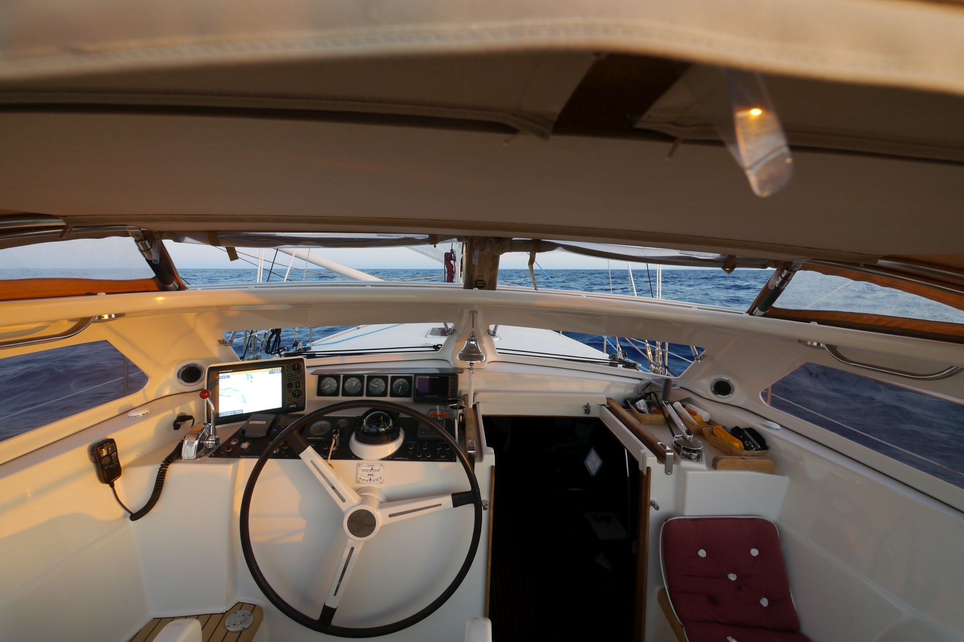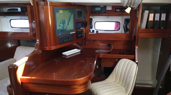 - Kartentisch in Fahrtrichtung eingebaut an Steuerbord achtern