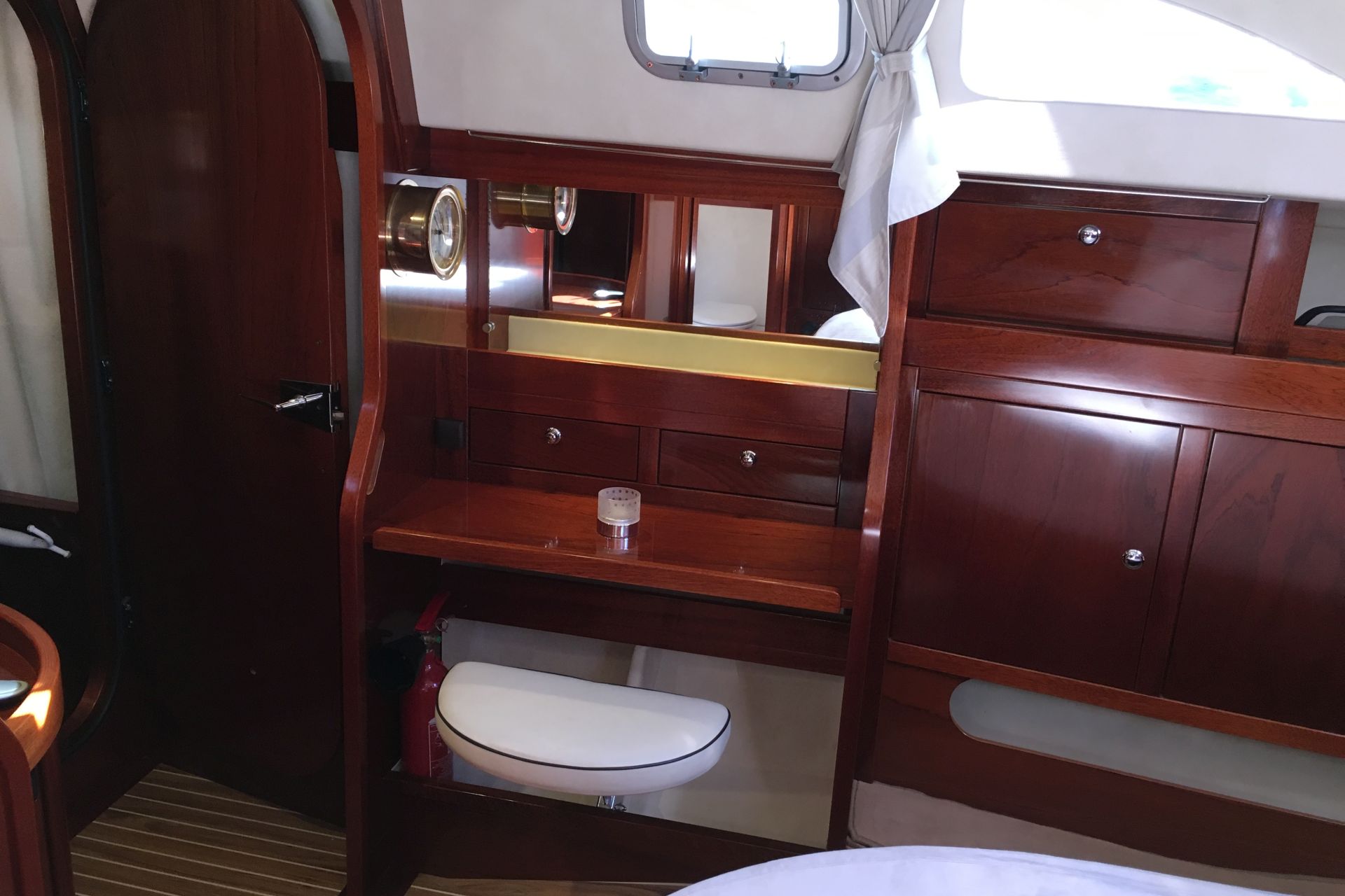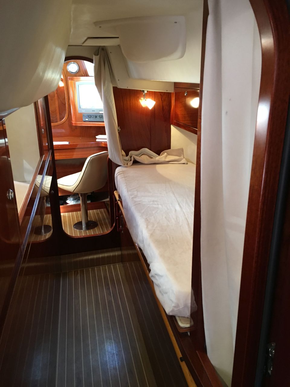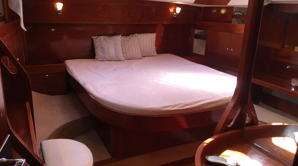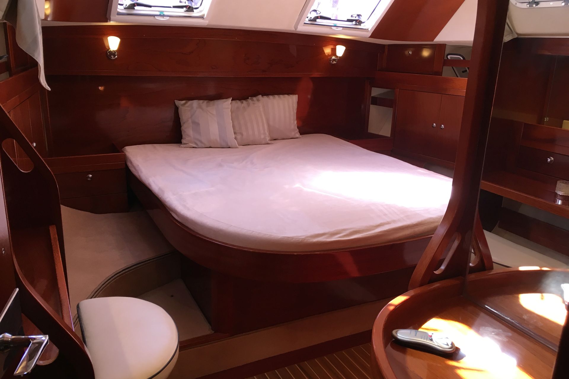 - Gerämige Eignerkabine achtern mit großer, freistehender Doppelkoje