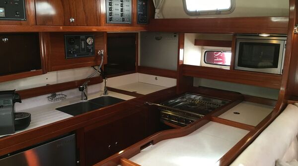 Blauwasser-Cruiser aus dem Jahr 2009Luxuriöser, seegängiger und für Langfahrt ausgestatteter Blauwasser-Cruiser aus Frankreich. Ihr ausgereiftes Konzept, der hohe Standard des Bootsbaus der Werft und die Fokussierung auf Sicherheit, Zuverlässigkeit und Komfort machen AMEL-Segelyachten seit Jahrzehnten zu erstklassigen Fahrtenyachten für lange Strecken und man trifft sie auf den entlegensten Revieren der Welt. Solide, verwindungsteife Bauweise mit anlaminierten (teilweise wasserdichten) Schotten und laminierter Rumpf/Deck-Verbindung. Geschütztes, tiefes Centercockpit mit fester Windschutzscheibe und Sprayhood. Geräumige Eignerkabine im Heck über die gesamte Schiffsbreite und gut zugänglicher, wartungsfreundlicher Motorraum.