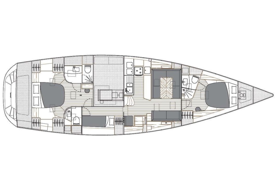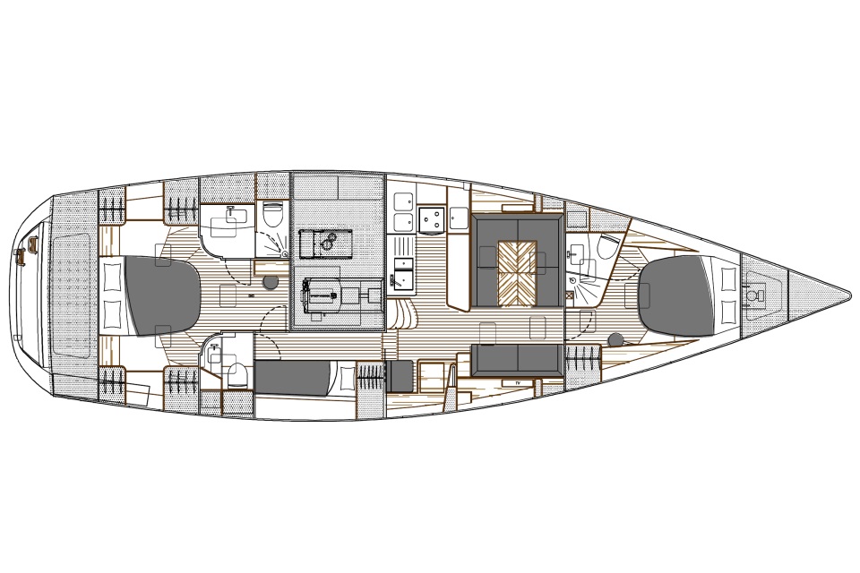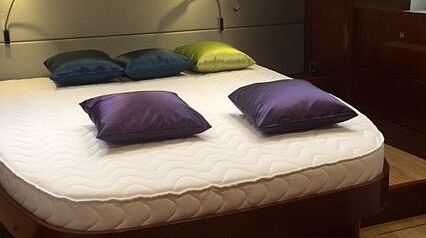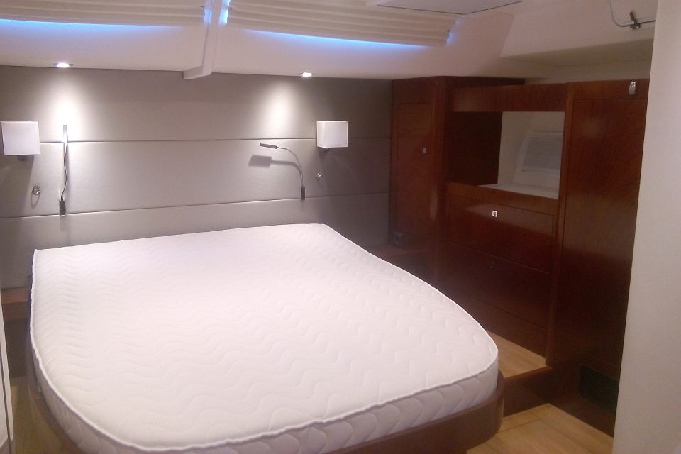 - Eignerkabine im Heck mit Inselbett, reichlich Stauraum in Schränken, Fächern und Regalen