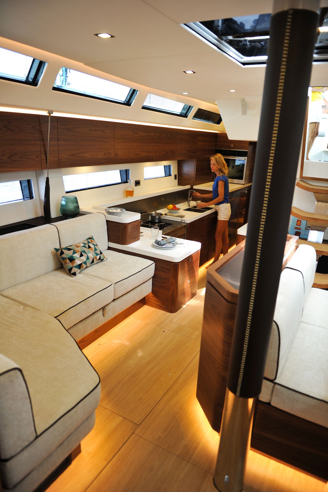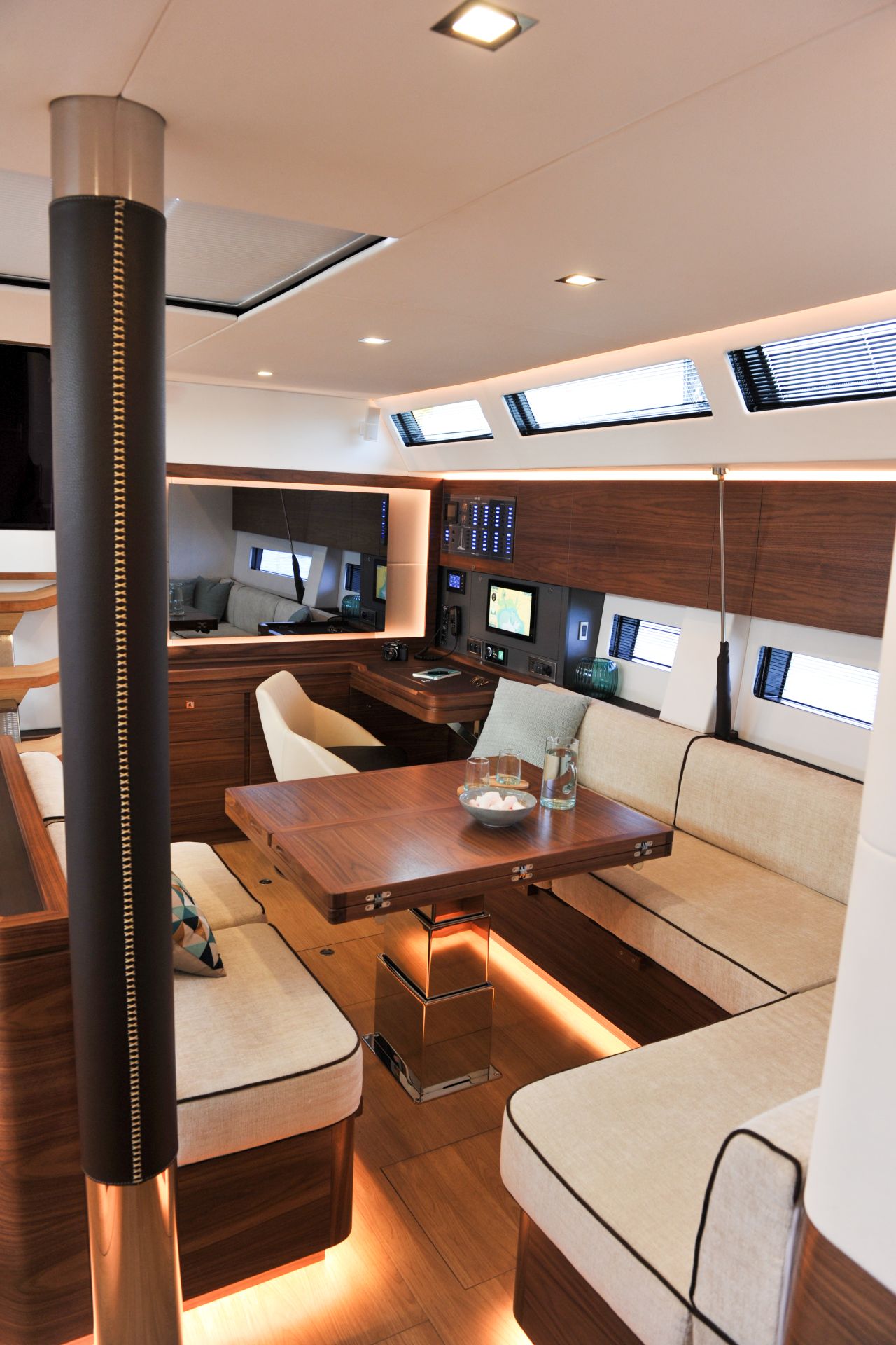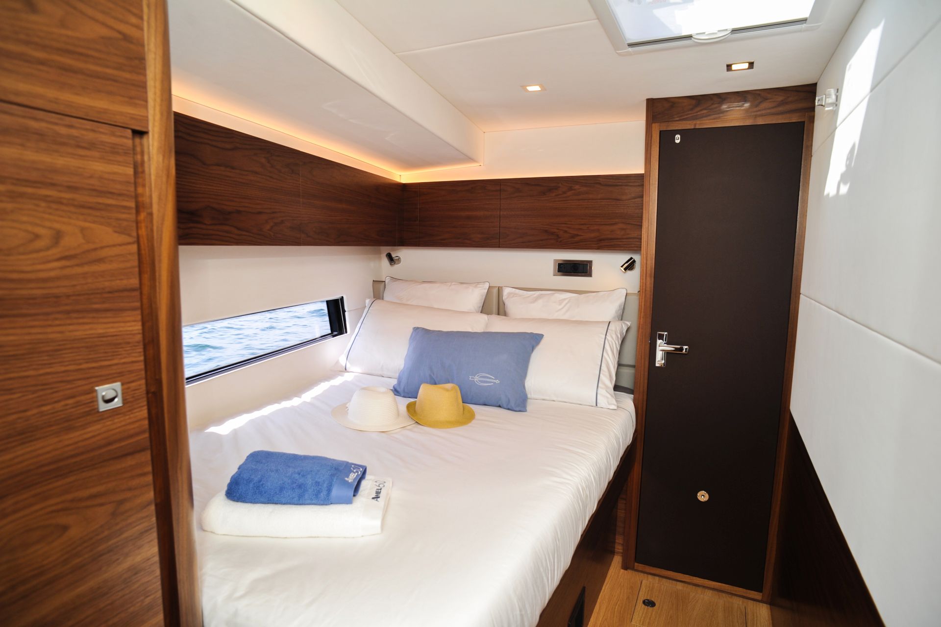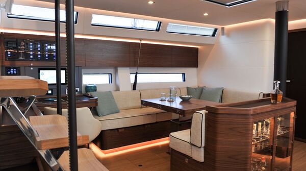 Luxuriöser, seegängiger und für Langfahrt ausgestatteter Blauwasser-Cruiser aus Frankreich. Ihr ausgereiftes Konzept, der hohe Standard des Bootsbaus der Werft und die Fokussierung auf Sicherheit, Zuverlässigkeit und Komfort machen AMEL-Segelyachten seit Jahrzehnten zu erstklassigen Fahrtenyachten für lange Strecken und man trifft sie auf den entlegensten Revieren der Welt. Sehr steife, verwindungsfreie Bauweise mit anlaminierten Schotten unter Verwendung von Vinylester-Harzen. Tiefes, gut geschütztes Cockpit mit festem Doghouse über dem Steuerstand. Die AMEL 60 bietet in einer luxuriösen, geräumigen Eignerkabine im Heck über die gesamte Schiffsbreite, zwei symmetrischen, großzügigen Gästekabinen im Vorschiff sowie drei Nasszellen reichlich Platz und Lebensraum für bis zu sechs Personen. Helles modernes Interieur und viel Licht und Luft unter Deck durch zahlreiche, große Rumpf- und Aufbaufenster, acht Decksluken und sieben Bullaugen.