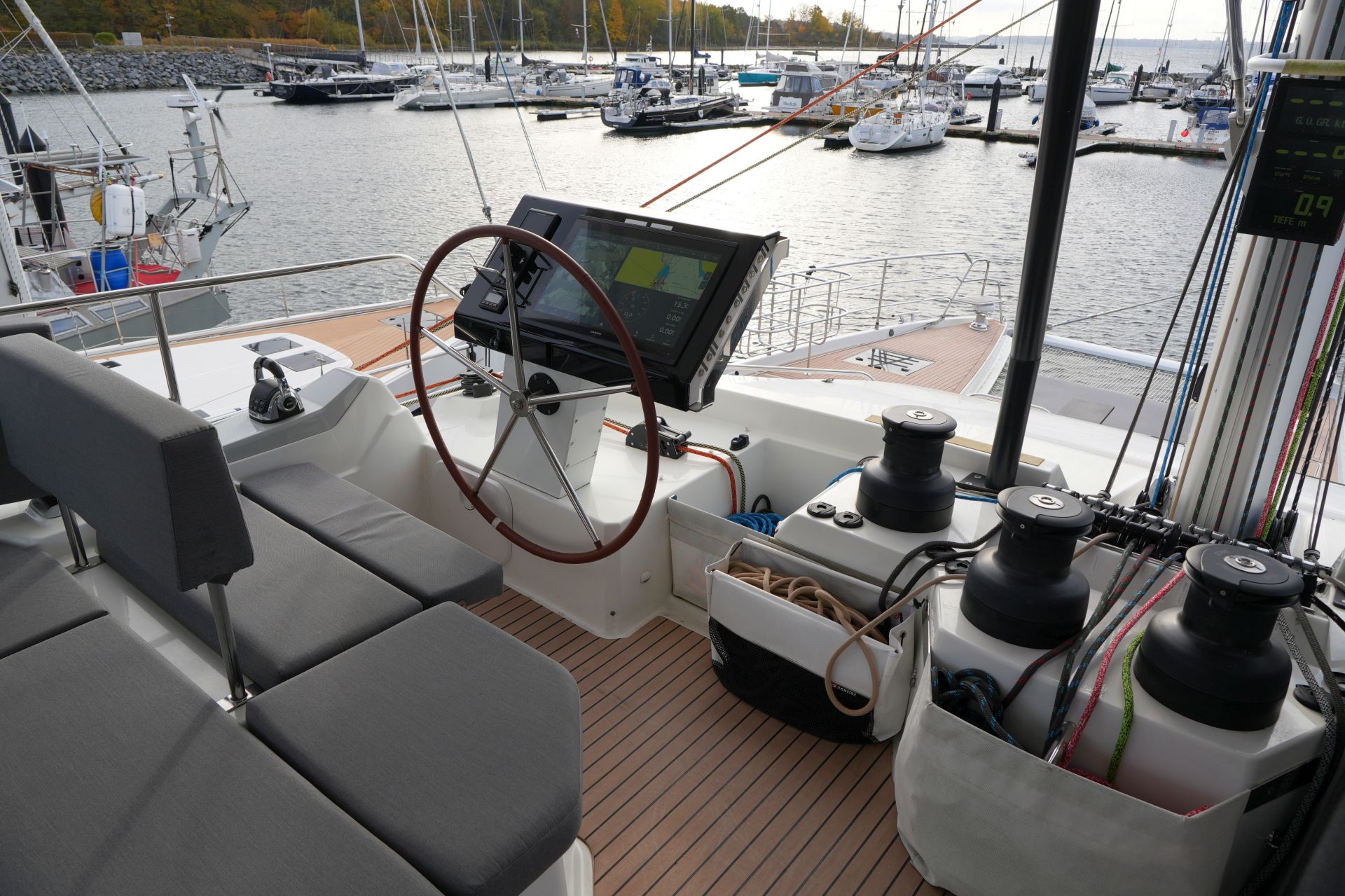 Hier steht eine junge Fountaine Pajot Alegria 67 in der "Maestro"-Version mit großer Pantry oben im Deckshaus zum Verkauf. Die Yacht wurde seit ihrer Lieferung ausschließlich privat auf der Ostsee genutzt und ist über die Maßen umfangreich ausgerüstet. Zwei Bugstrahlruder und zwei Heckstrahlruder, ein Motor-Upgrade auf 2 x VOLVO PENTA 150 PS mit Schaltungen an beiden Steuerständen und am Kartentisch sowie eine Dockmate-Funkfernbedienung erleichtern das Manövrieren mit kleiner Crew. Im Segelbetrieb unterstützen elektrische Rollanlagen für beide Vorsegel sowie elektrische Winschen die Mannschaft. Auch bei der Komfortausstattung bleiben keine Wünsche offen: Klimaanlage, Dieselheizung, zwei 12 KW Dieselgeneratoren, eine große Lithium-Servicebatteriebank, Watermaker, Satelliten-TV usw. sind an Bord. Auch die große, hydraulisch absenkbare Heckplattform für das Dinghy und eine hydraulische Gangway fehlen nicht. Die Fountaine Pajot Alegria 67 liegt an der deutschen Ostseeküste und kann nach Absprache besichtigt werden.
