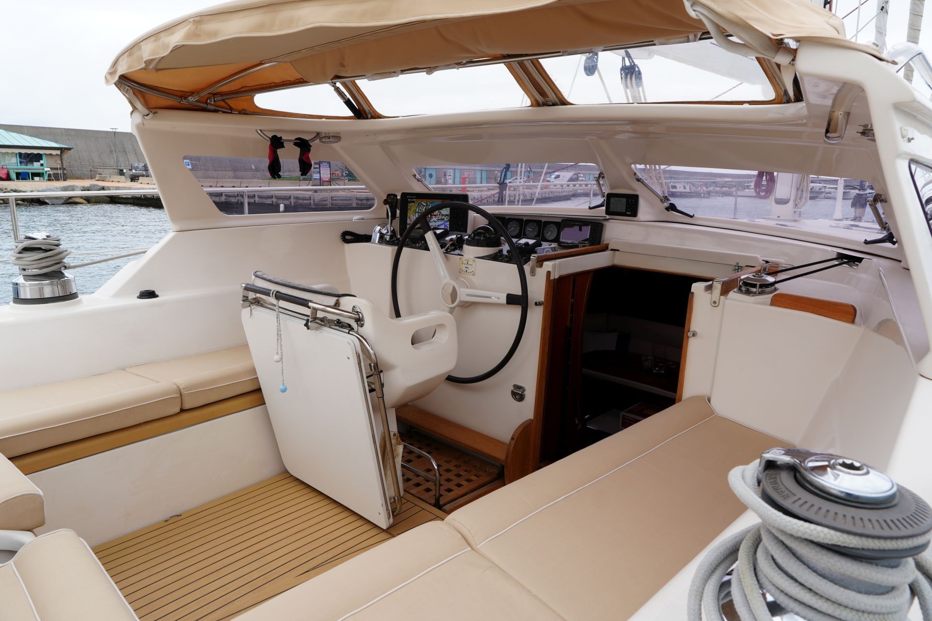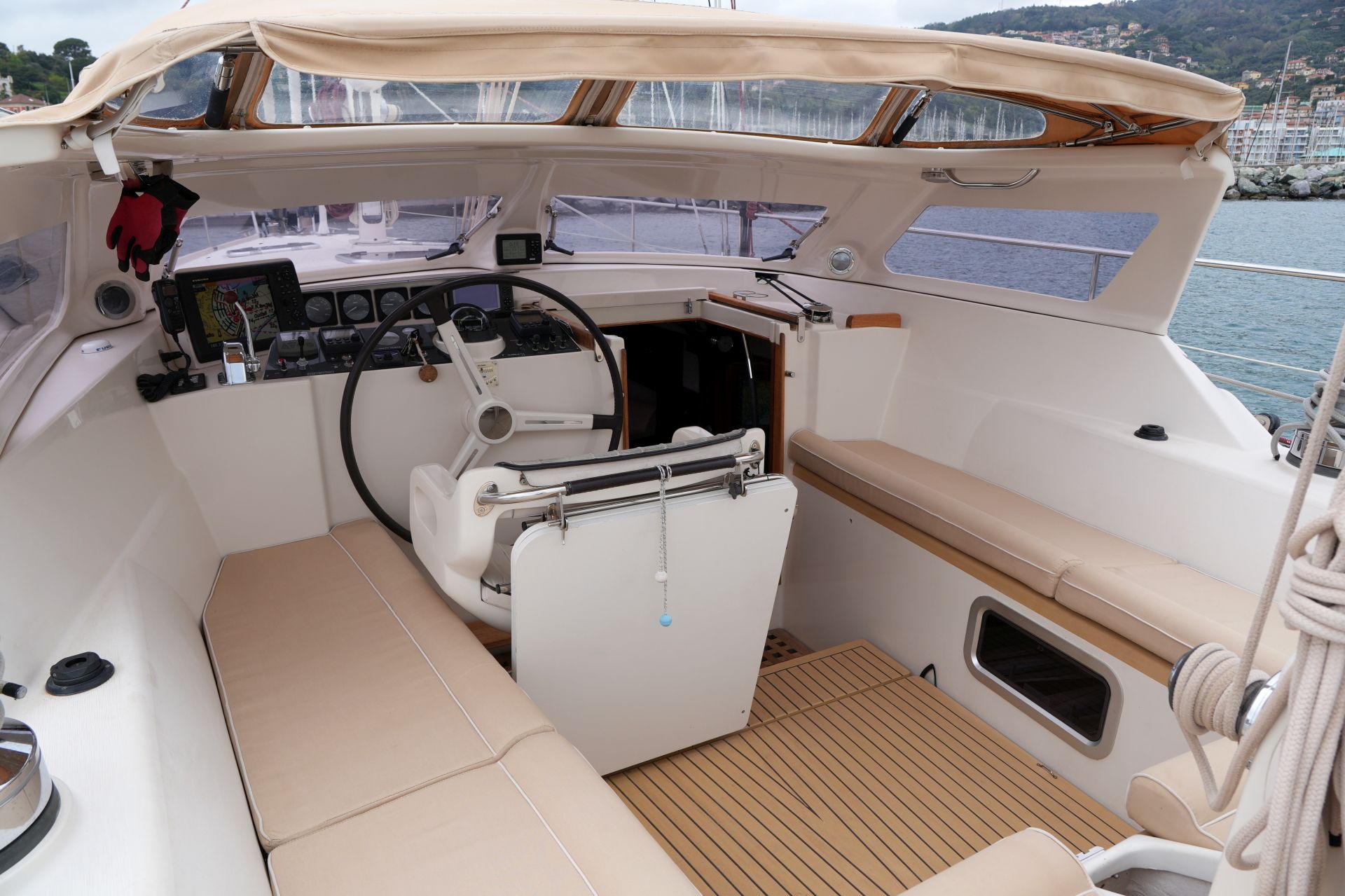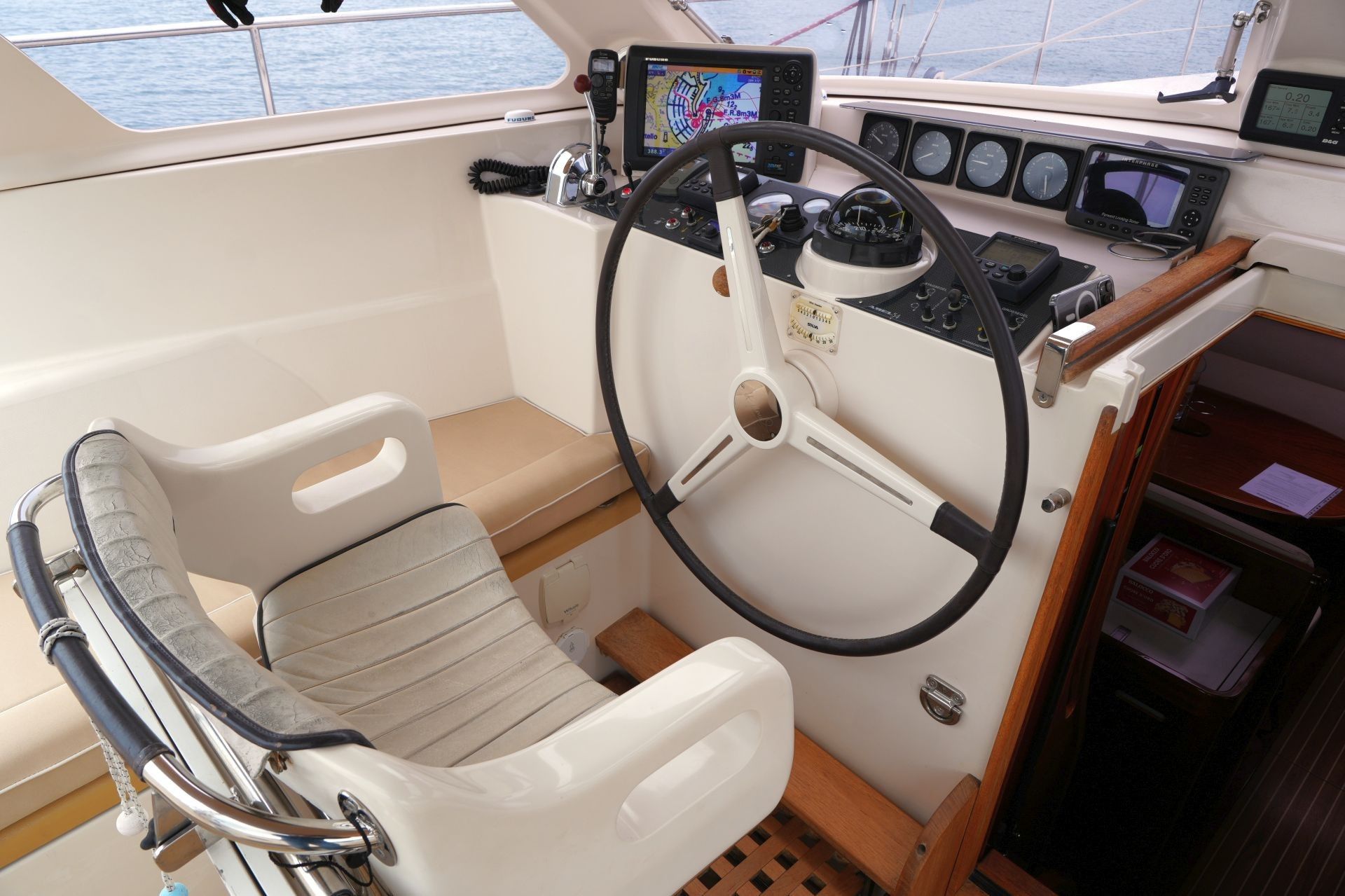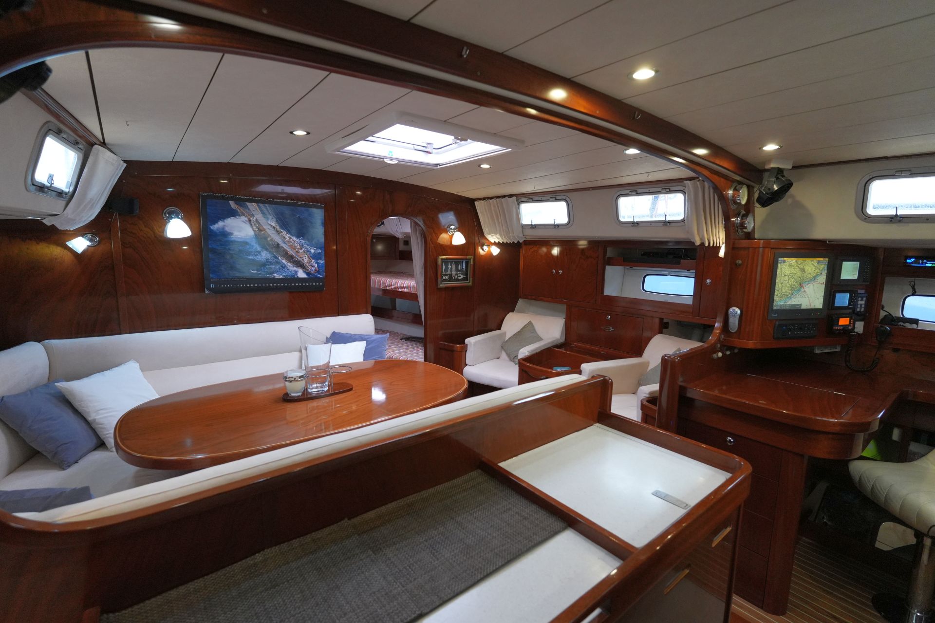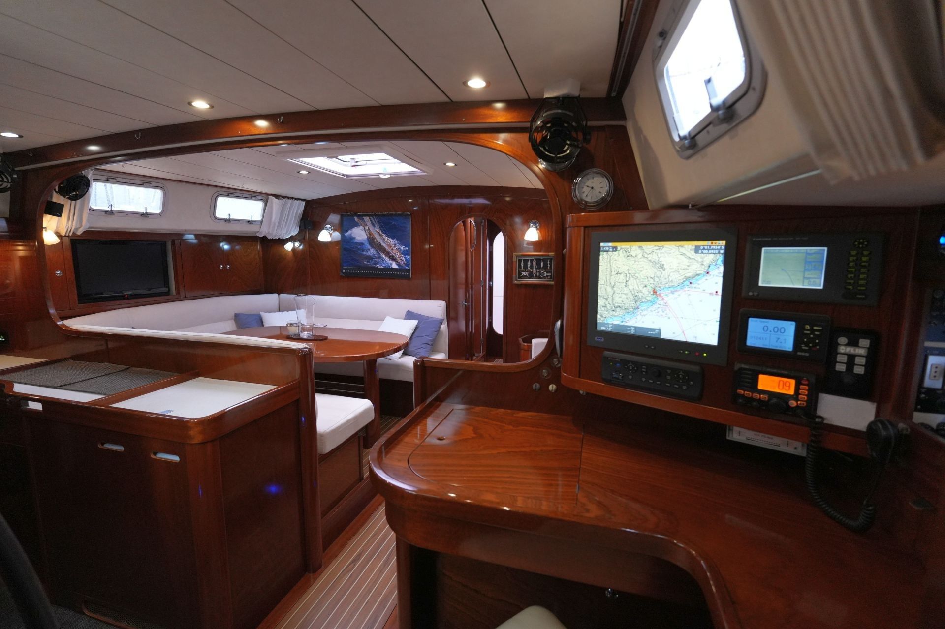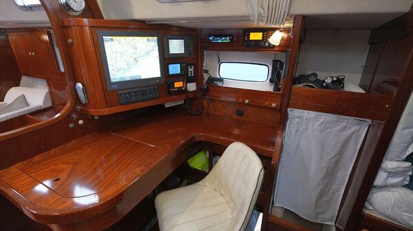 - Kartentisch in Fahrtrichtung eingebaut an Steuerbord achtern