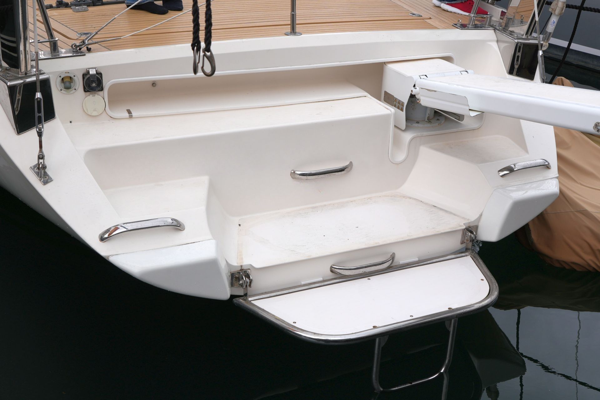 - Integrierte Teaksitze im Heckkorb