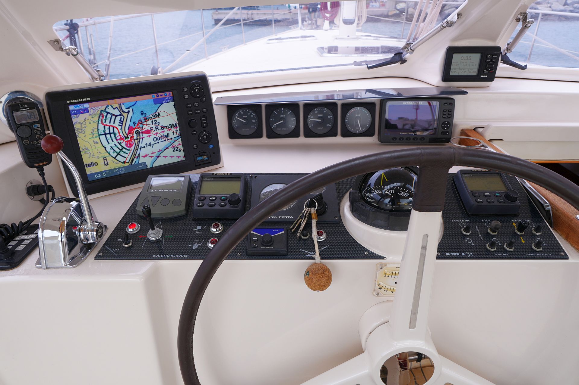 - 4 x analoge B&G Instrumenten-Displays am Steuerstand