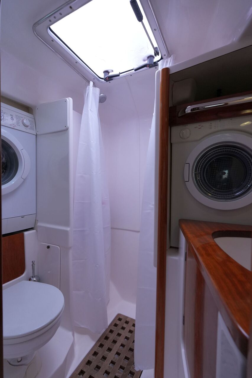 - Zweite Nasszelle in Vorpiek mit Waschtisch, elektrischer Toilette und separater Duschkabine