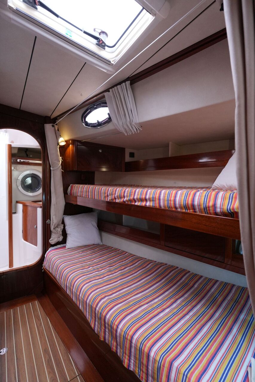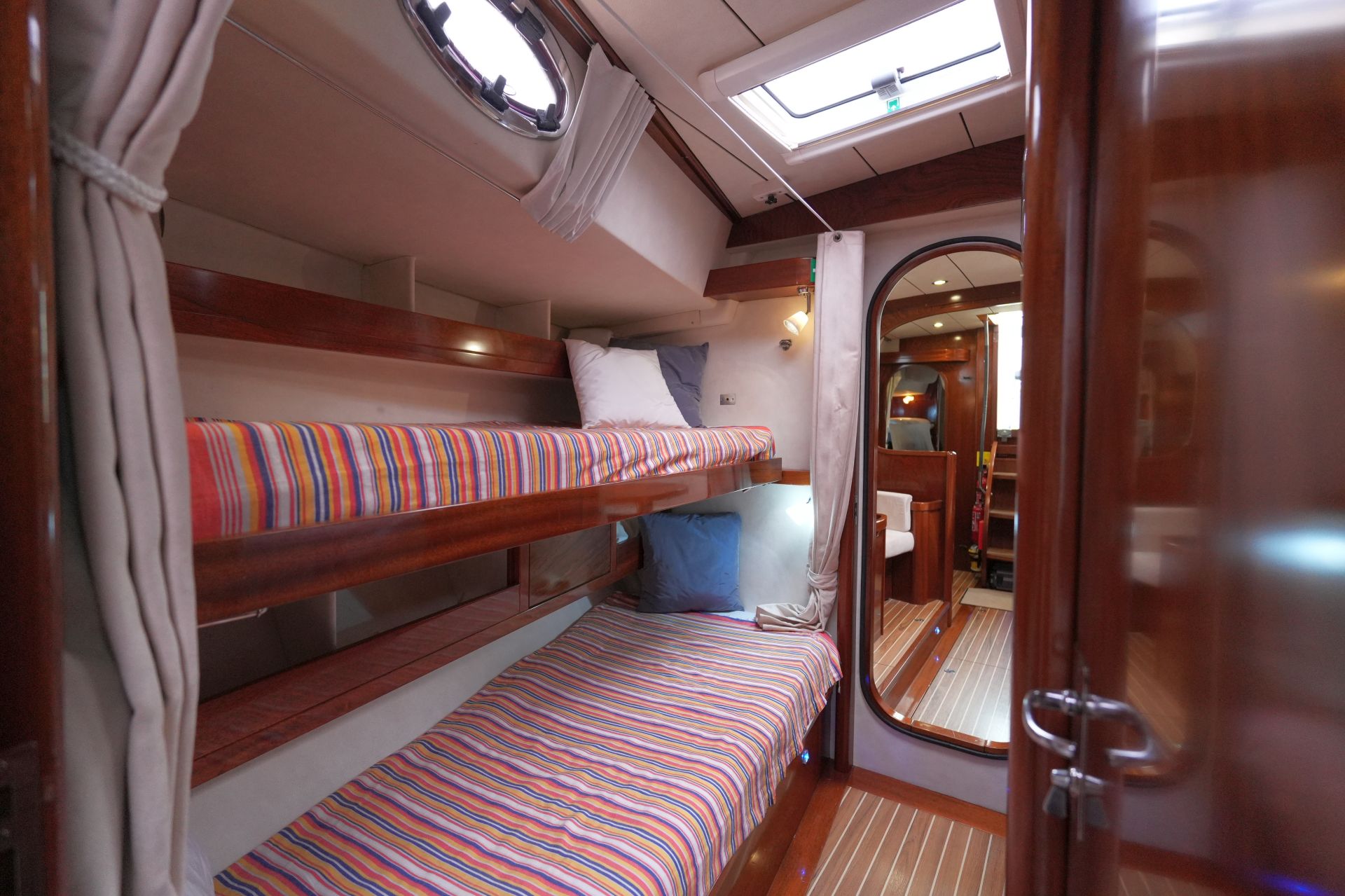 - Durchgangskabine mit zwei Stockbetten vorn an Steuerbord
