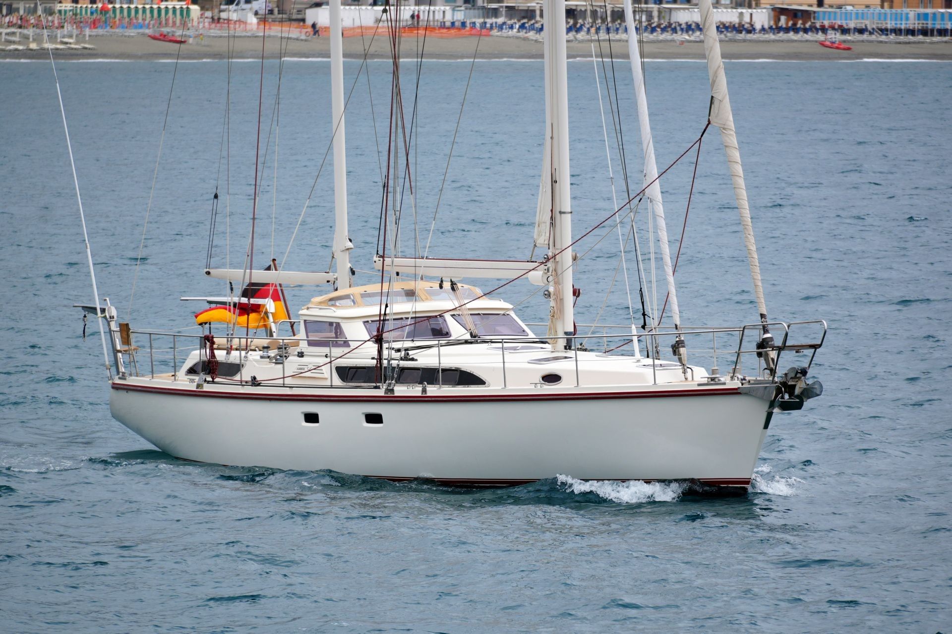 Hier steht die AMEL 54 Baunummer #149 aus dem Jahr 2010 zum Verkauf. Gepflegte und laufend technisch gewartete Eigneryacht aus erster Hand. Umfangreiche Spezifikation inkl. Dieselgenerator, Watermaker, hydraulischer Gangway, elektrischer SIMPSON Davits inkl. Dinghy, Dieselheizung, zwei Ankerwinden mit doppeltem Ankergeschirr usw. Elektrische Rollanlagen für Genua, Kutterfock und Großsegel sowie elektrische Winschen für Groß- und Genuaschoten ermöglichen ein einfaches, sicheres Handling der Yacht durch eine kleine Crew vom geschützten Cockpit aus. Sehr komplette Navigations- und Kommunikationsausrüstung inkl. zwei unabhängigen Autopiloten, Radar, zwei Plottern, UKW- sowie Kurzwellenfunkgerät, Wärmebildkamera usw. Die AMEL 54 liegt in Norditalien an der Ligurischen Küste und kann dort nach Absprache besichtigt werden.