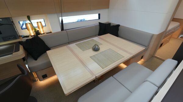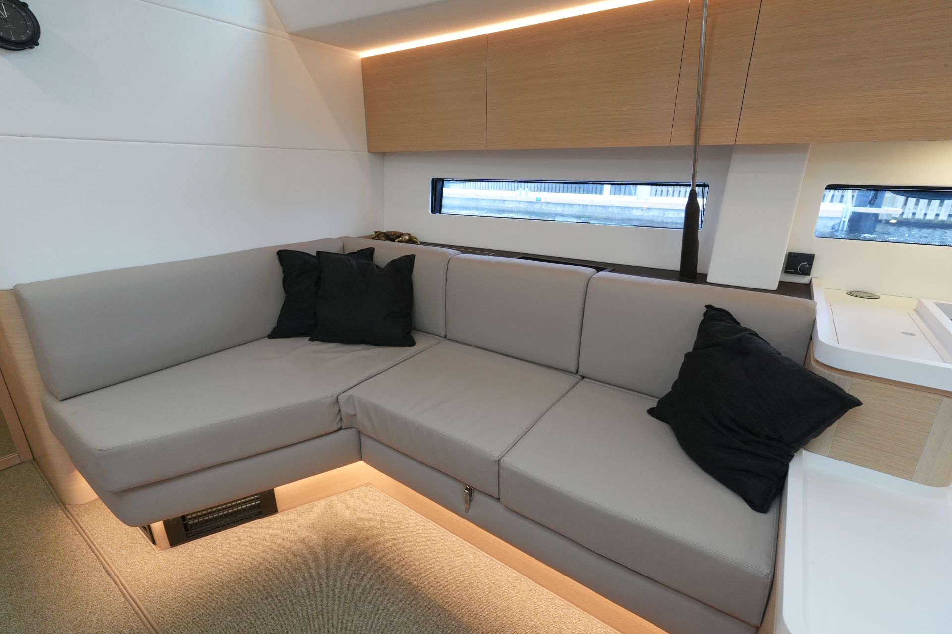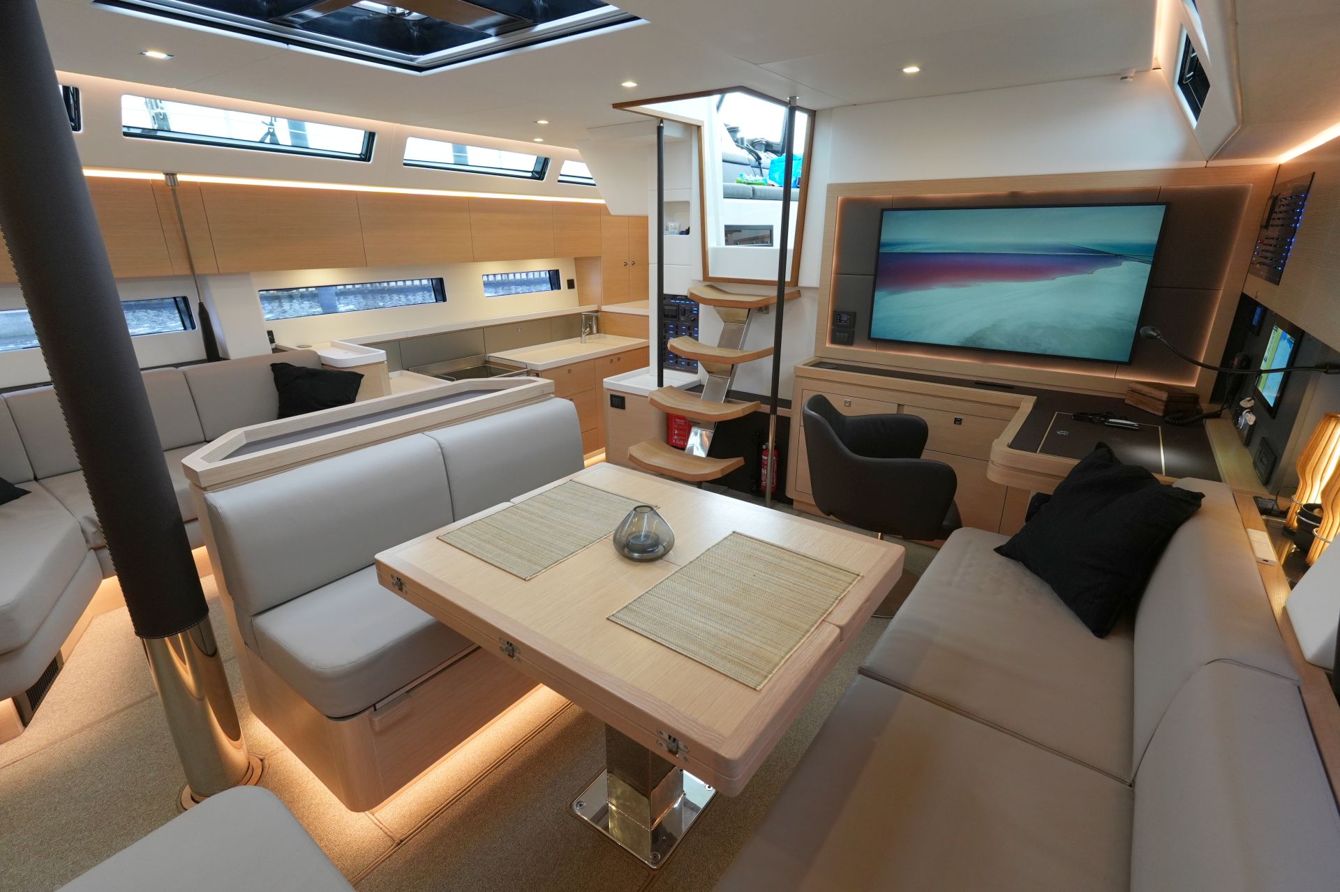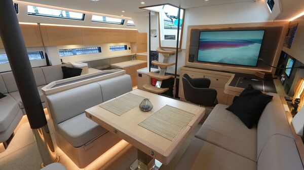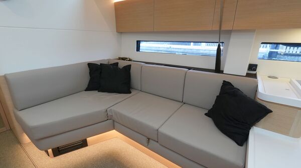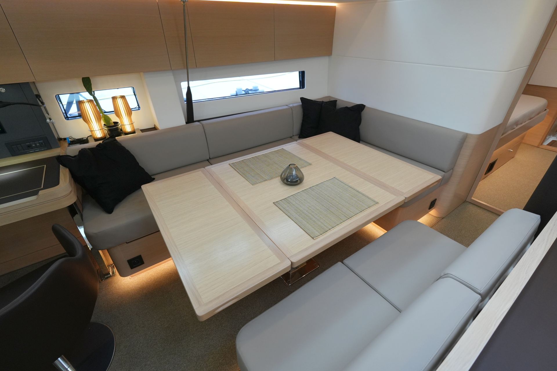 - Großzügiger, geräumiger Salon mit L-förmiger Dinette an Backbord