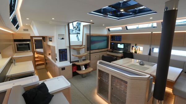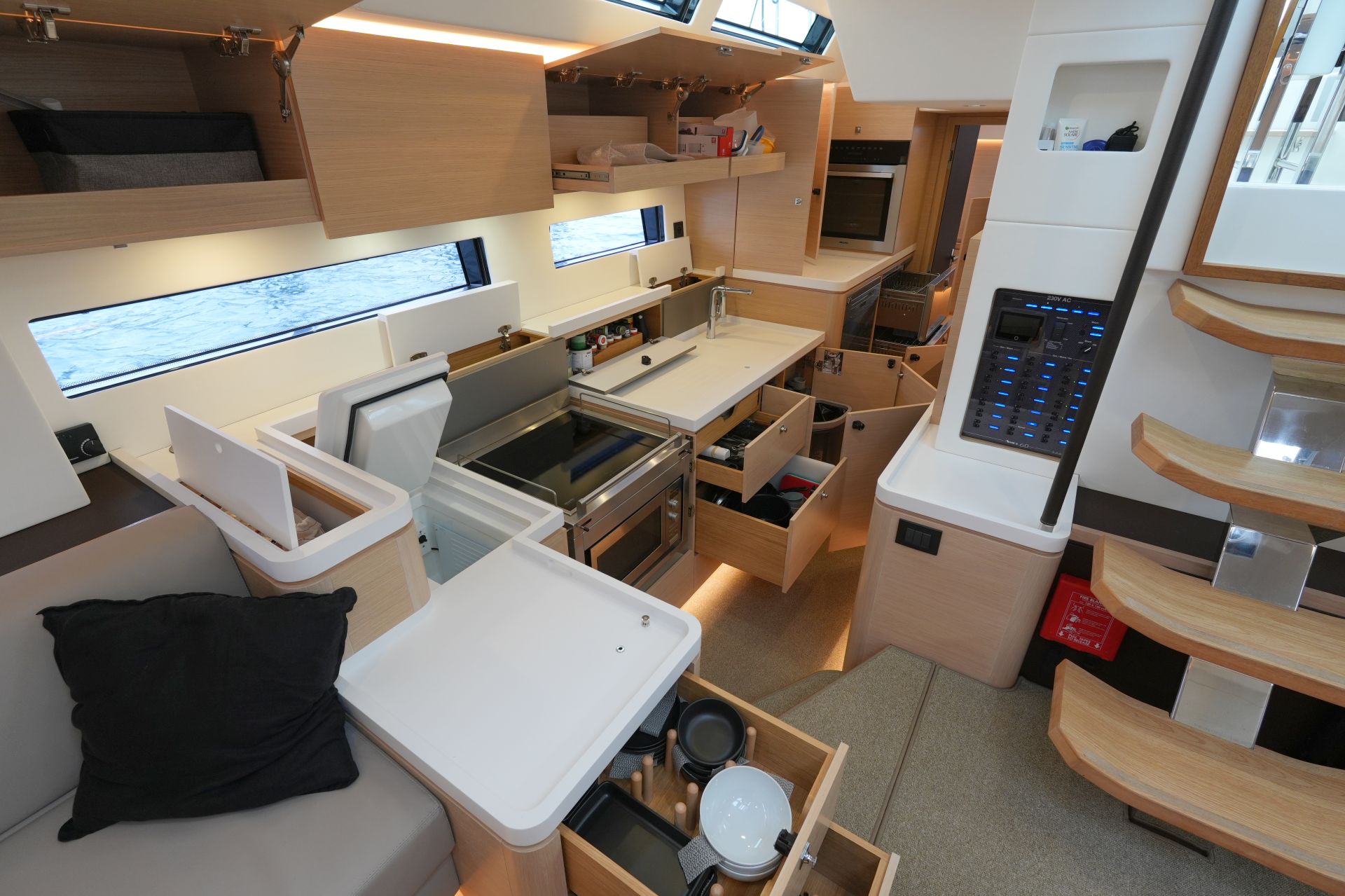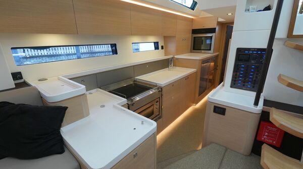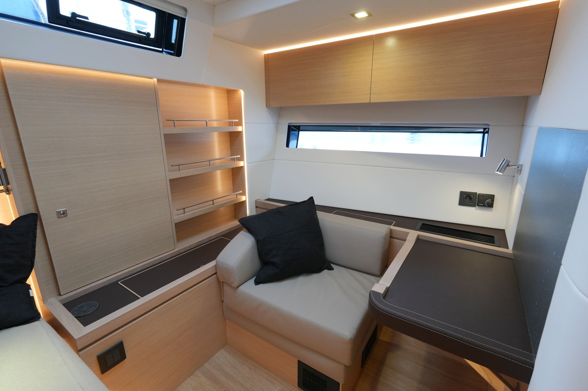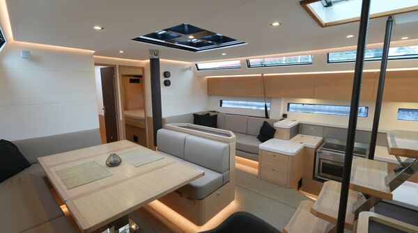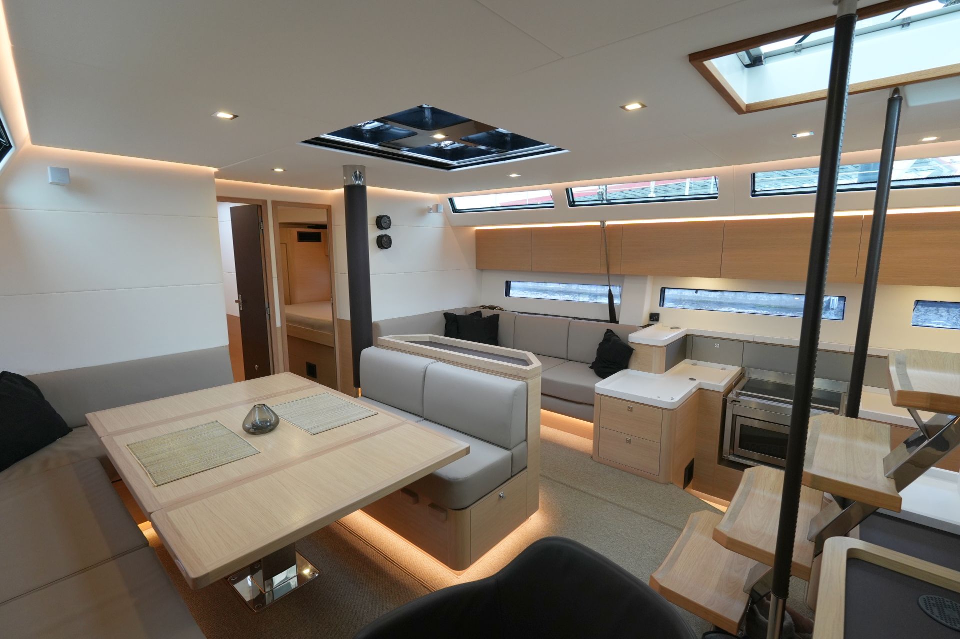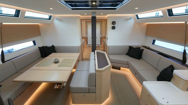 - Großzügiger, geräumiger Salon mit L-förmiger Dinette an Backbord