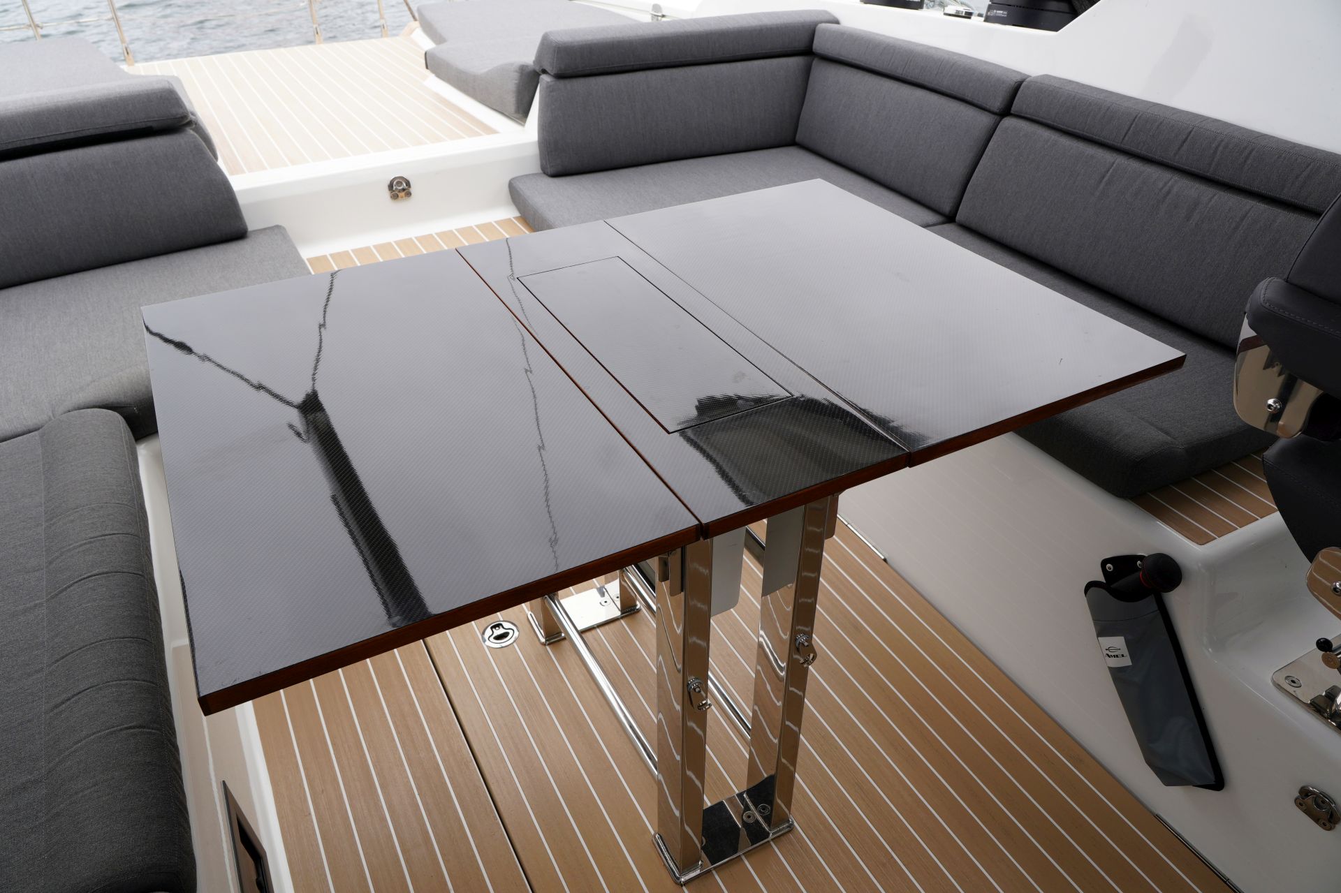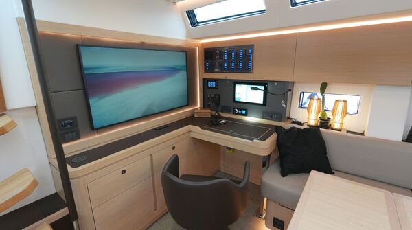 - Kartentisch mit drehbarem Navigatorsitz an Backbord achtern