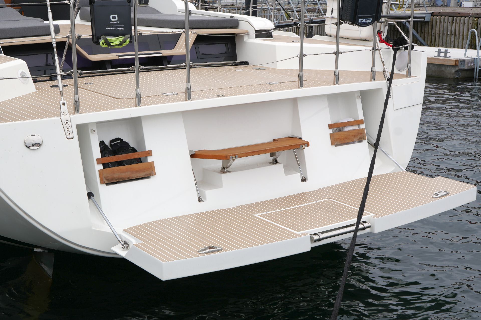 - Große, elektro-hydraulisch klappbare Badeplattform mit Funkfernbedienung und klappbaren Klampen