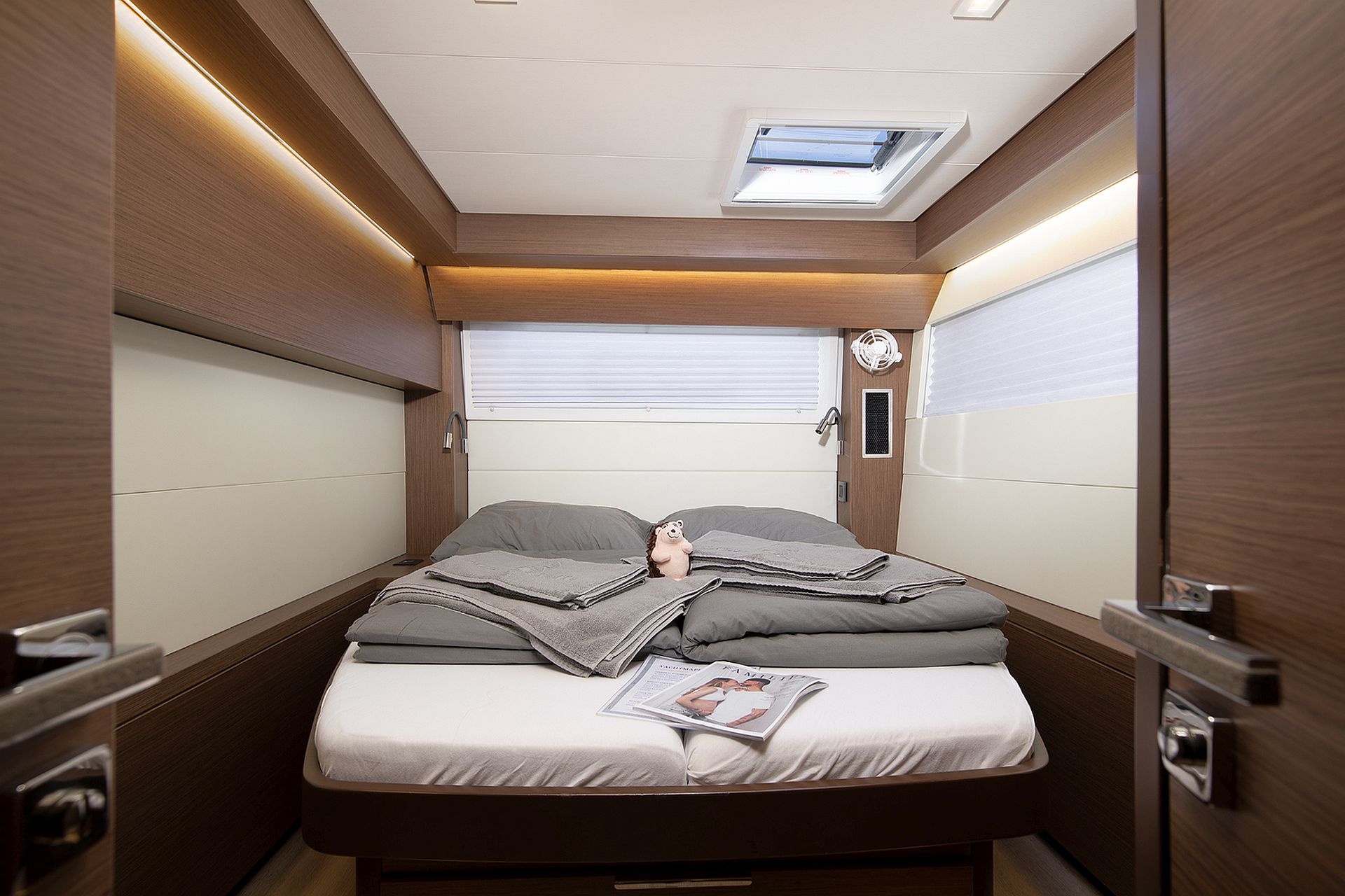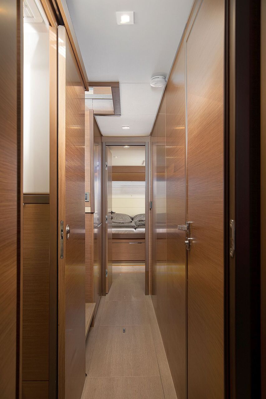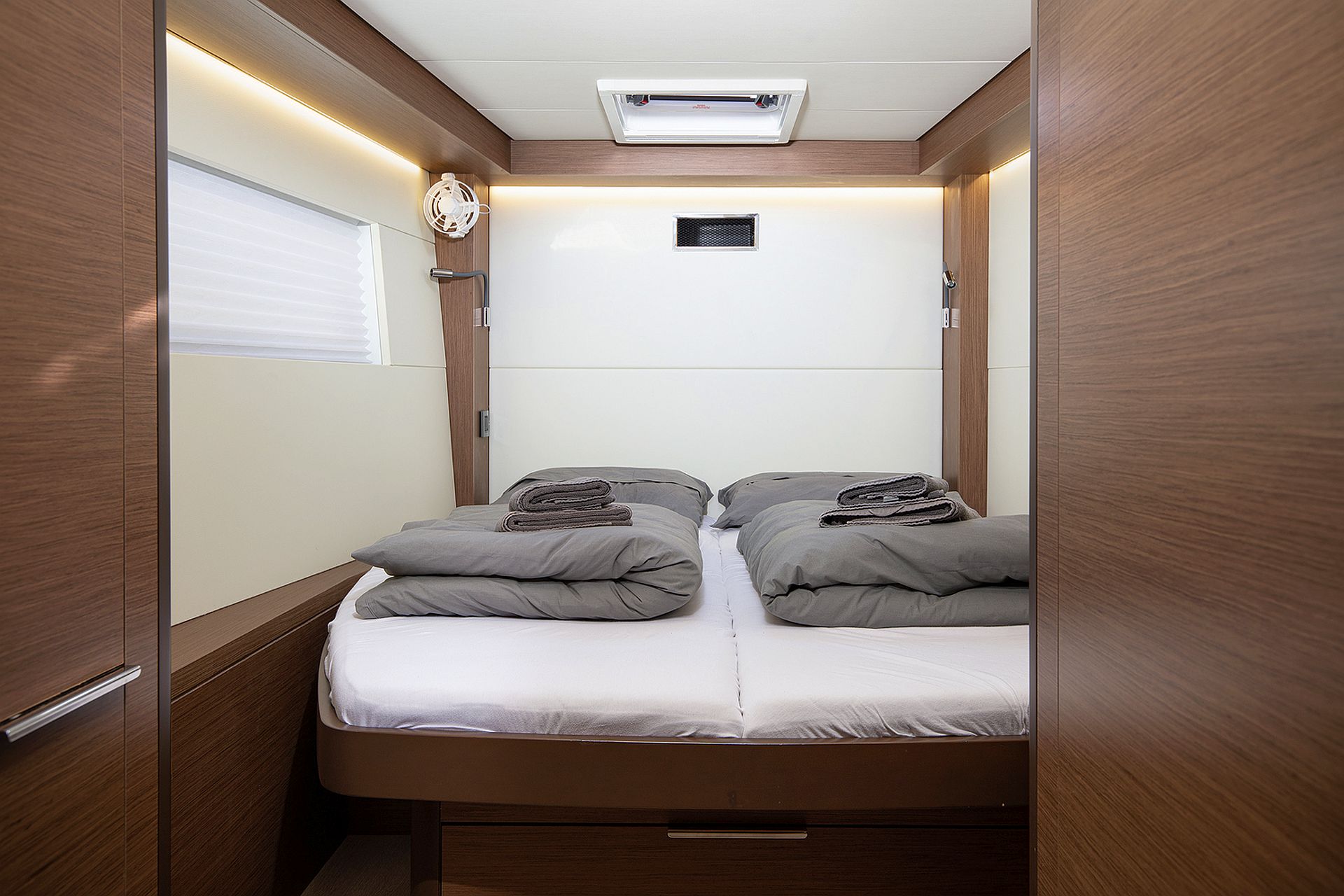 - Zwei Lateralkabinen mit Doppelkoje, Staufächern und Decksluke