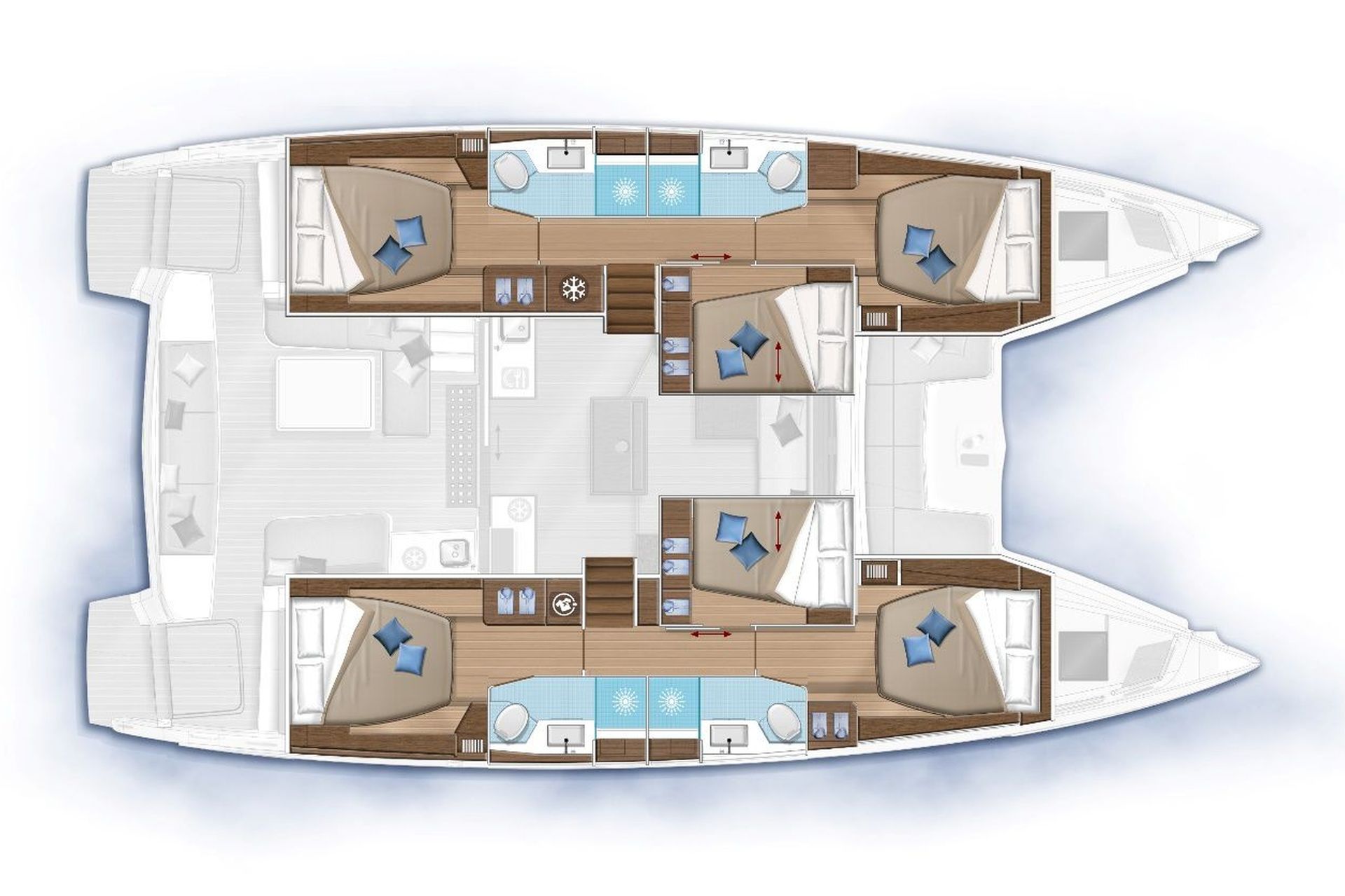 - Lagoon 50 in sechs Kabinen-Layout mit vier Nasszellen