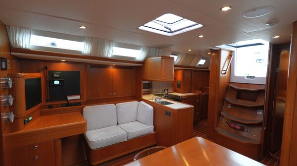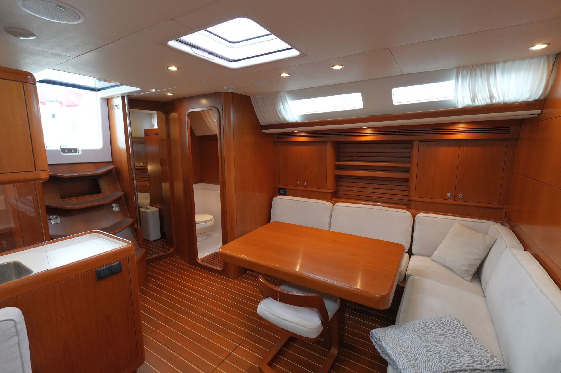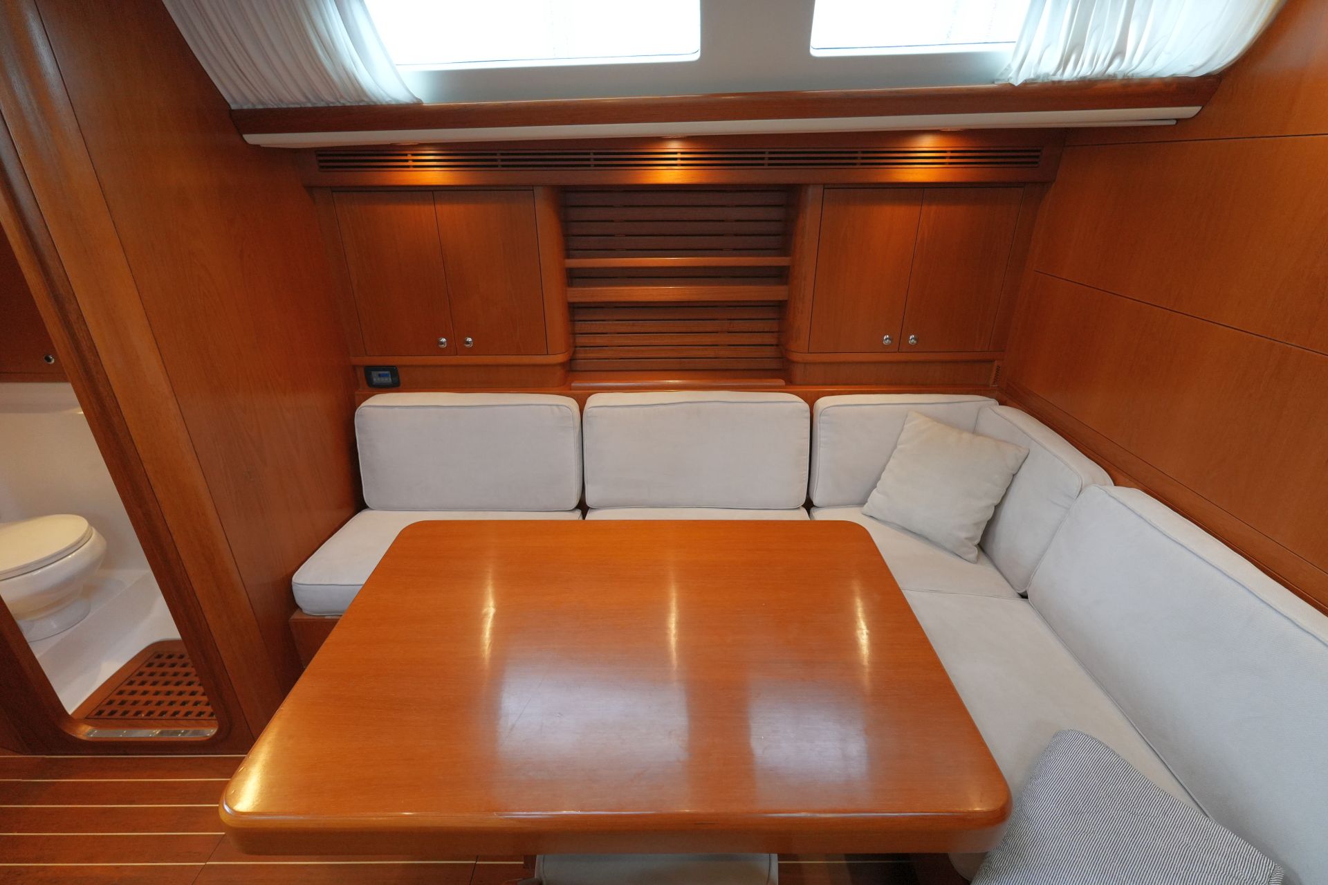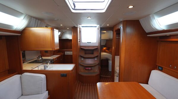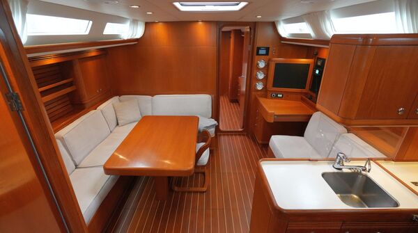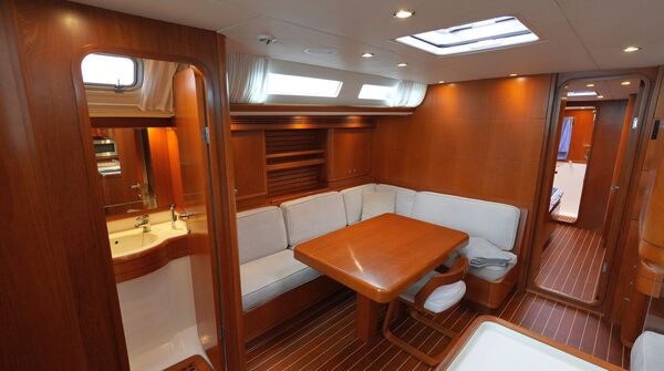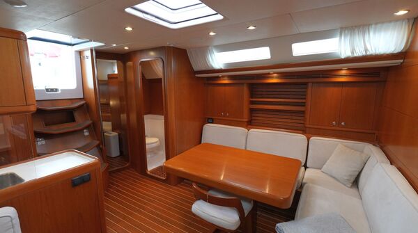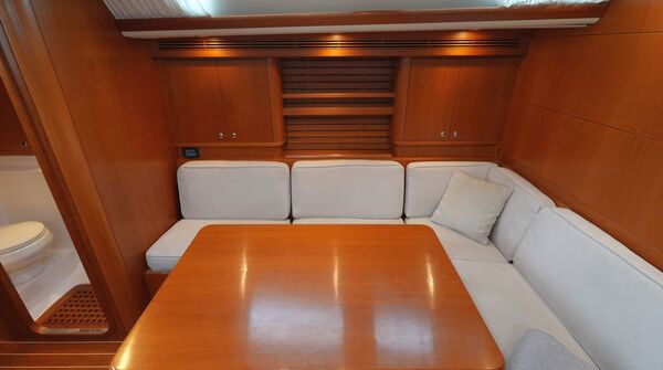 - Geräumiger Salon mit L-förmiger Dinette an Backbord um den verschiebbaren Salontisch