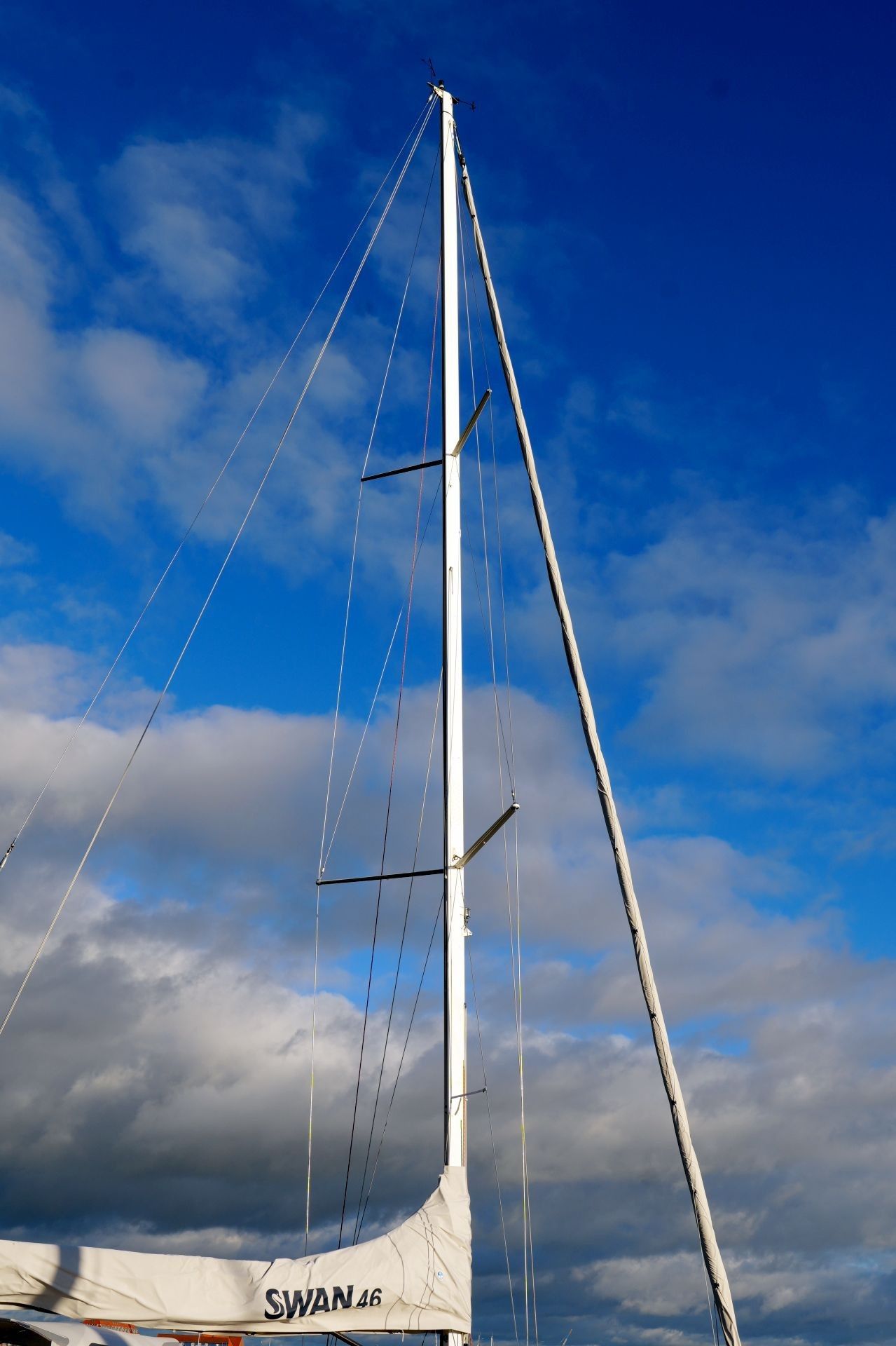 Hier steht die Nautor Swan 46 MK III Baunummer #403 aus dem Jahr 2005 zum Verkauf. Zwei Kabinen-Layout mit verlängerter Pantry, verbreiterter Achterkabine, und Längssofa im Salon an Steuerbord. Kartentisch in Fahrtrichtung eingebaut am Hauptschott. Version mit festem Kiel (Tiefgang: ca. 2,20 m) und einem Ruderblatt. Weißes Gelcoat mit Dekor in Dunkelblau (RAL 7344). Umfangreich ausgerüsteter Performance-Cruiser mit sechs elektrischen Winschen, ausfahrbarem Bugstrahlruder, Dieselgenerator, Inverter, Watermaker und Teakdeck überall (sogar unter der Sprayhood). Der aktuelle Eigner hat 2024 die komplette Navigationselektronik (unter anderem drei B&G Kartenplotter) neu installiert und zahlreiche weitere Updates und Ersatzinvestitionen vorgenommen. 2020 wurde der Unterwasseranstrich komplett abgschliffen und mit Epoxid-Primer und Antifouling neu aufgebaut. Großzügig dimensionierte Beschlagsausstattung von HARKEN und LEWMAR. Die Swan 46 MK III liegt an der Westküste der dänischen Insel Sjælland und kann dort nach Absprache besichtigt werden.