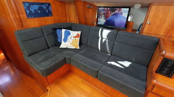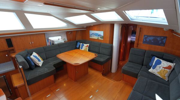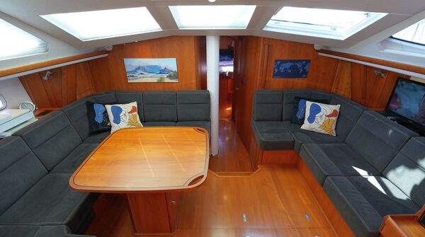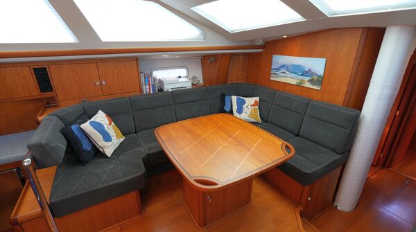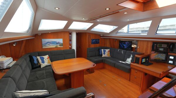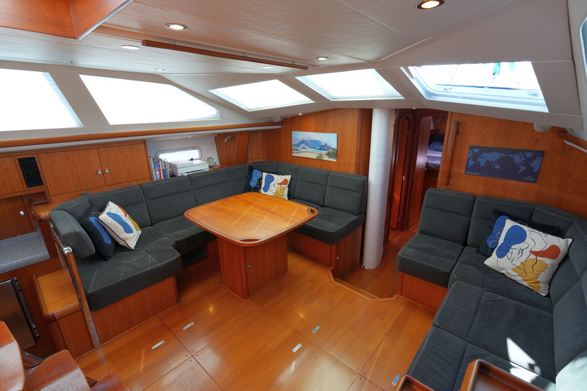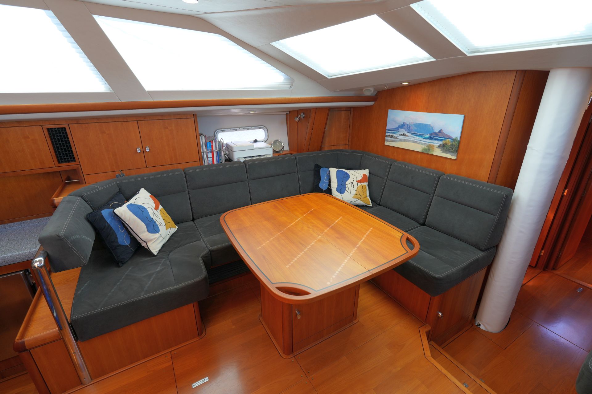- U-förmige Sitzgruppe um den Salontisch an Backbord