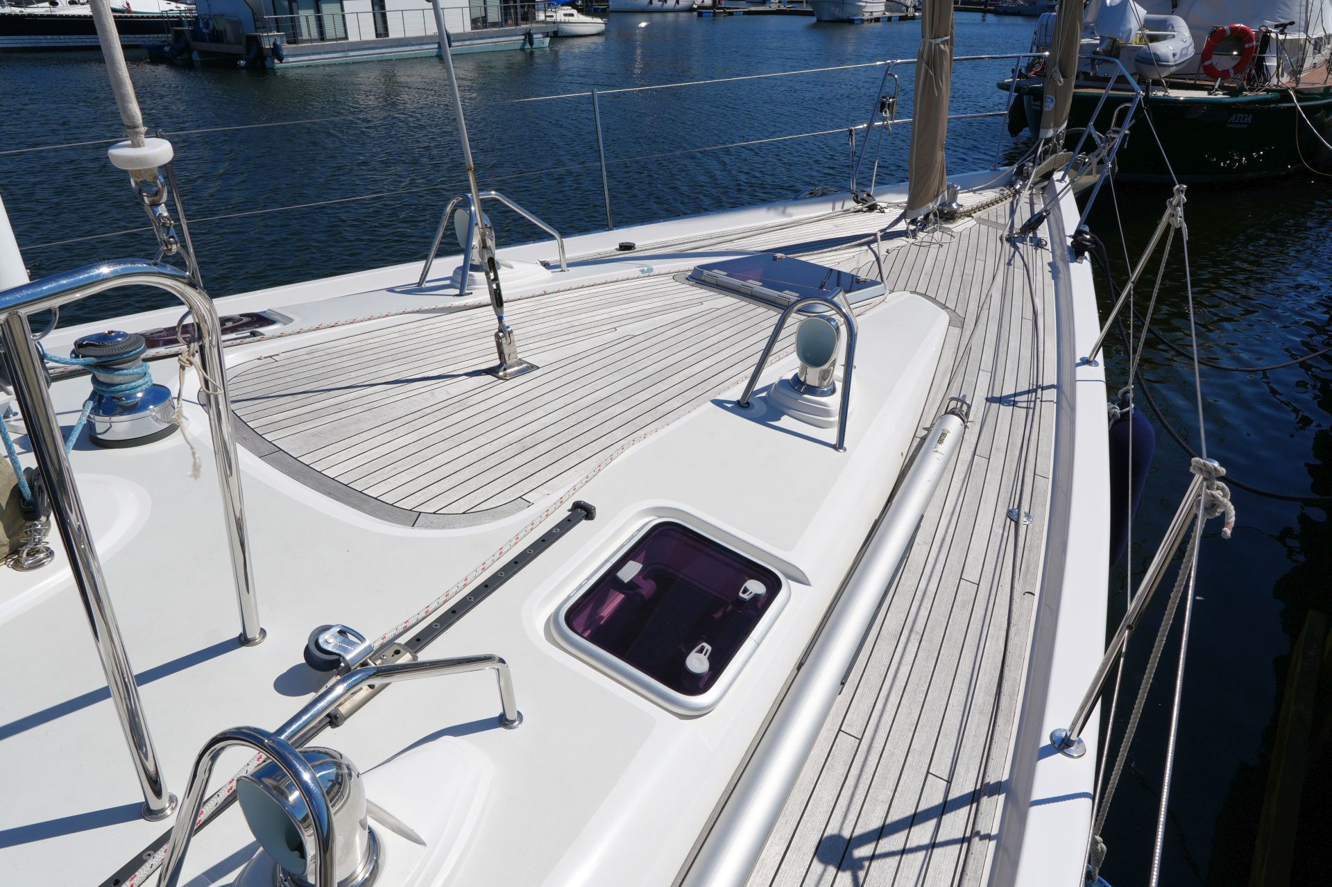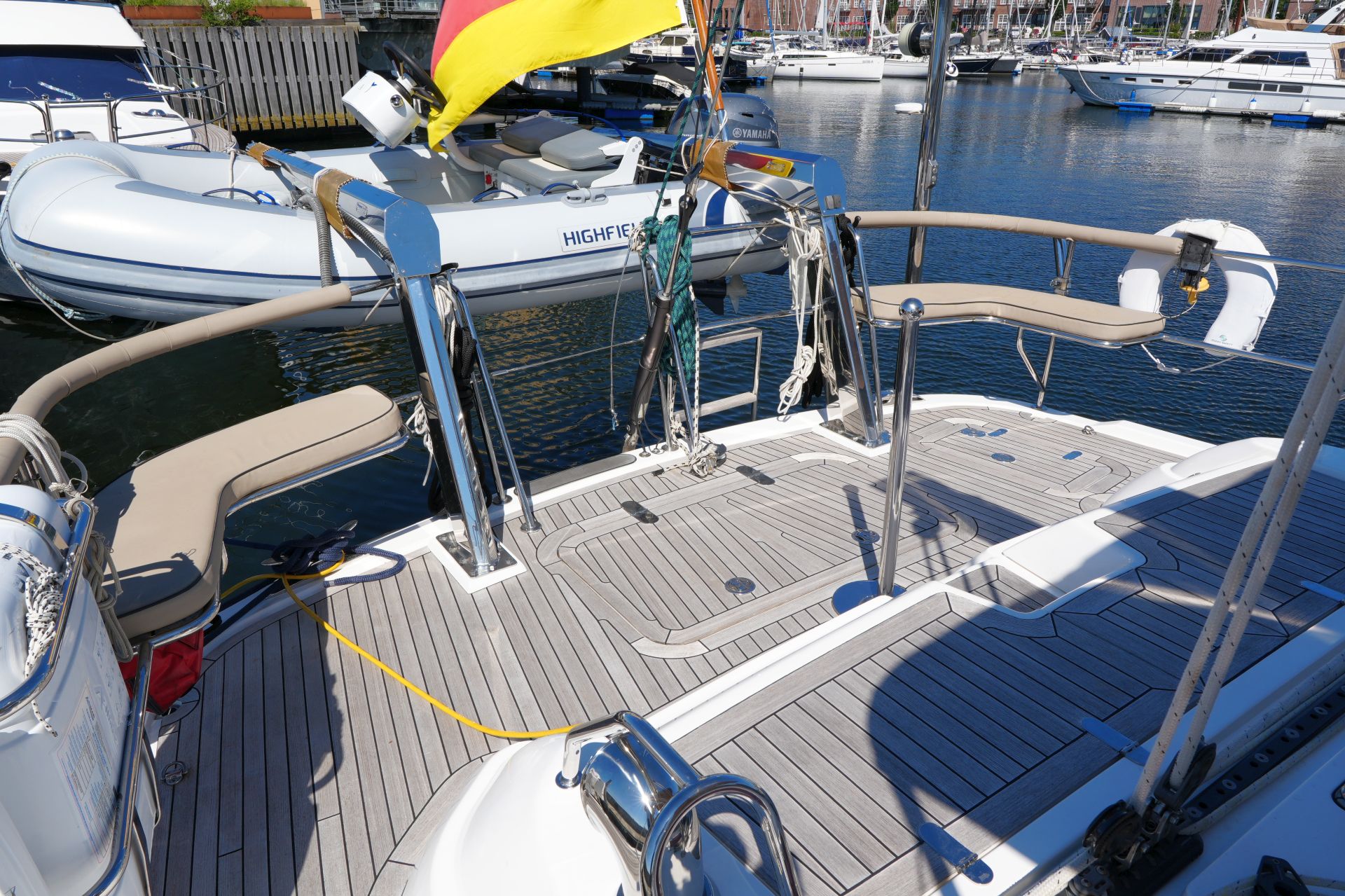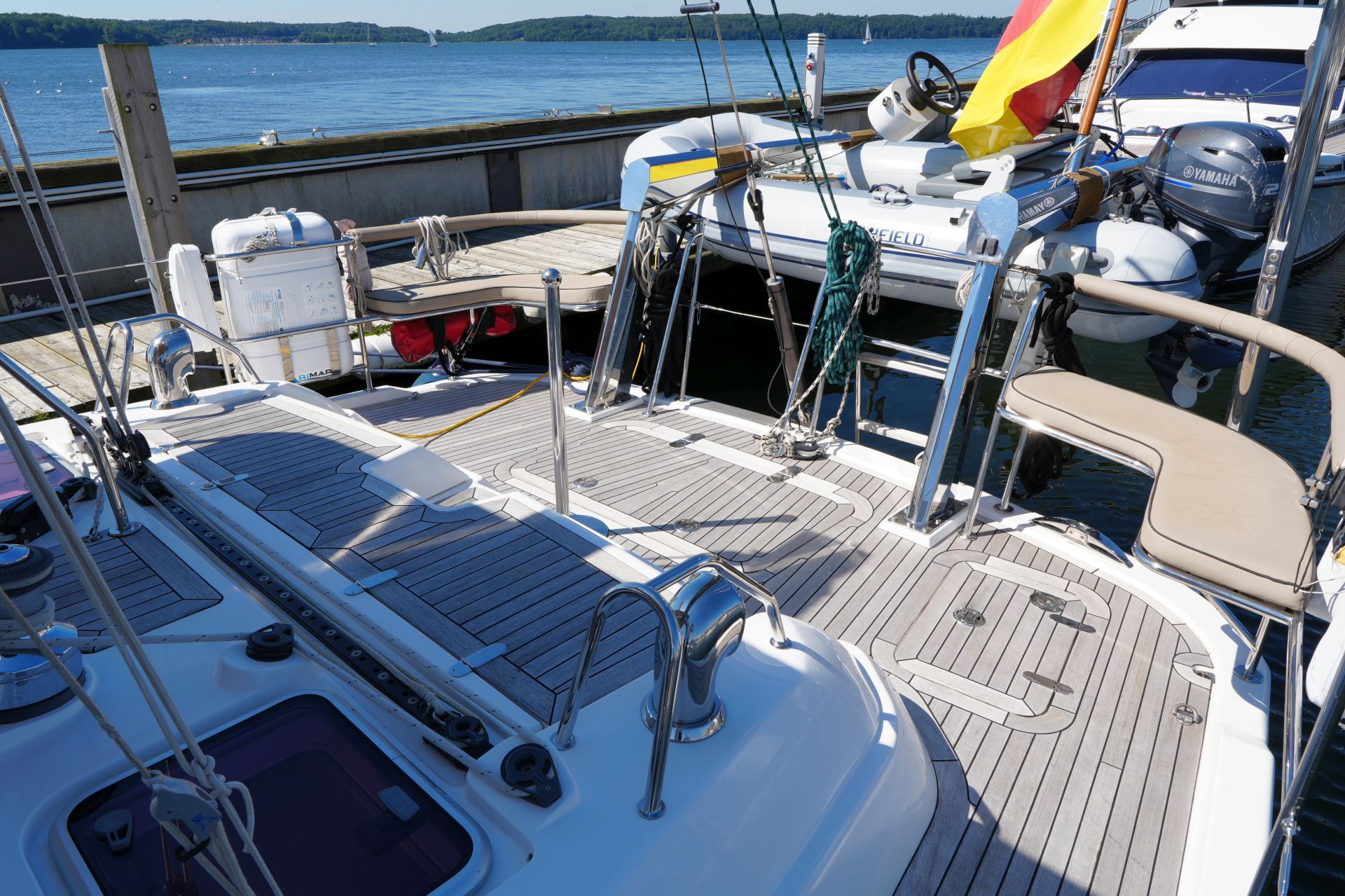 - Teakdeck auf Seitendecks, Aufbaudach, Badeplattform und im Cockpit