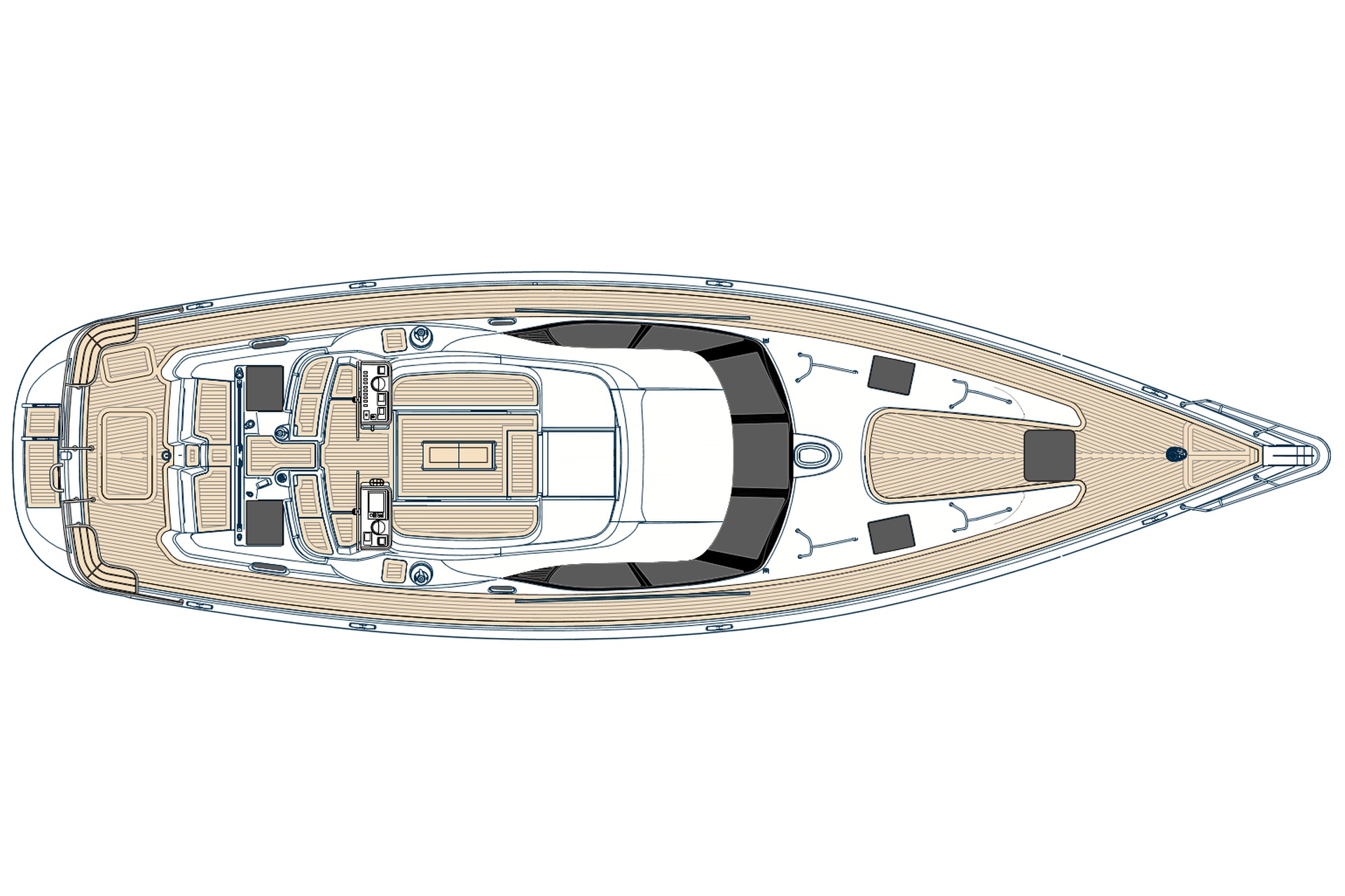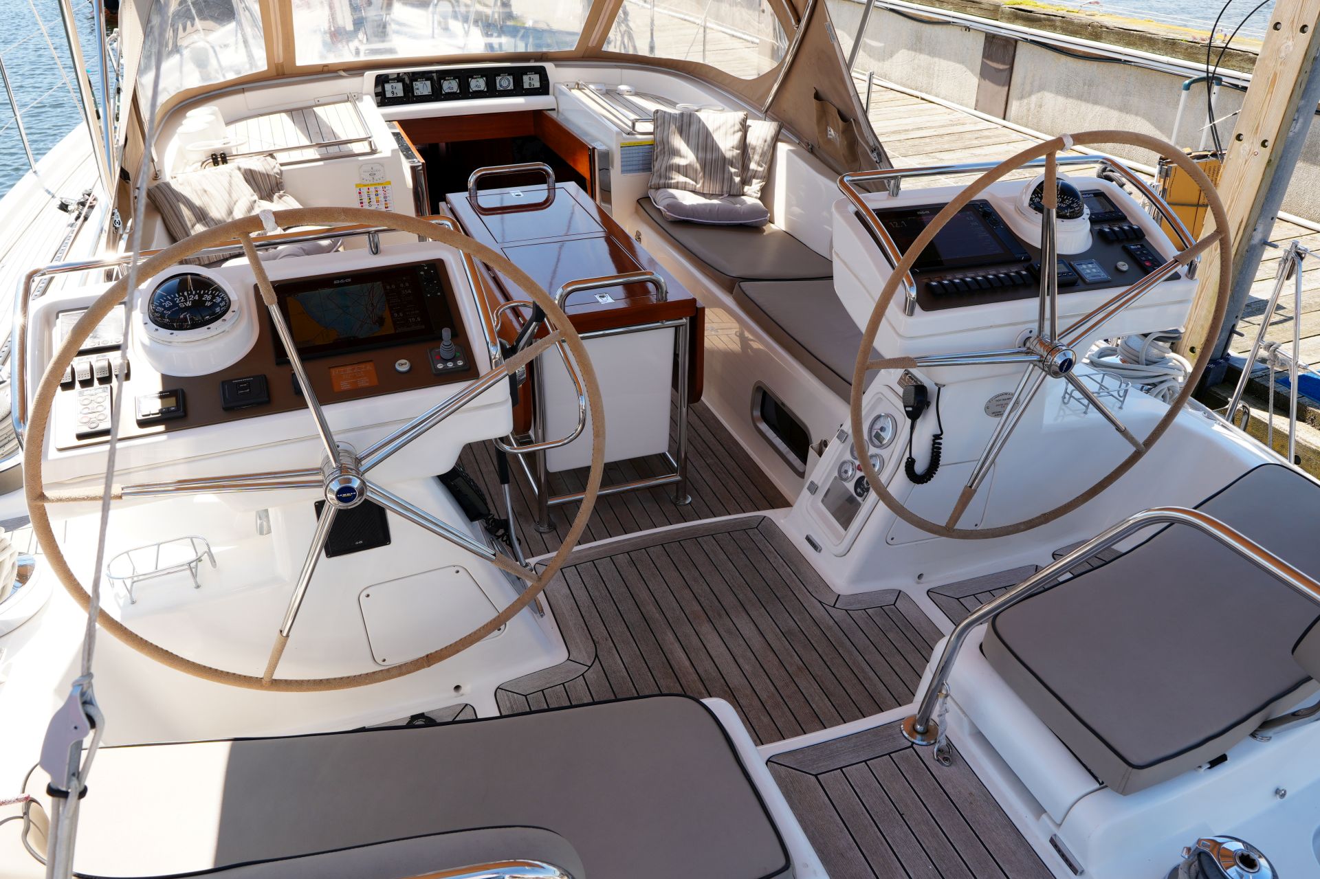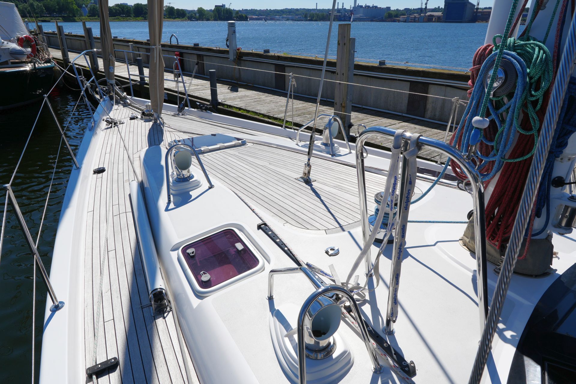 - Teakdeck auf Seitendecks, Aufbaudach, Badeplattform und im Cockpit