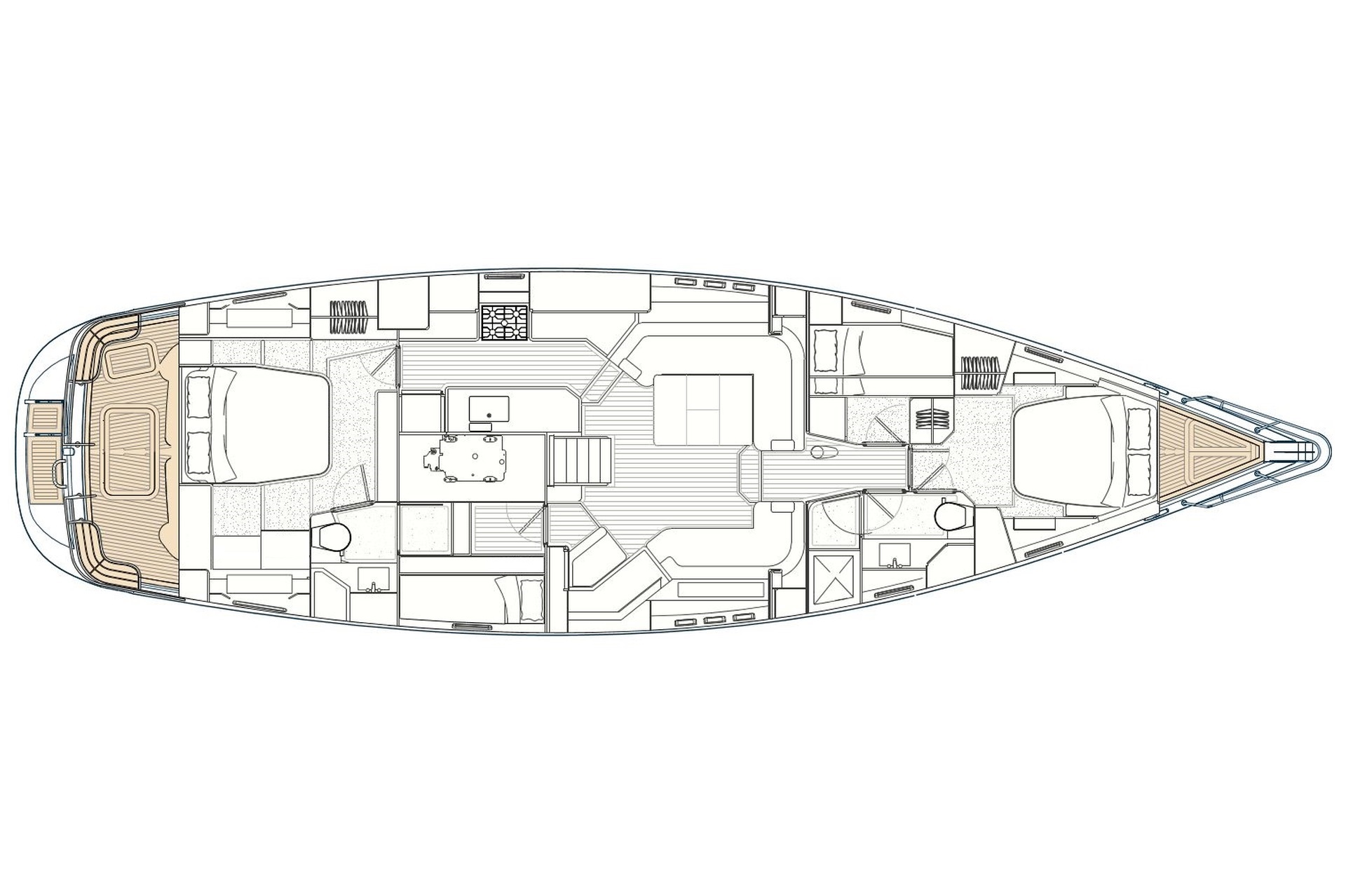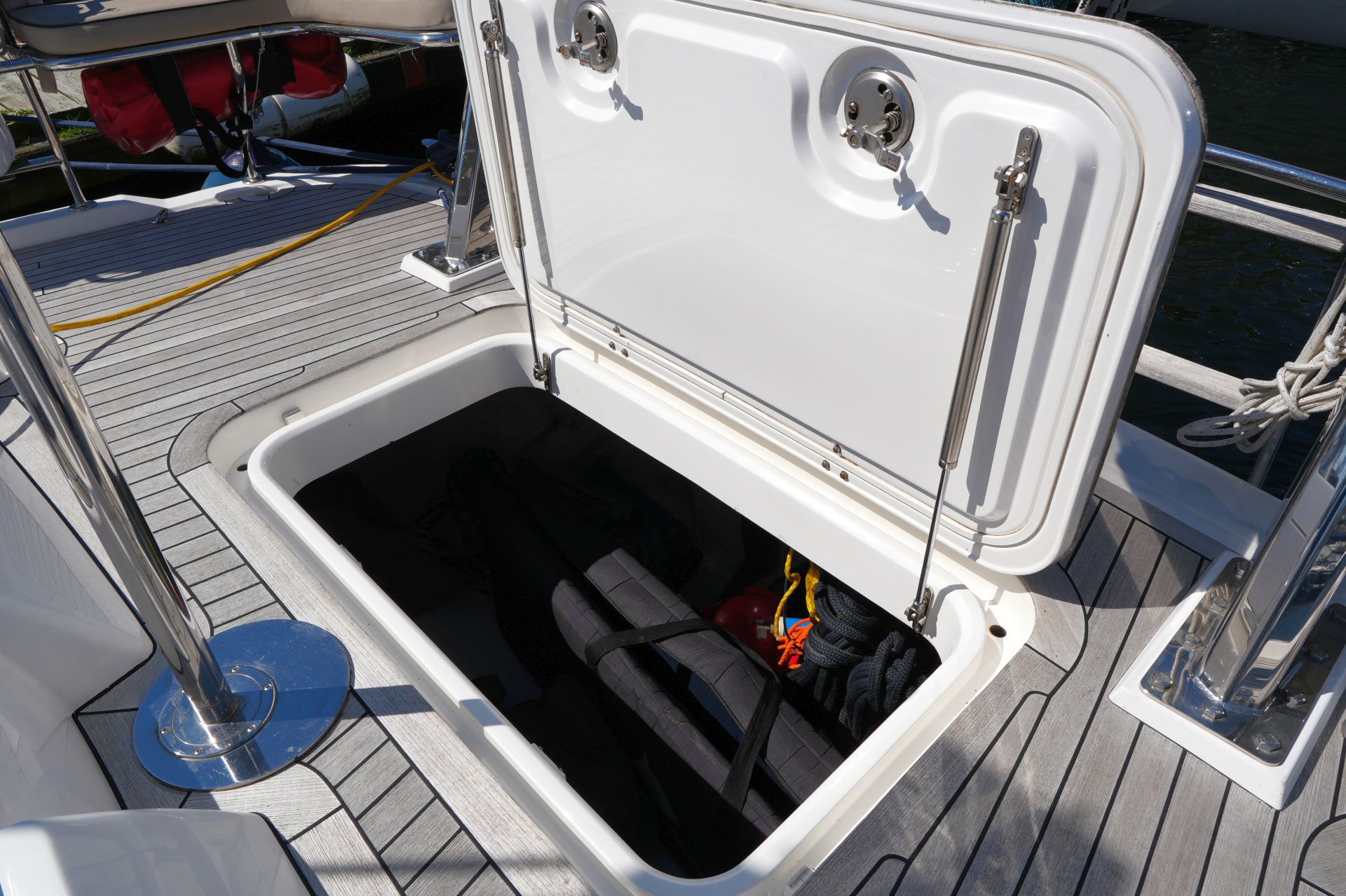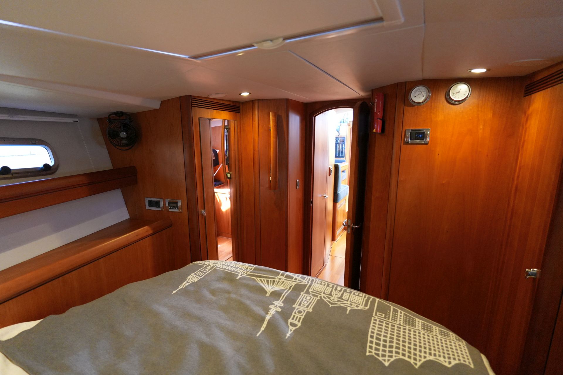 - Reichlich Stauraum in Schränken, Schubladen und Staufächern - Luxuriöse Eignerkabine über die gesamte Schiffsbreite im Heck mit breiter, freistehender Doppelkoje, zwei Decksluken, zwei Aufbaufenstern und zwei Rumpffenstern, reichlich Stauraum in Schränken, Fächern, Schubladen und Ablagen
