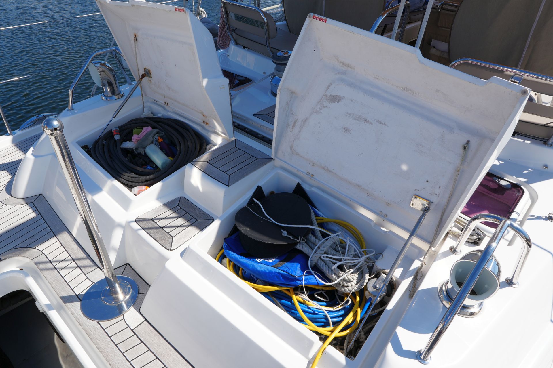 - Vier große, klappbare Festmacherklampen, vier klappbare Springklampen mittschiffs und zwei zusätzliche klappbare Klampen am Heck