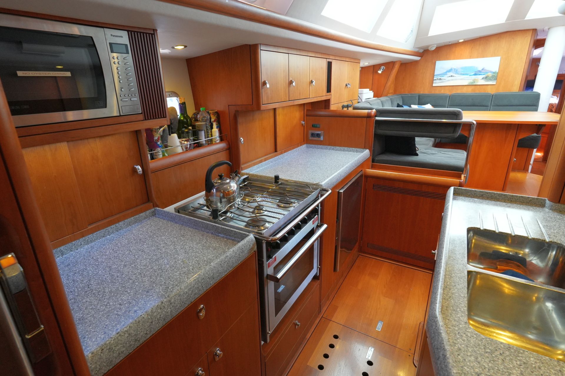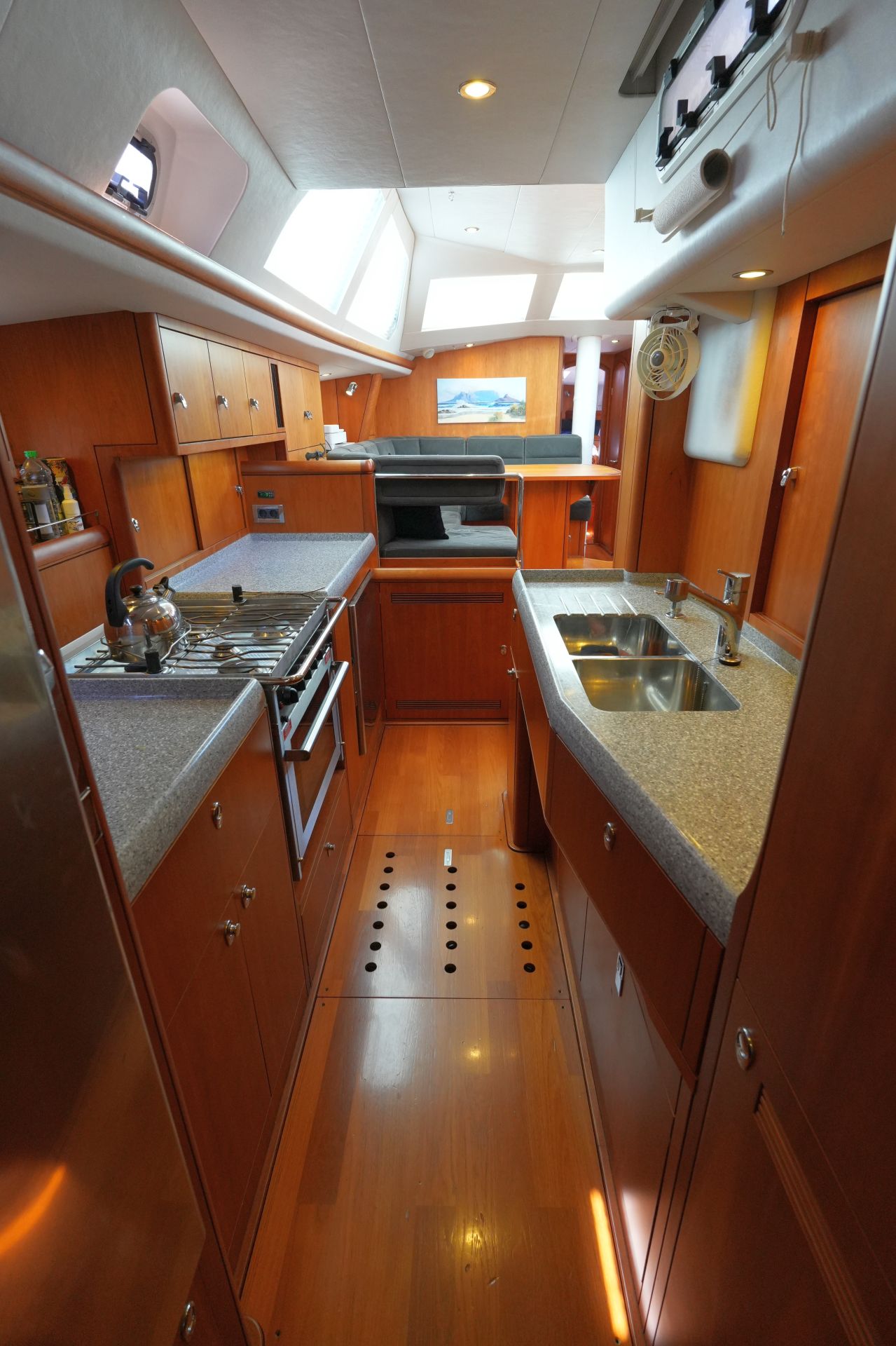 - Längspantry auf beiden Seiten im Durchgang zur Achterkabine
